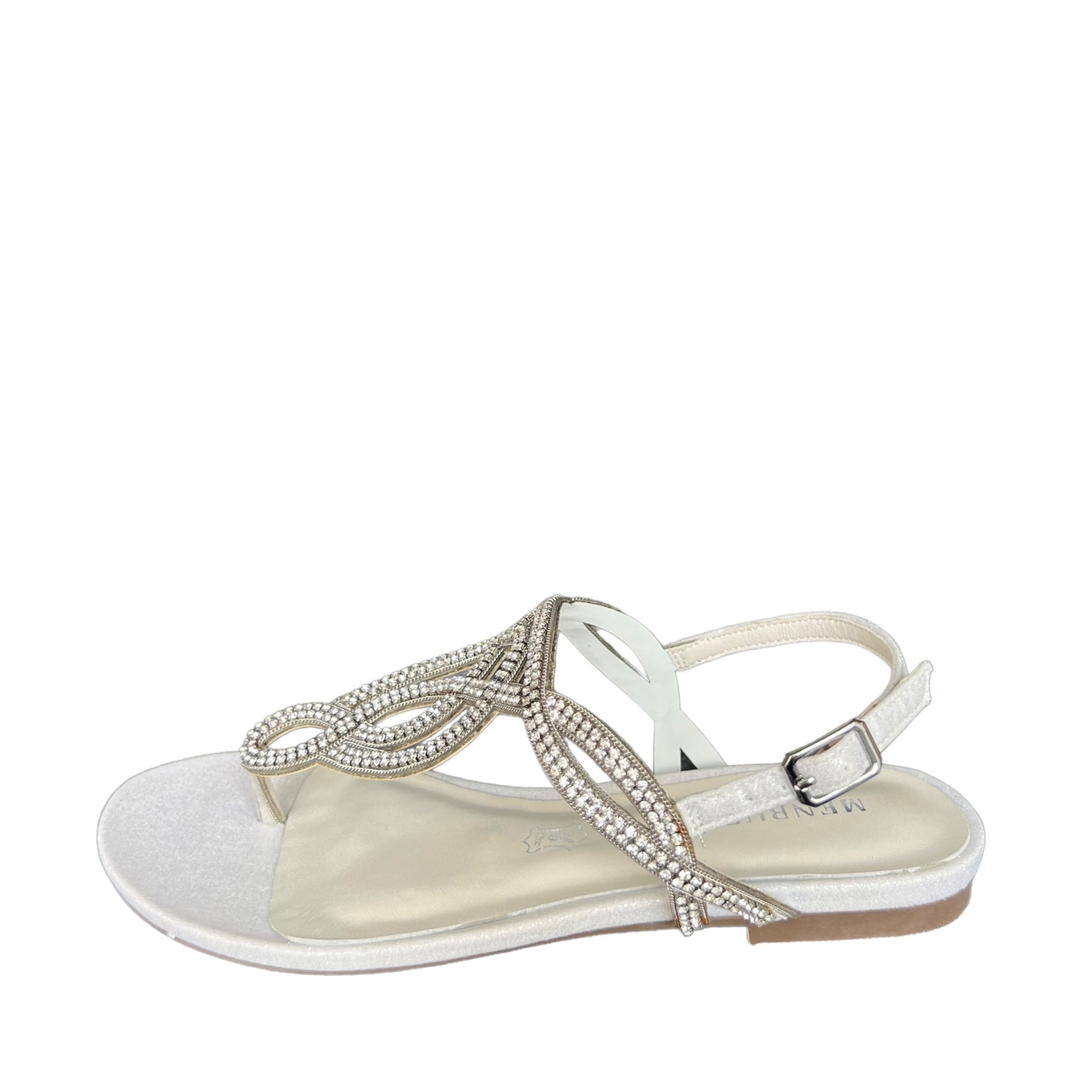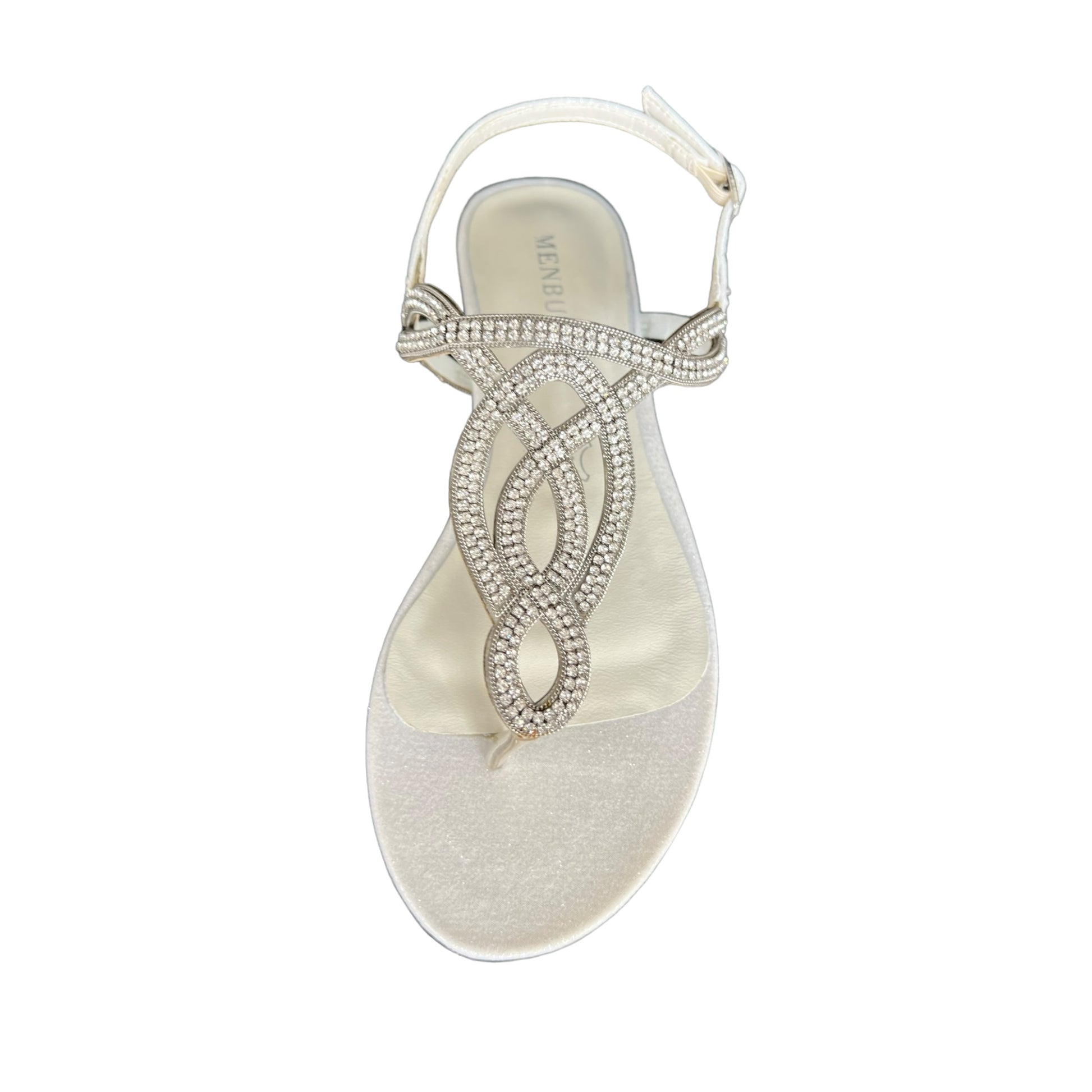 Sandalo infradito in tessuto bianco con cinturino brillantinato