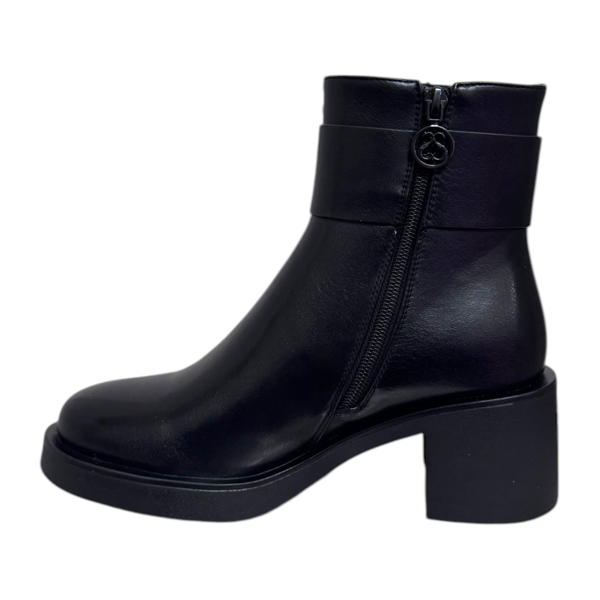stivaletto in pelle nero con tacco doppio