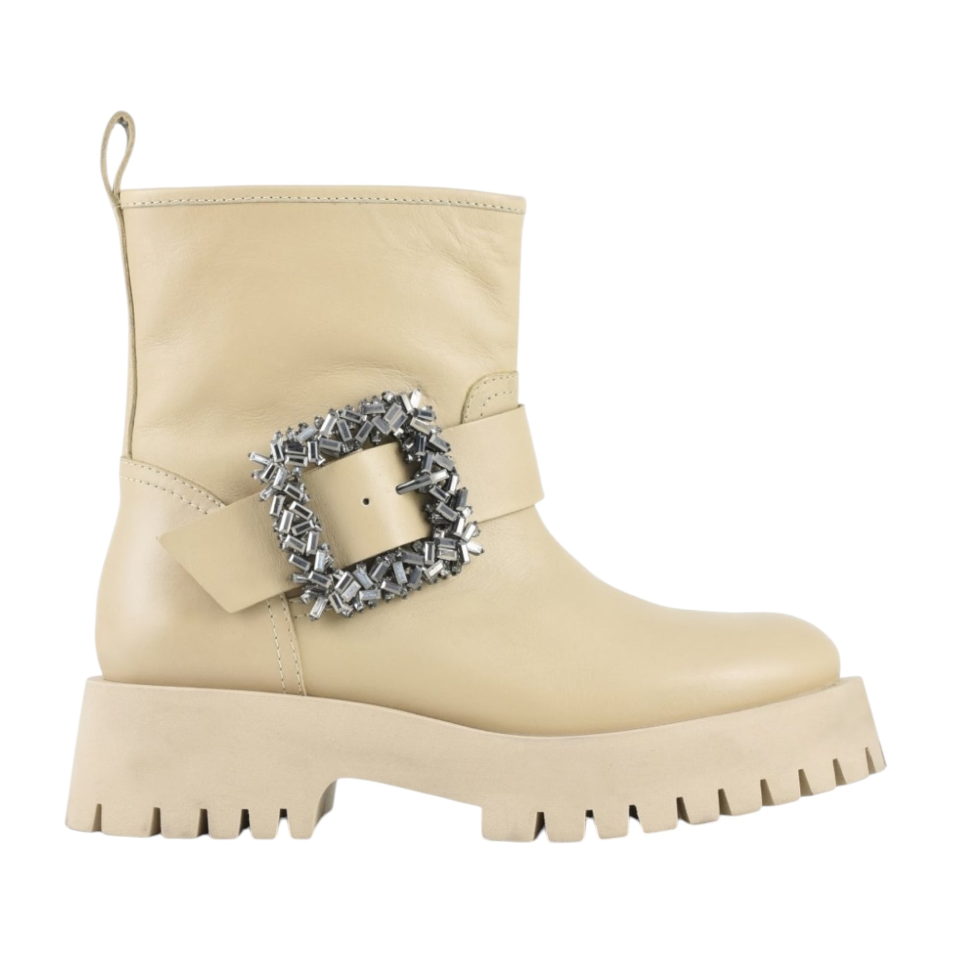 pelle, applicazioni a contrasto, tinta unita, interno in pelle e punta tonda.