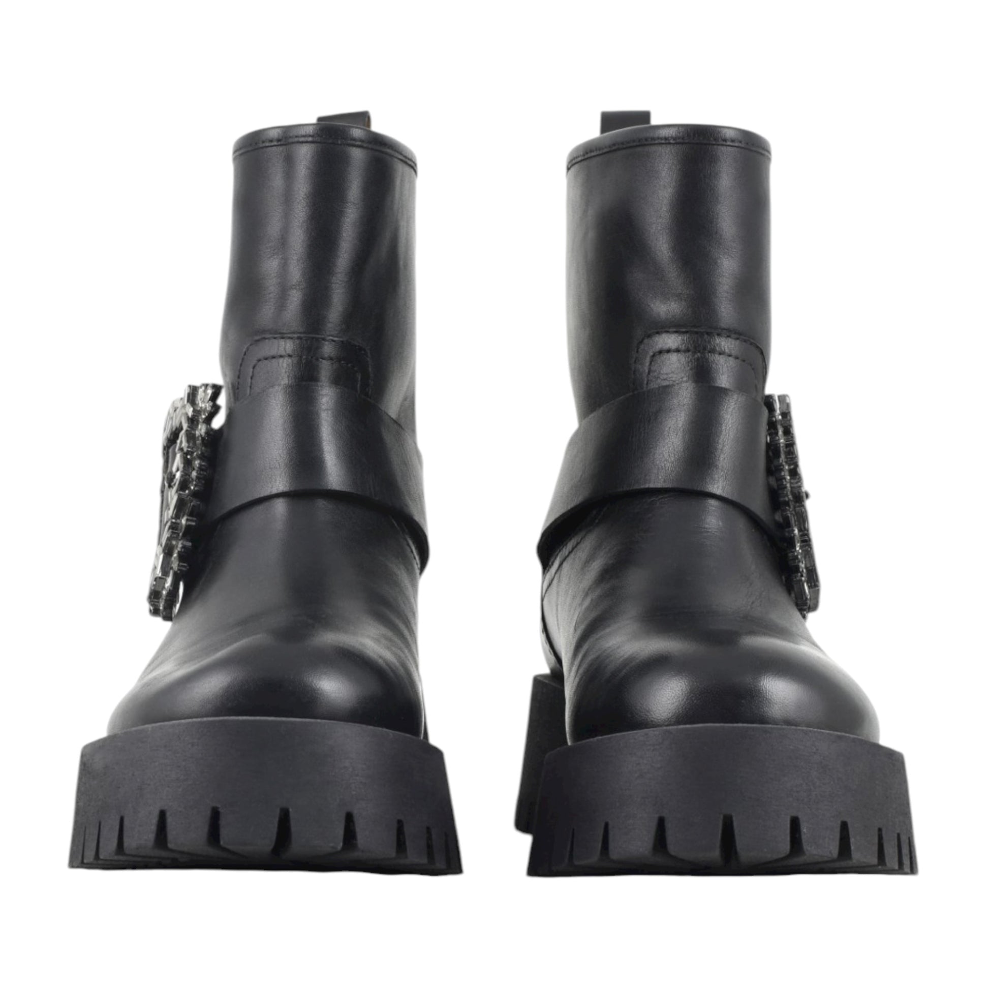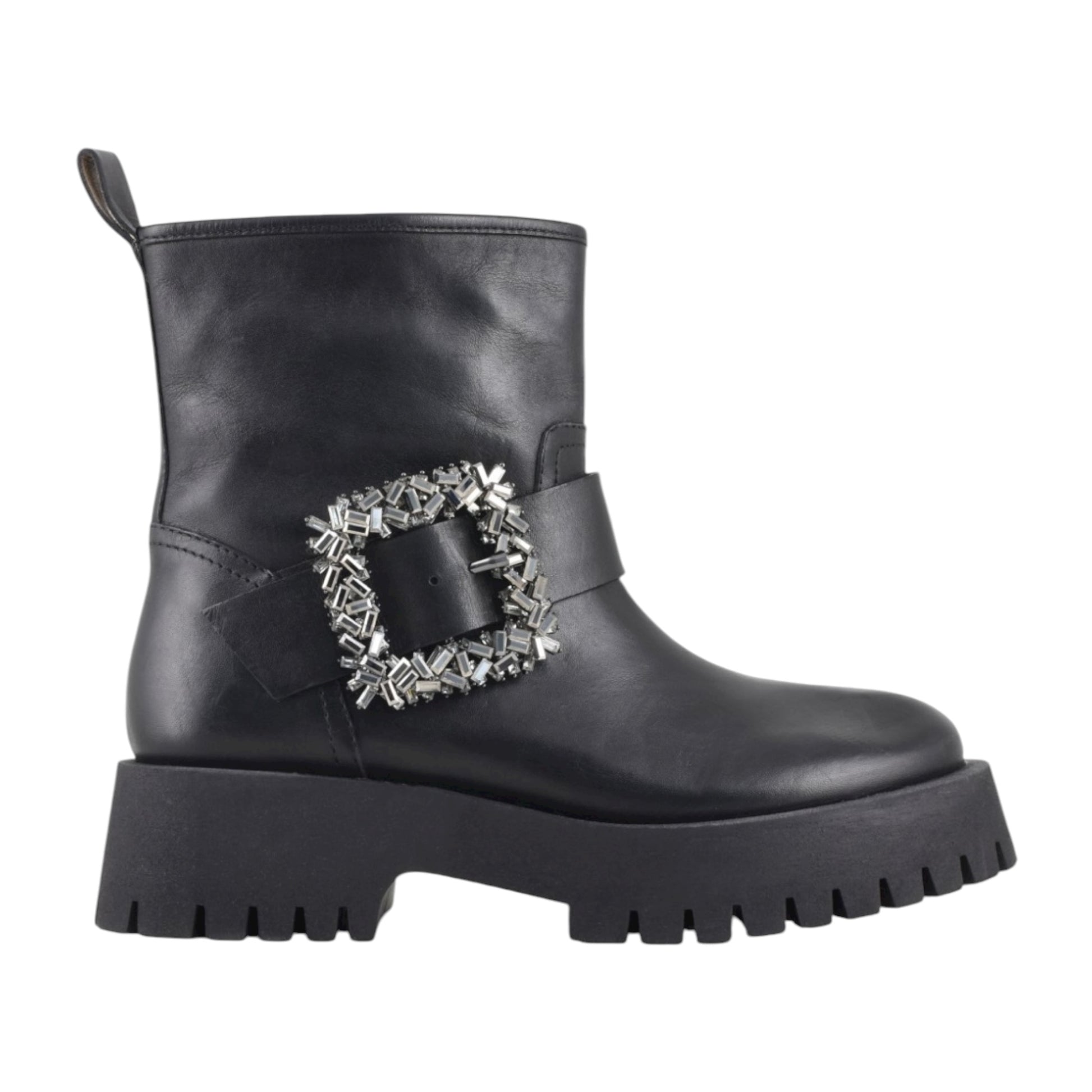 pelle, applicazioni a contrasto, tinta unita, interno in pelle e punta tonda.