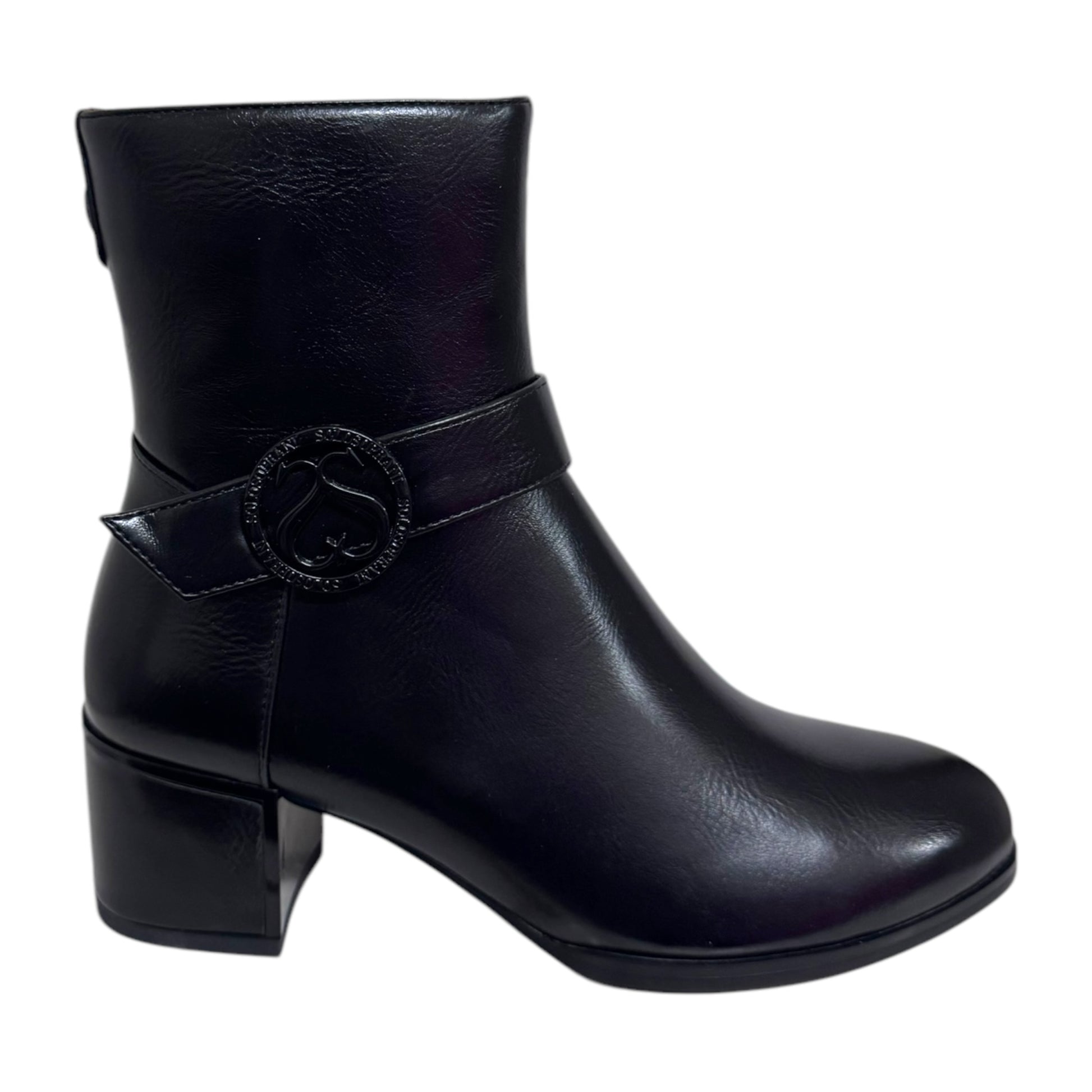 stivaletto in pelle nero con tacco doppio e interno leopardato