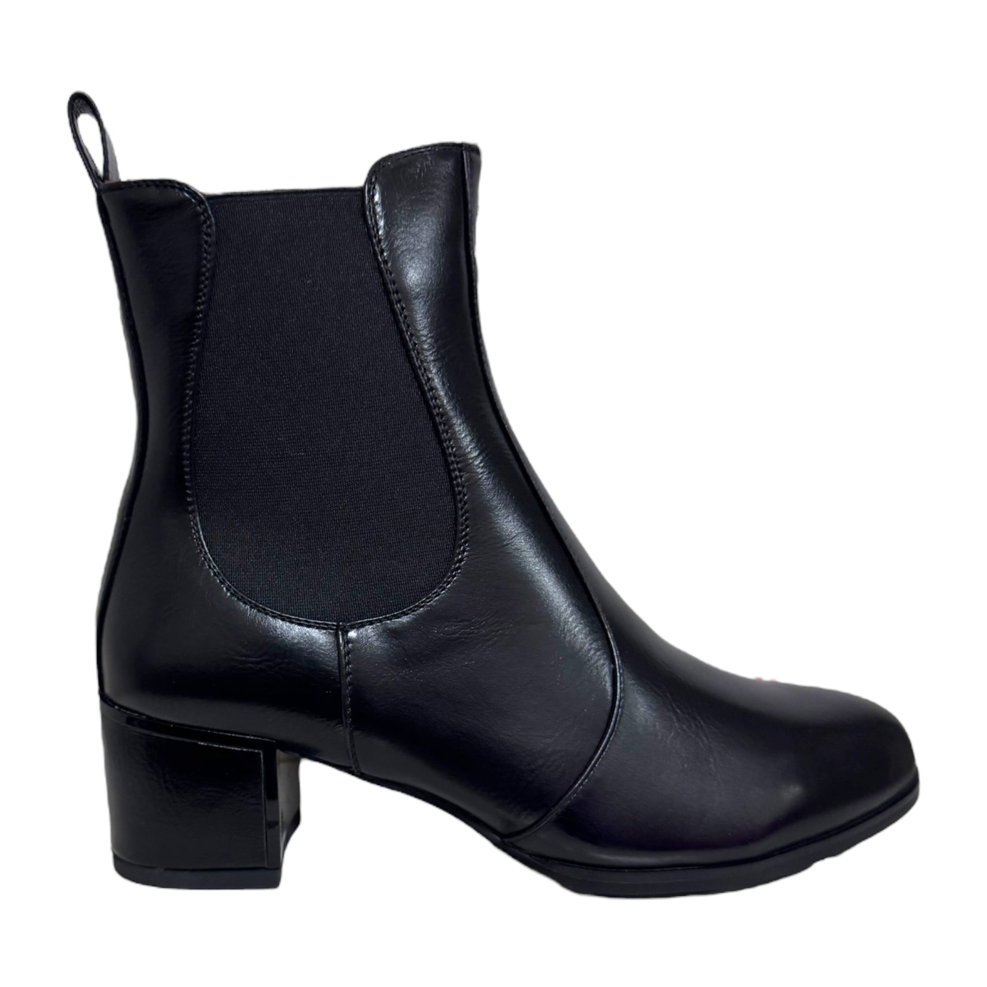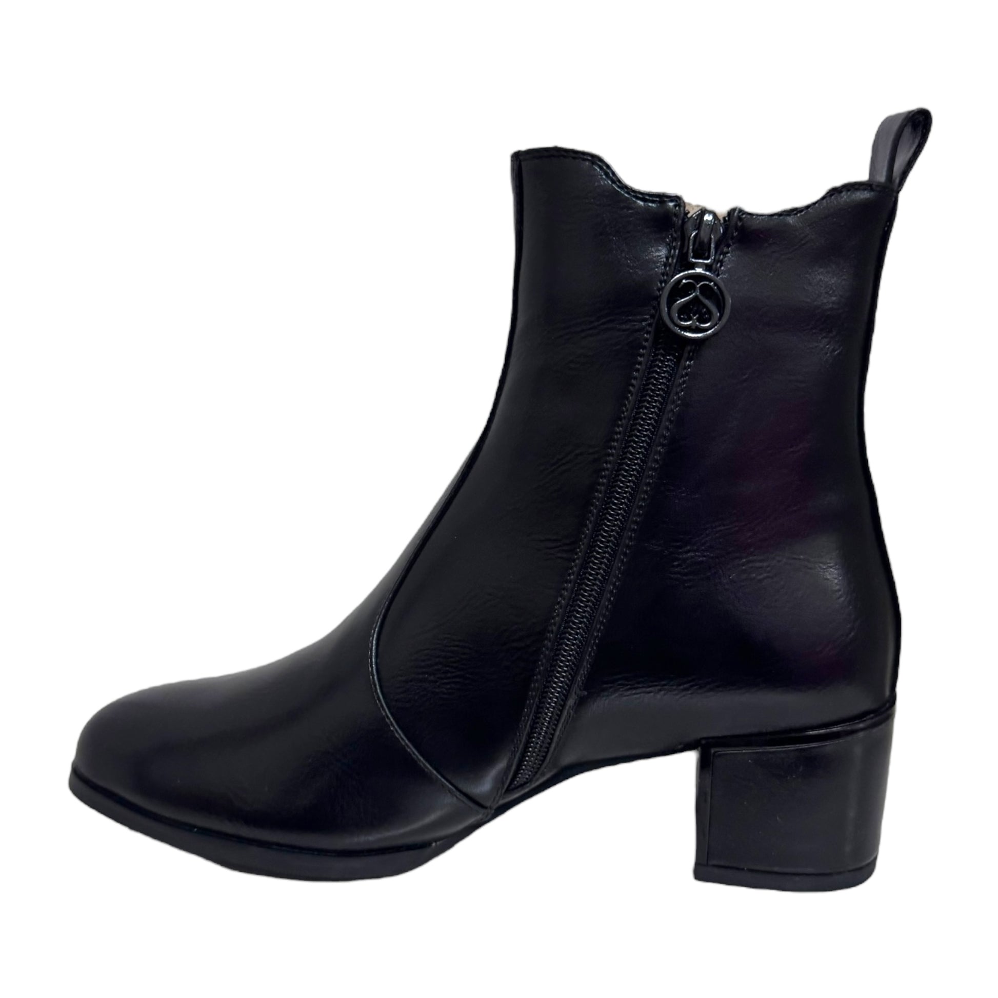 stivaletto in pelle nero con tacco doppio e interno leopardato