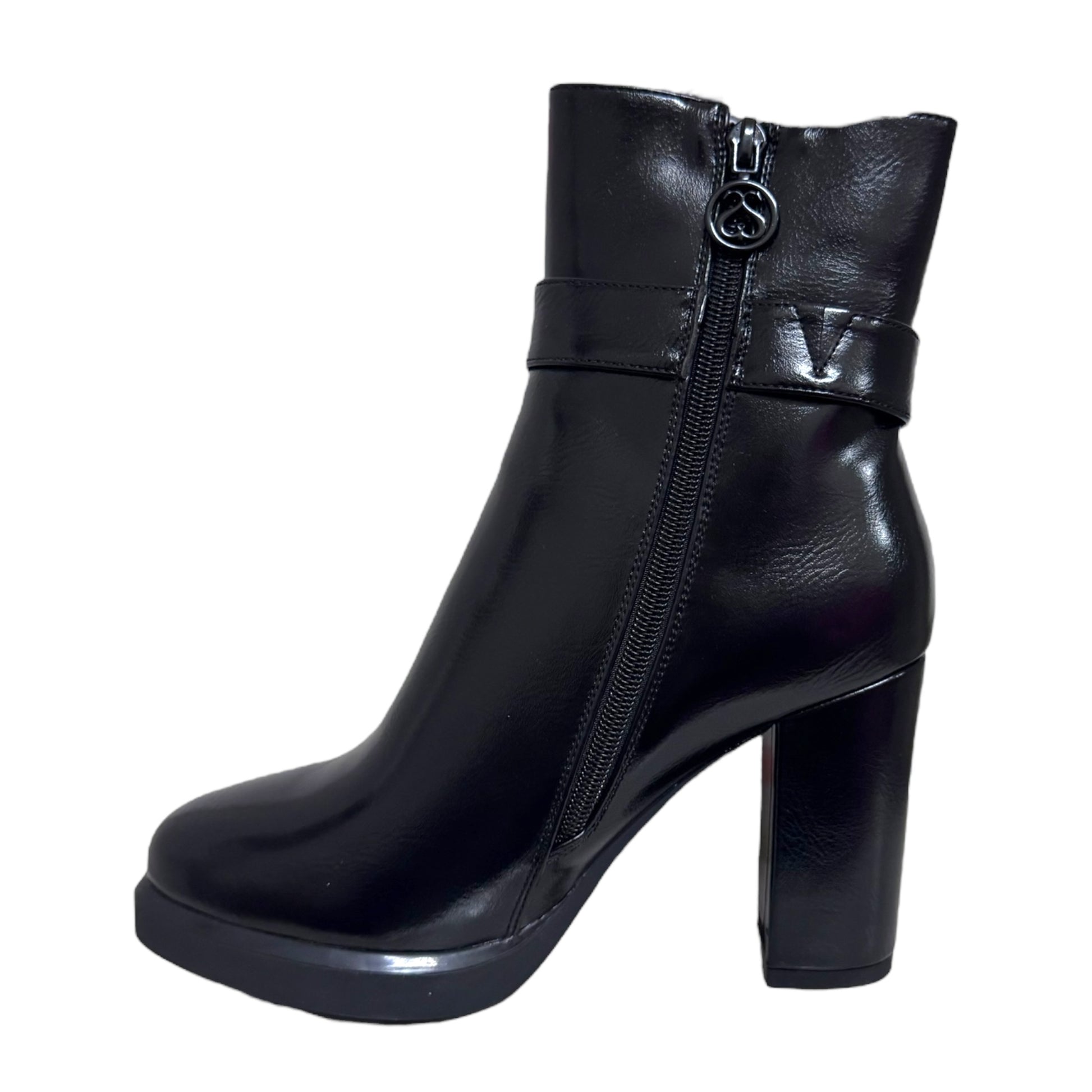 stivaletto in pelle nero lucido con tacco doppio 9 CM E PLATEAU