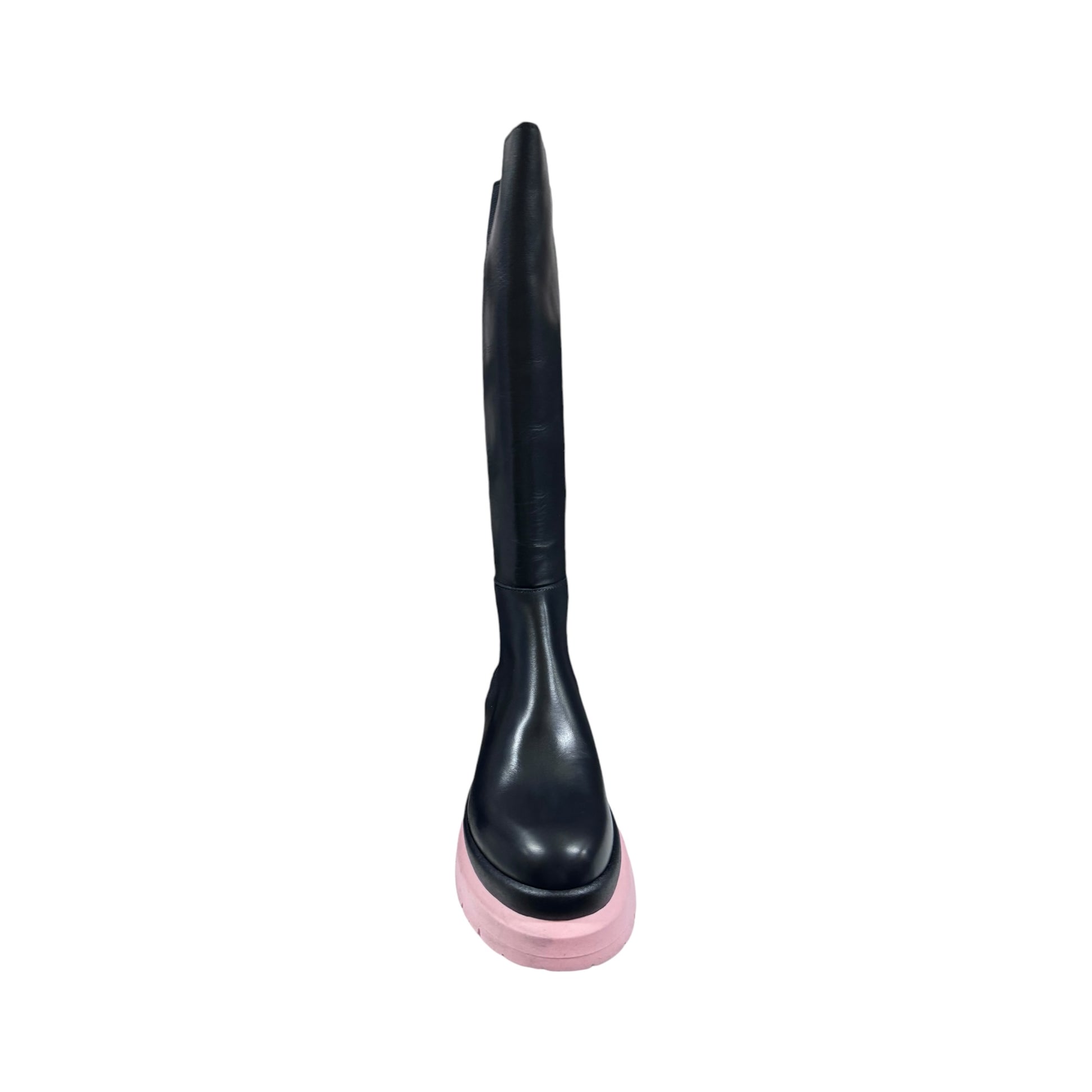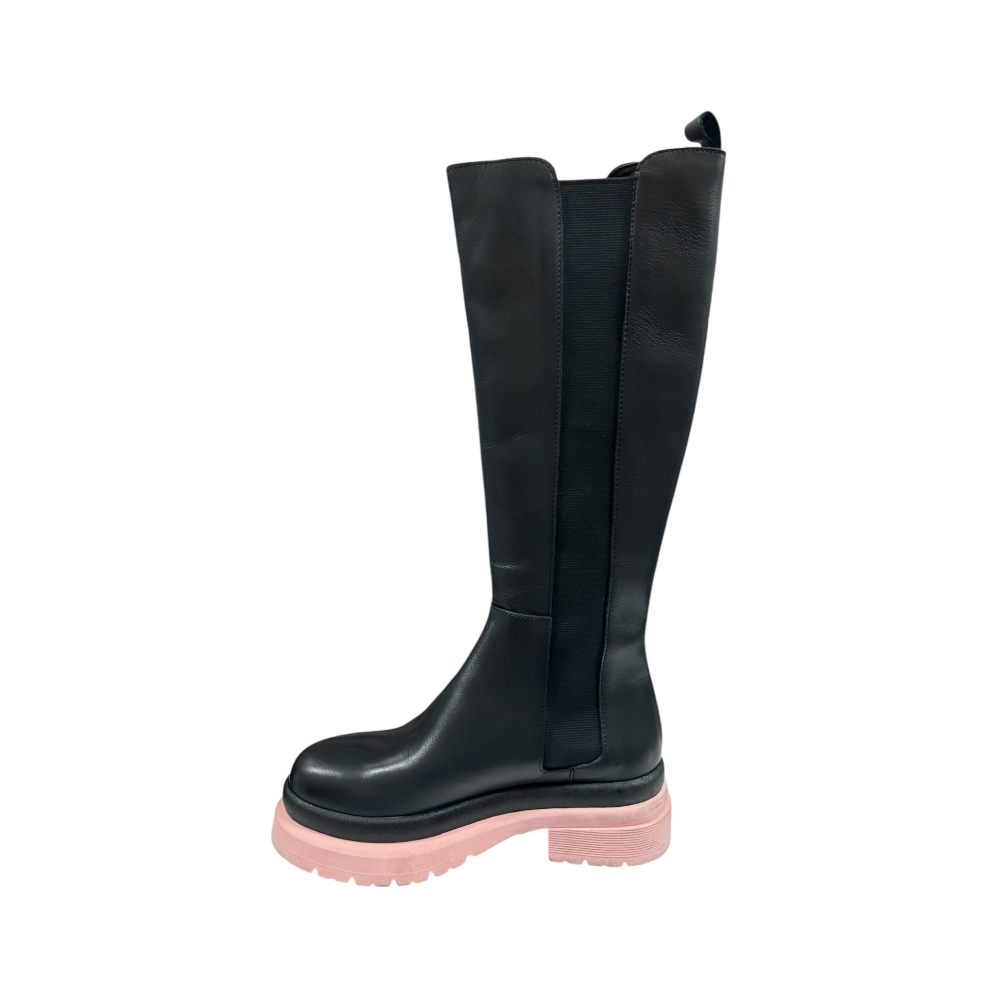 Stivale alto realizzato in vera pelle , con suola tractor rosa