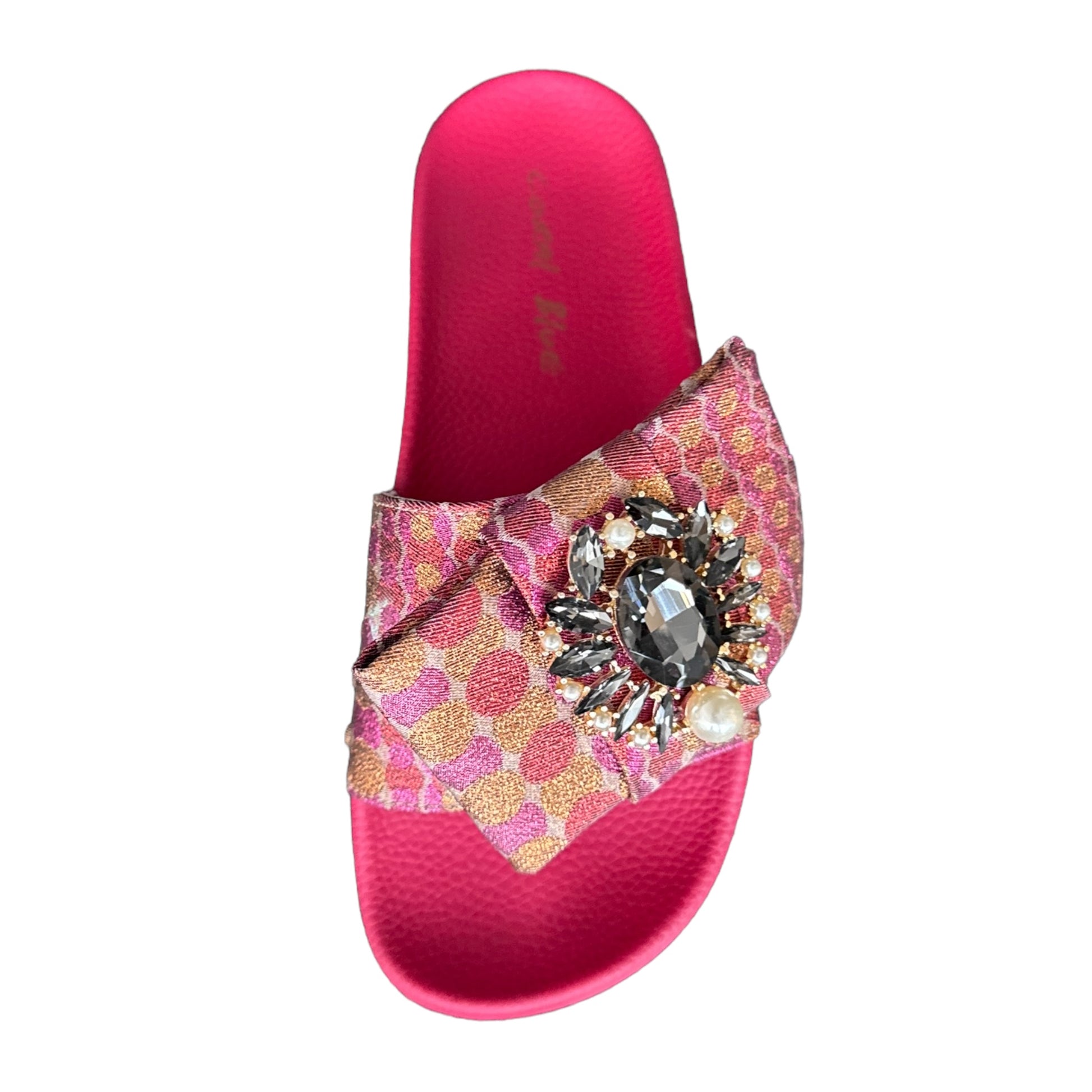 Ciabatta In gomma fucsia con cinturino in tessuto laminato rosa