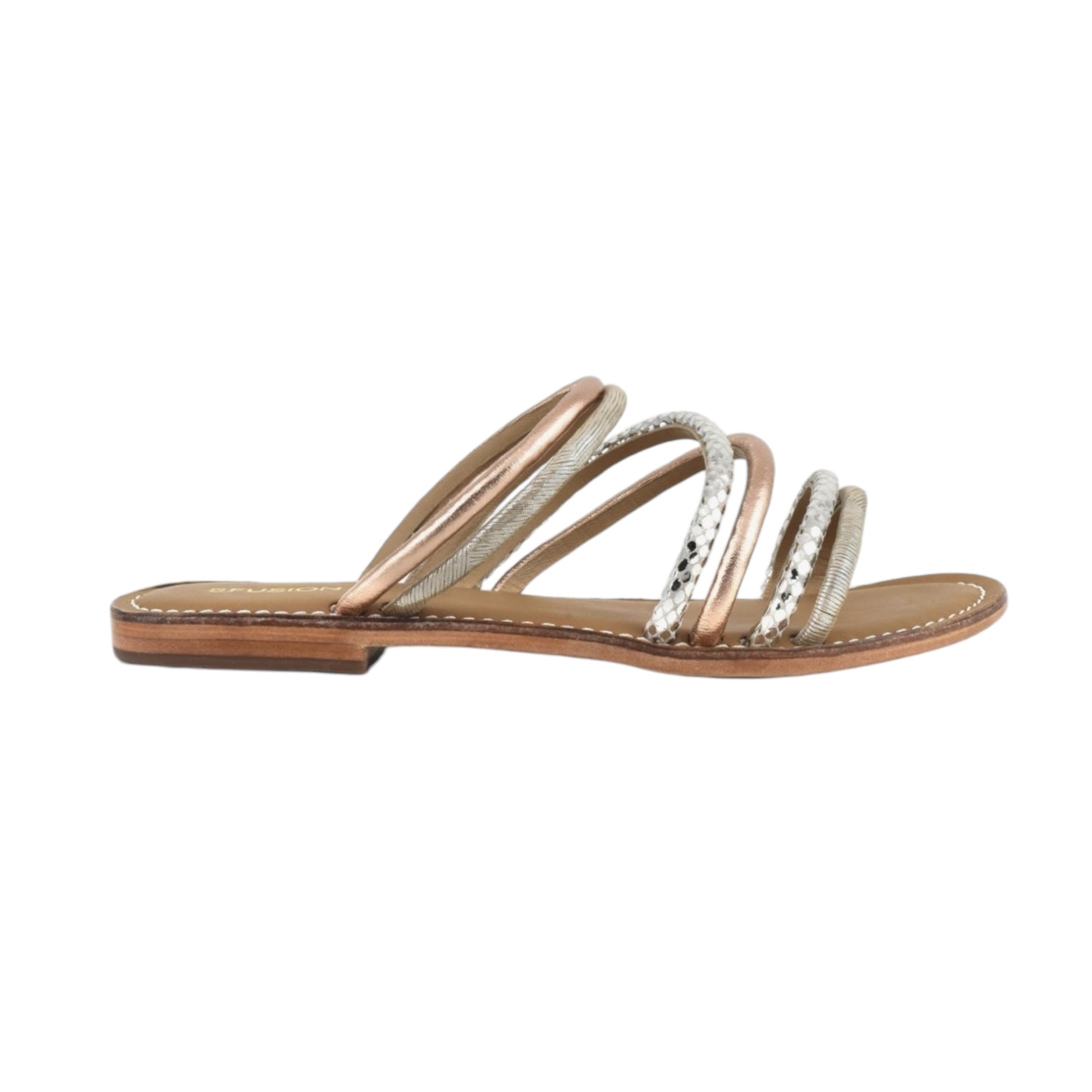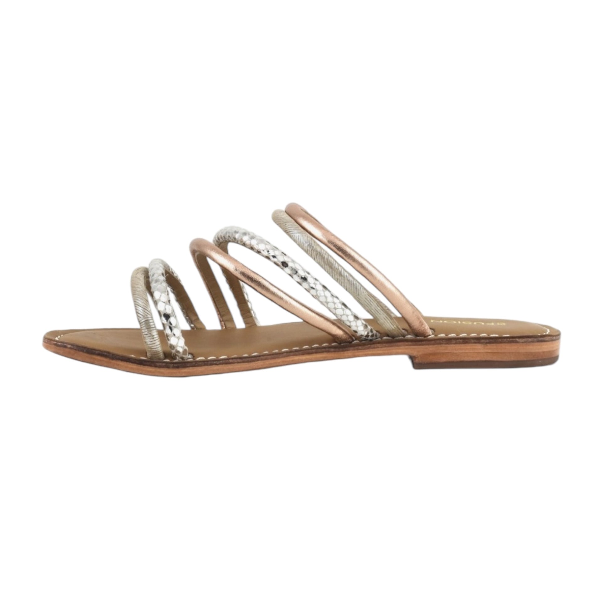 slipper fasce di pelle intrecciata e suola ultra flat di cuoio.