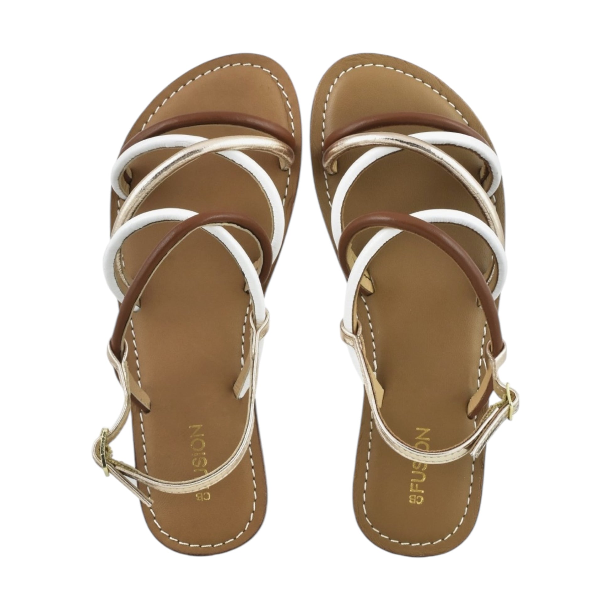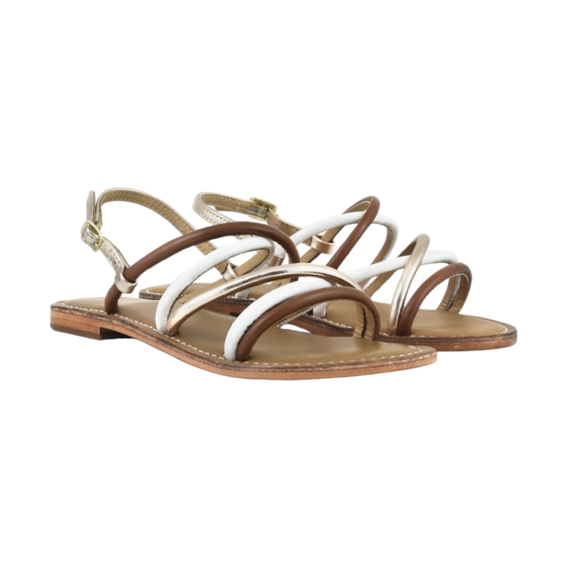 Hanno sottili fasce di pelle laminata che si intrecciano in assoluta armonia. Il soletto di pelle, il cinturino regolabile che si allaccia al tallone e la suola di cuoio li rendono più confortevoli che mai.