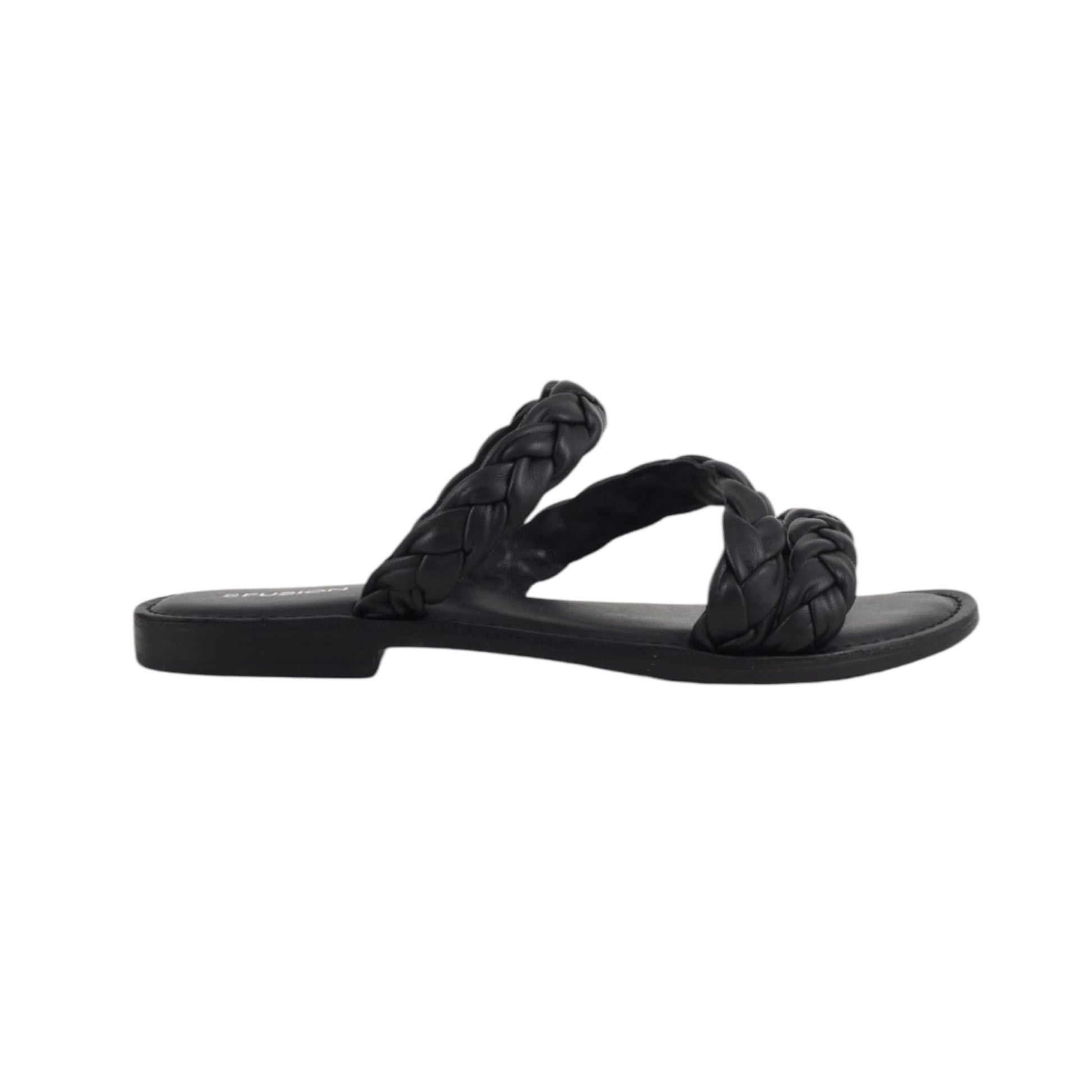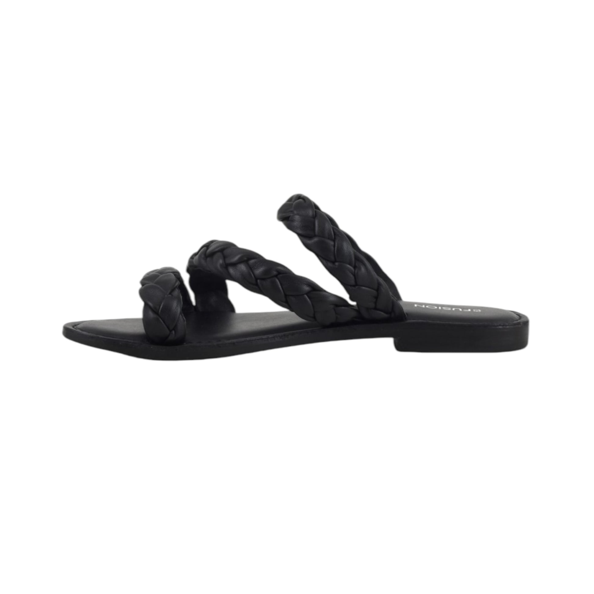 slipper tre fasce di pelle intrecciata e suola ultra flat di cuoio.