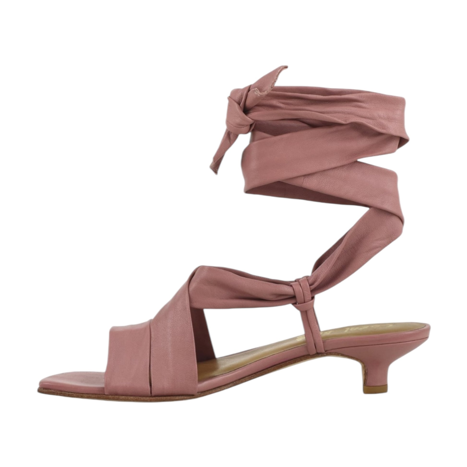 sandali di pelle con lunghi lacci da annodare alla caviglia e kitten heel sono estremamente eleganti e femminili.