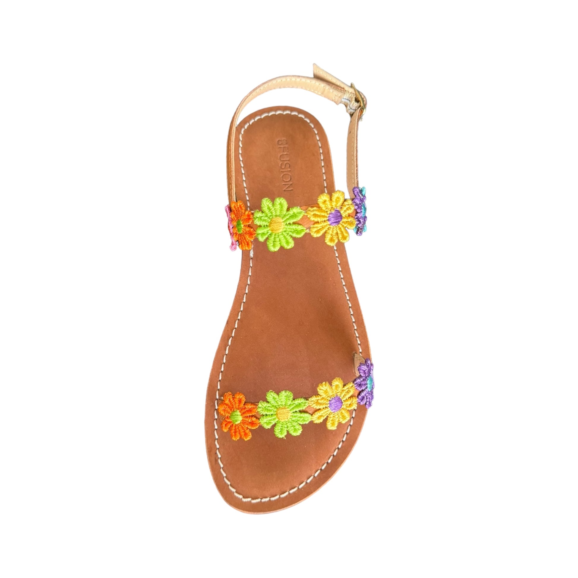 Sandalo Basso con cinturino rosa ricoperto di perline e suola in vero cuoio