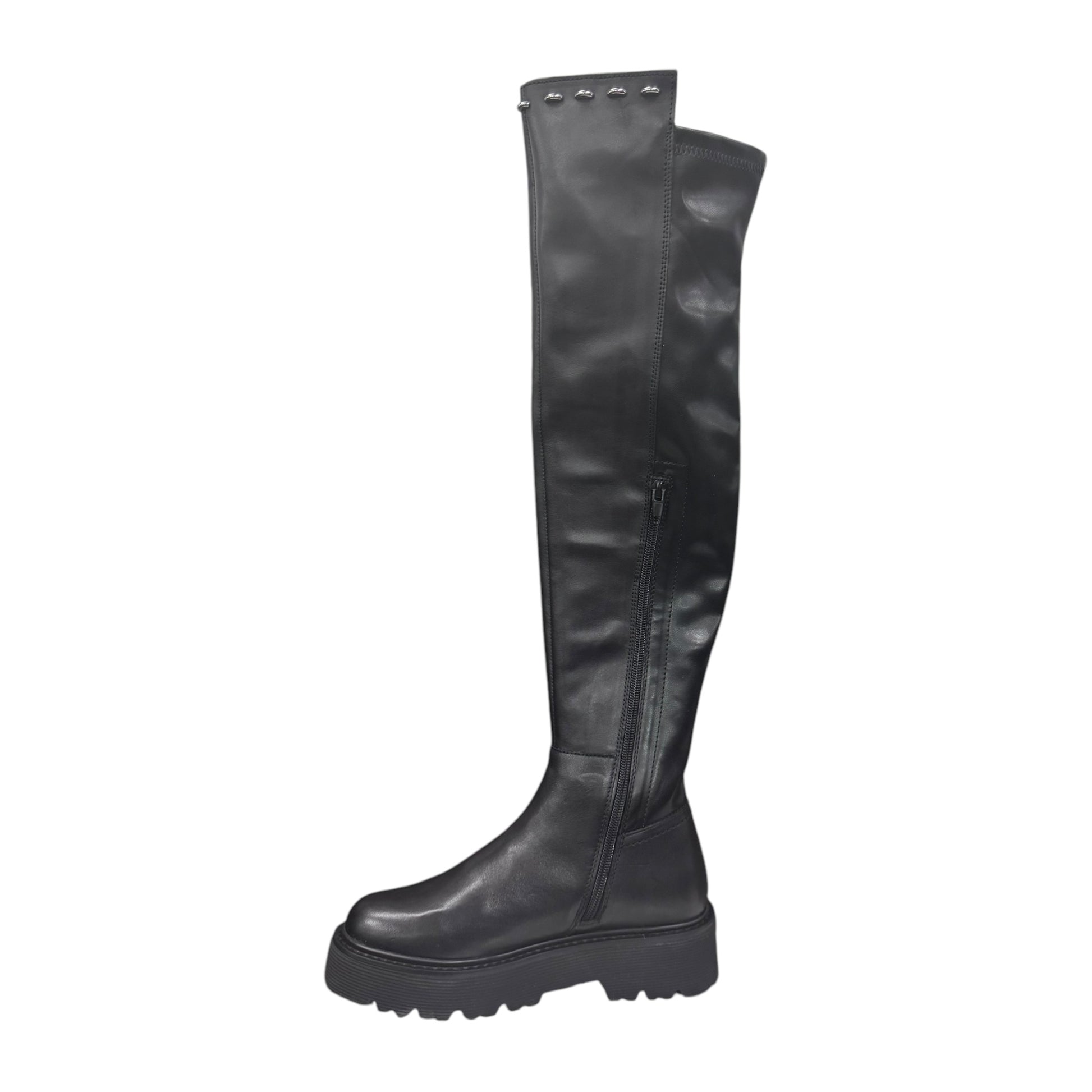 stivale alto in pelle nero con borchie