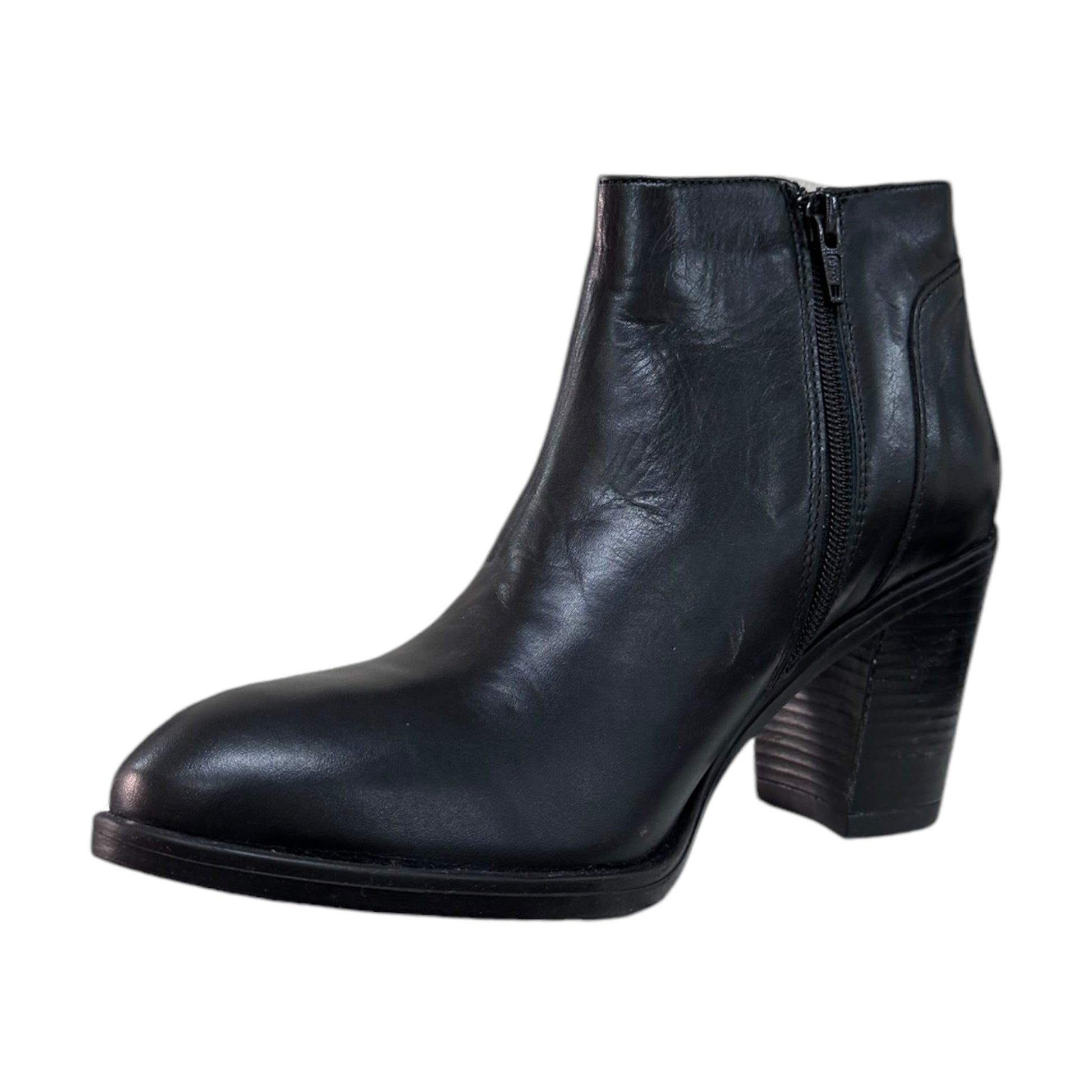 Stivaletto realizzato in vera pelle nero con tacco e borchiette sulla parte laterale