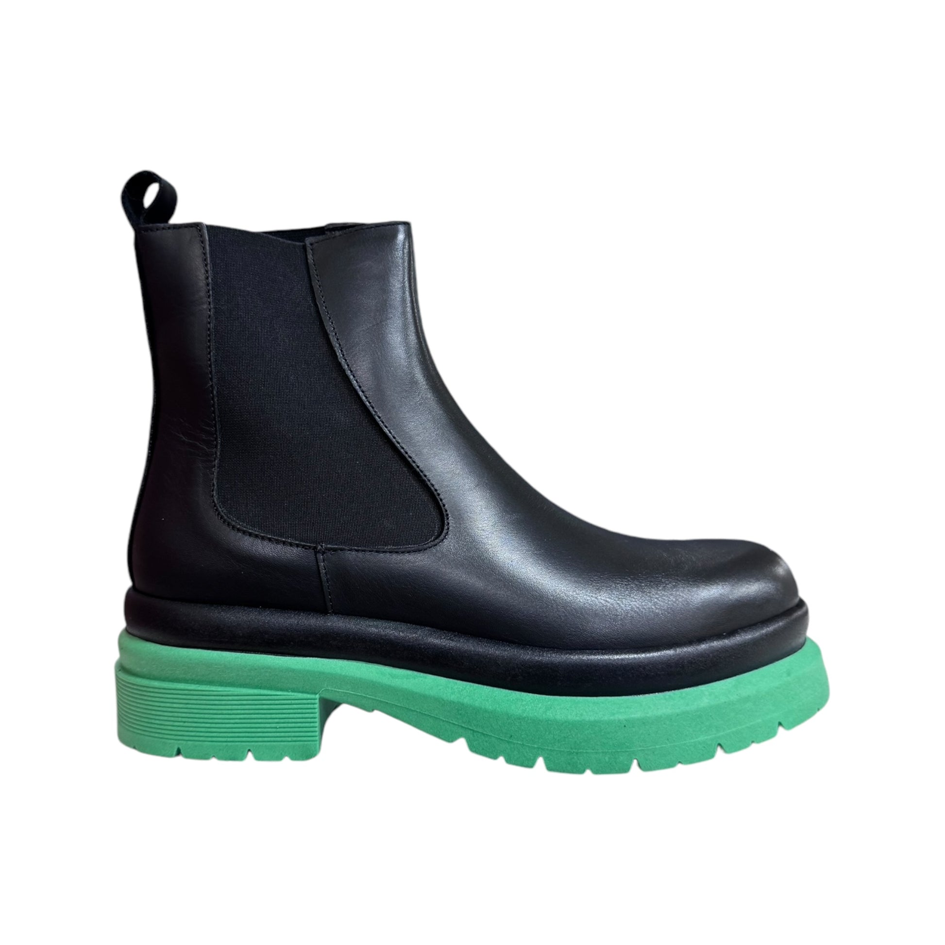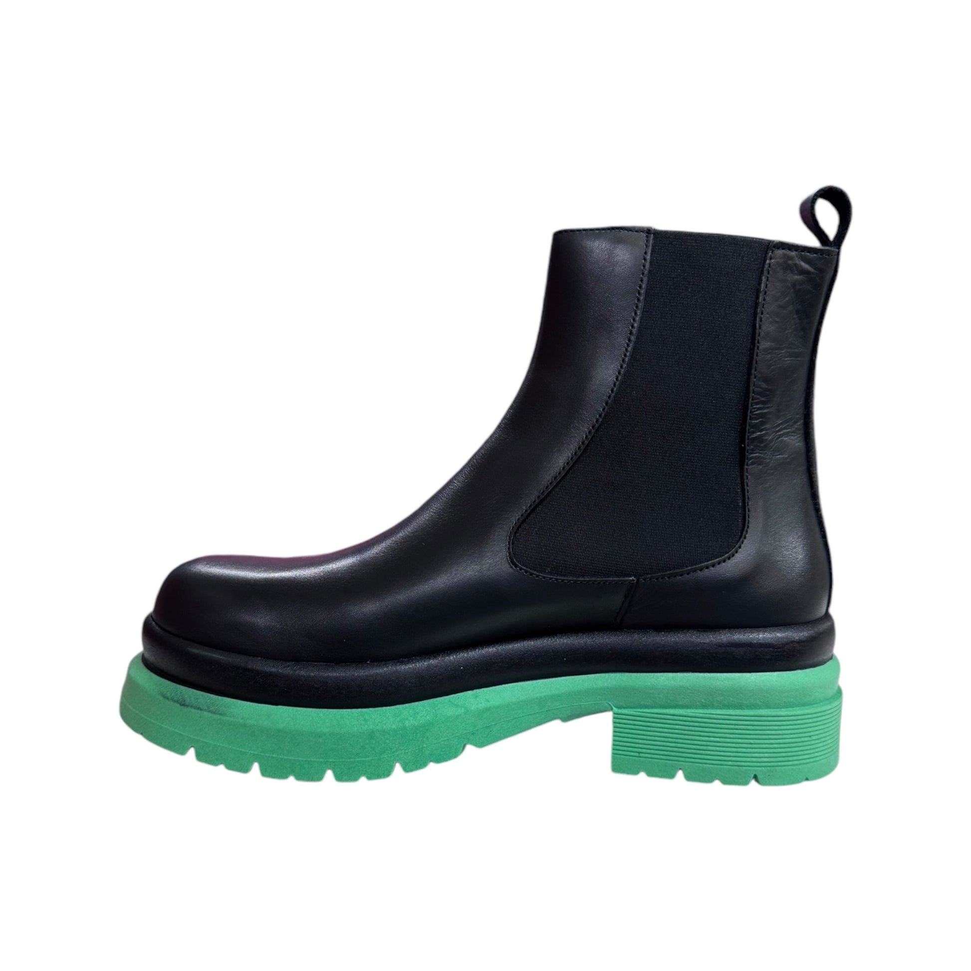 Stivaletto realizzato in vera pelle , con suola tractor verde