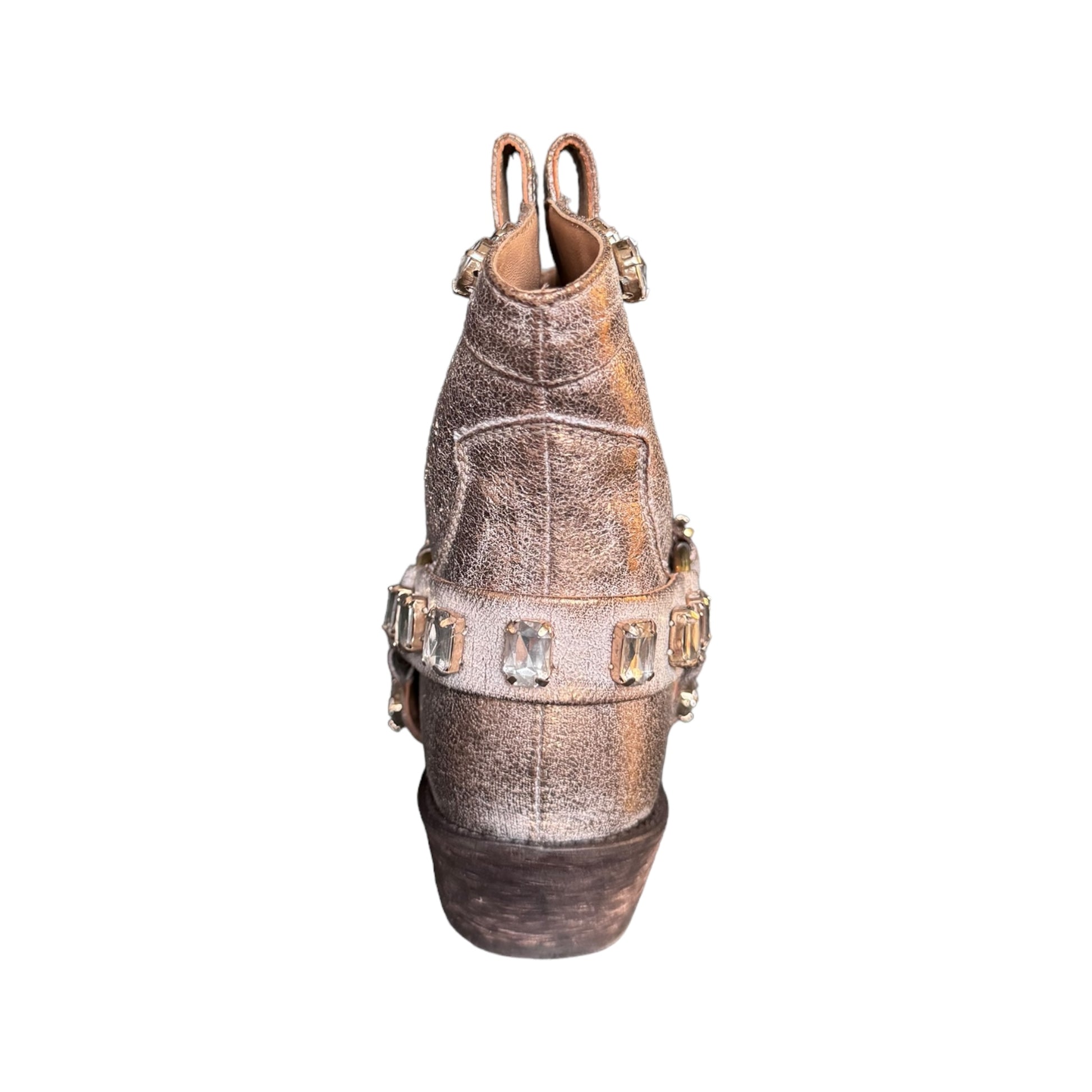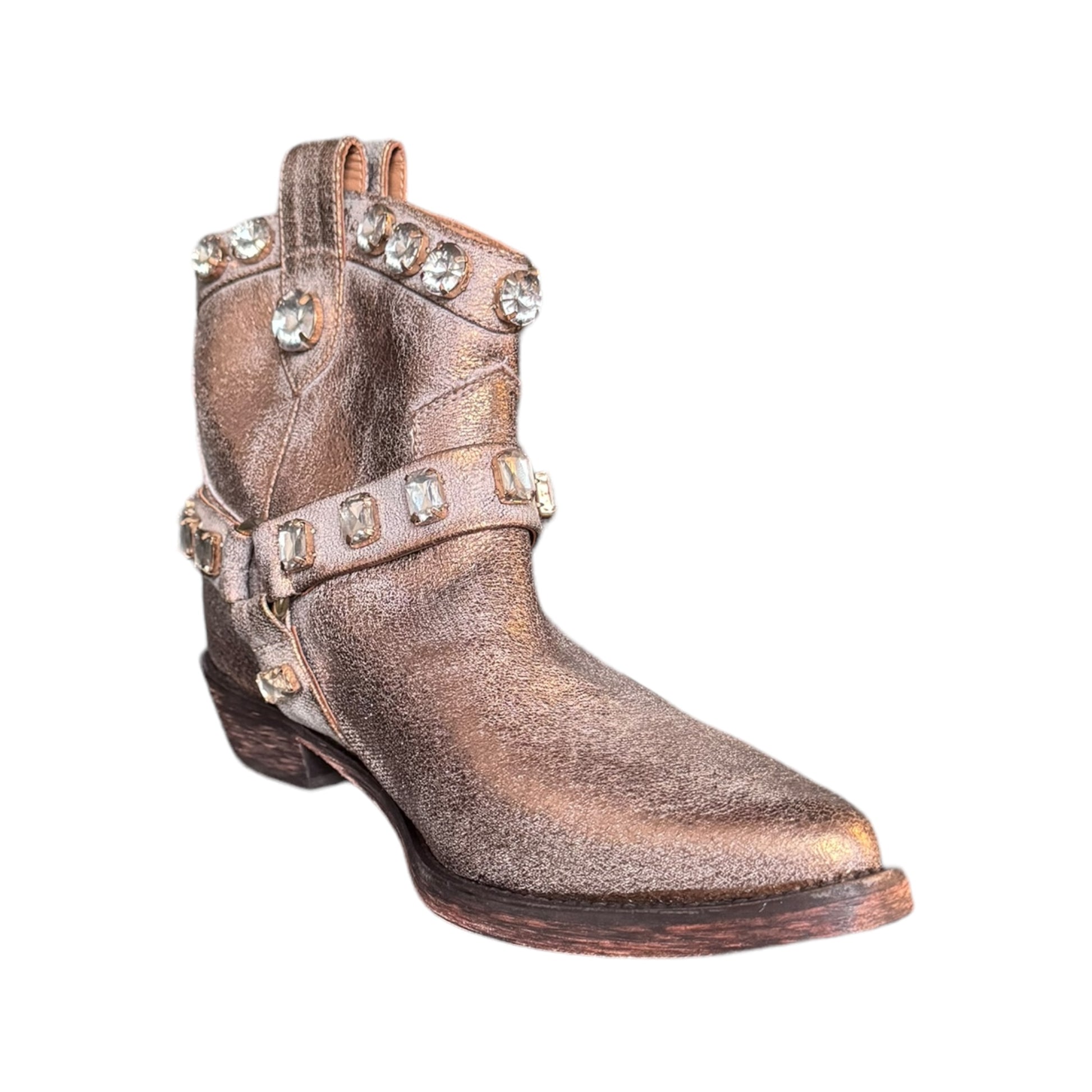 Texano basso bronzo brillantinato con strass in vera pelle e vero cuoio