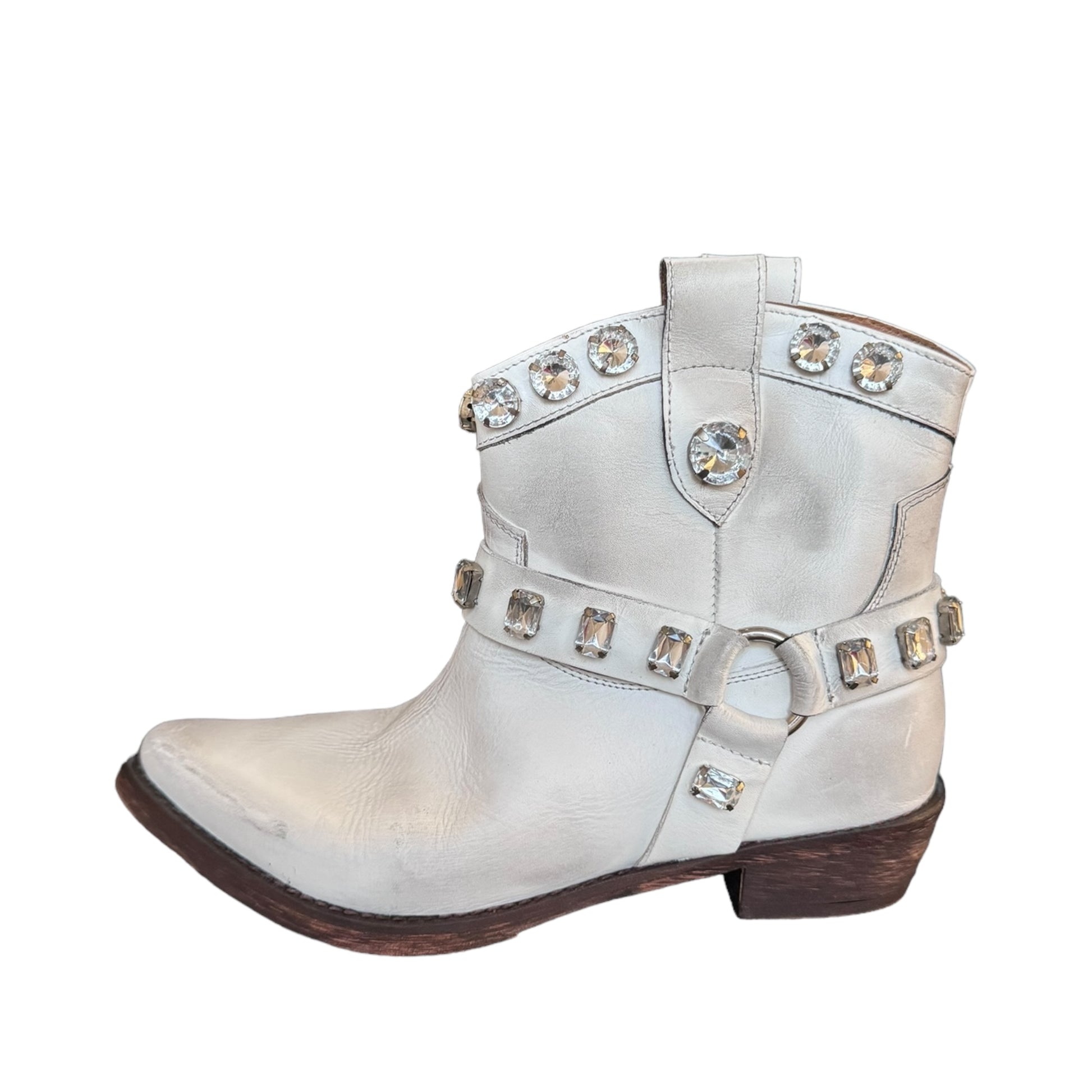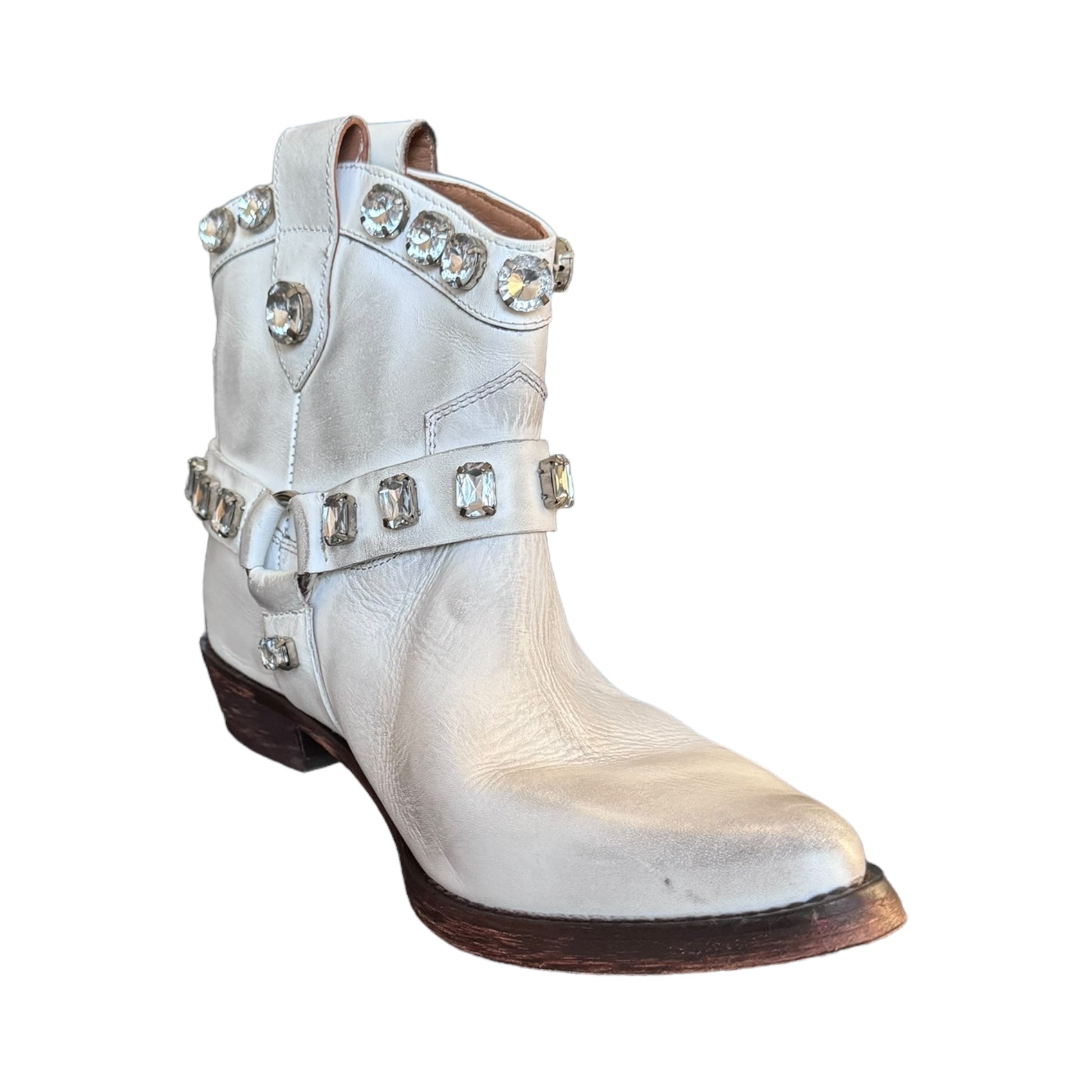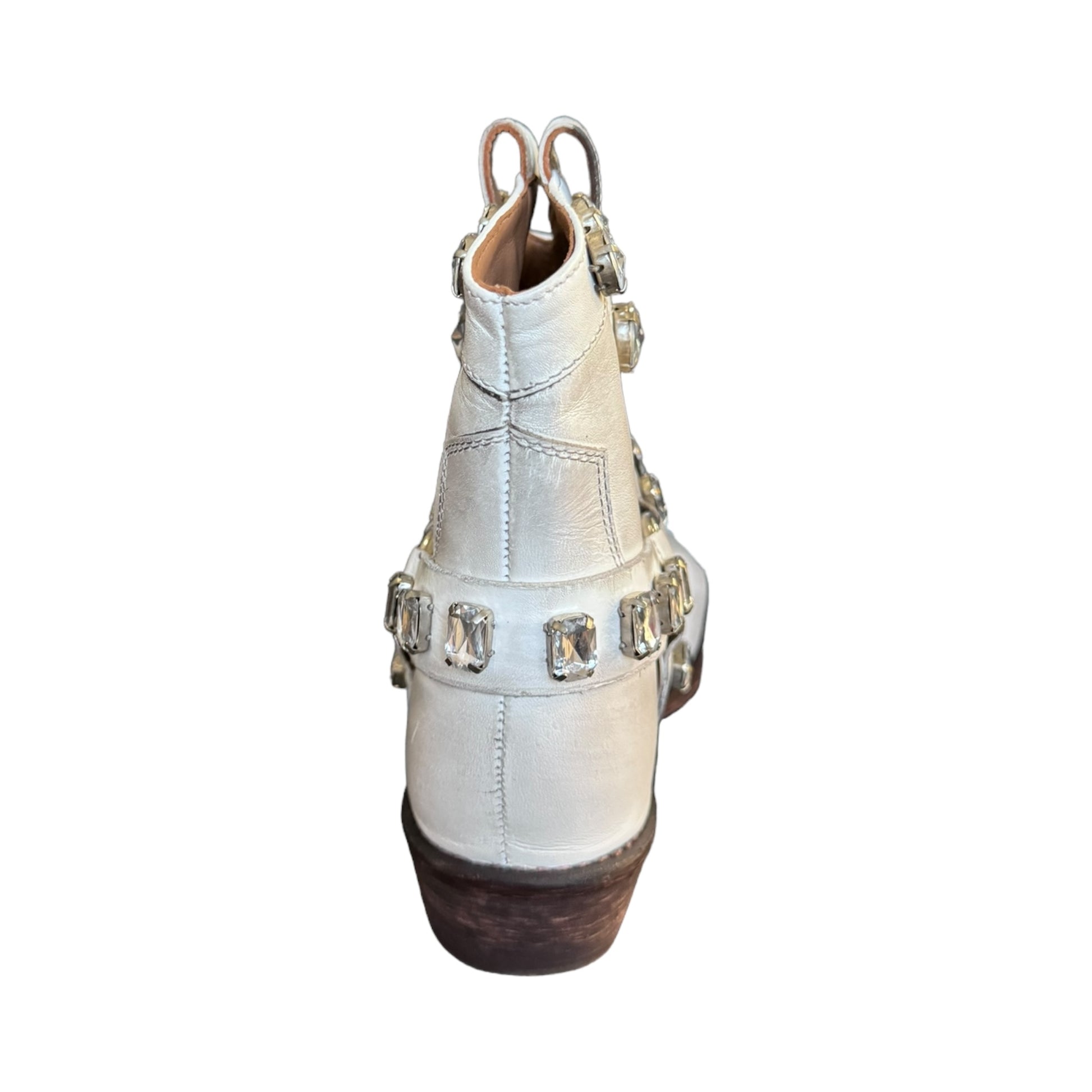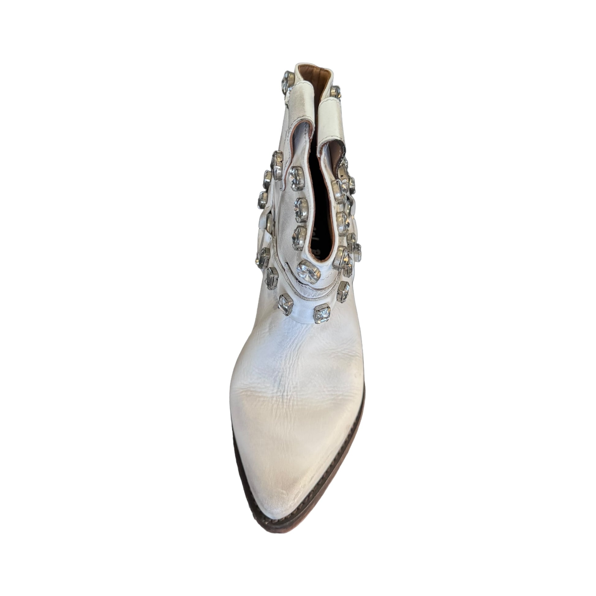Texano bianco effetto consumato con strass in vera pelle e vero cuoio