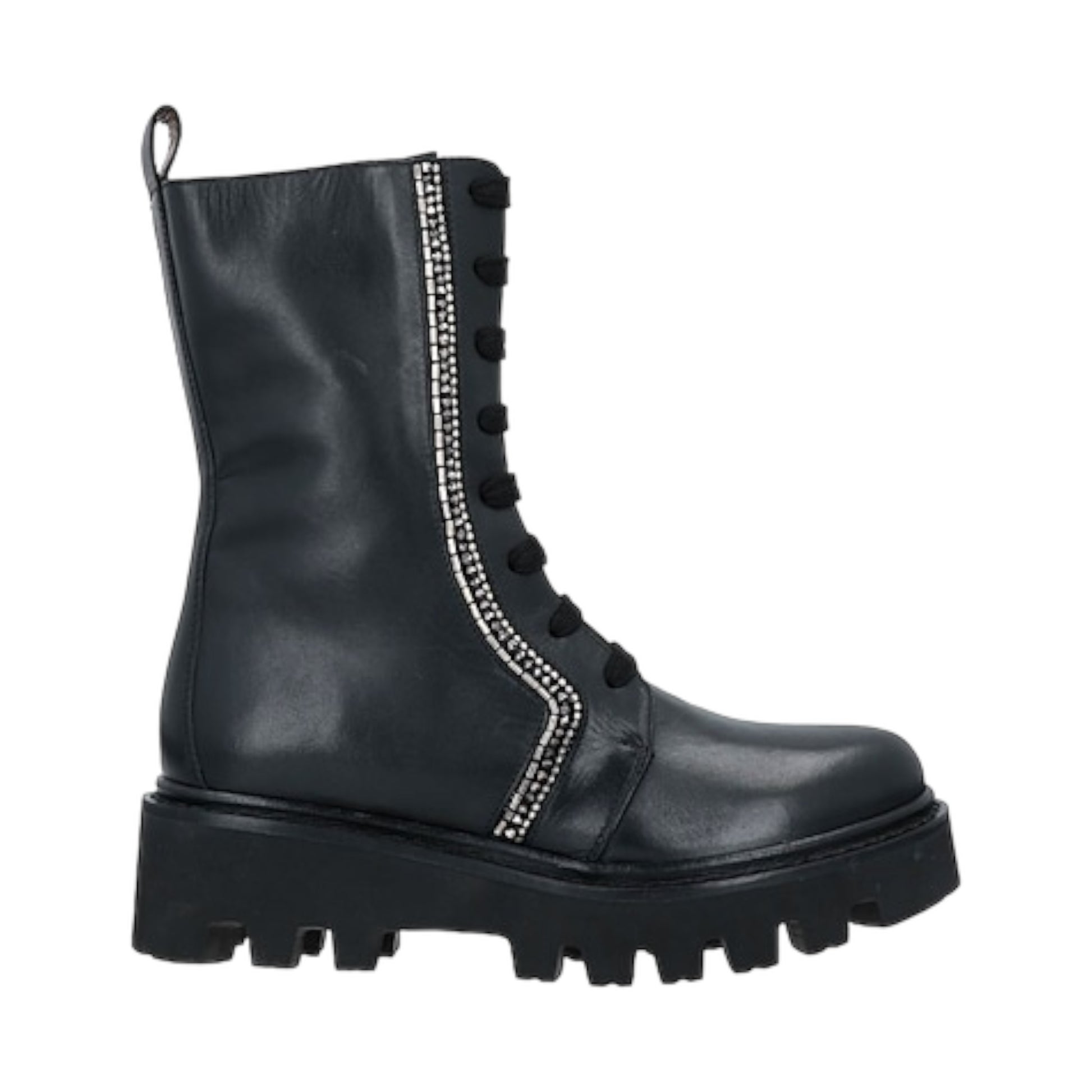 Biker realizzato al 100% in vera pelle di vitello con lacci, suola spessa ma extra leggera e pietre cucite a mano sul laterale
