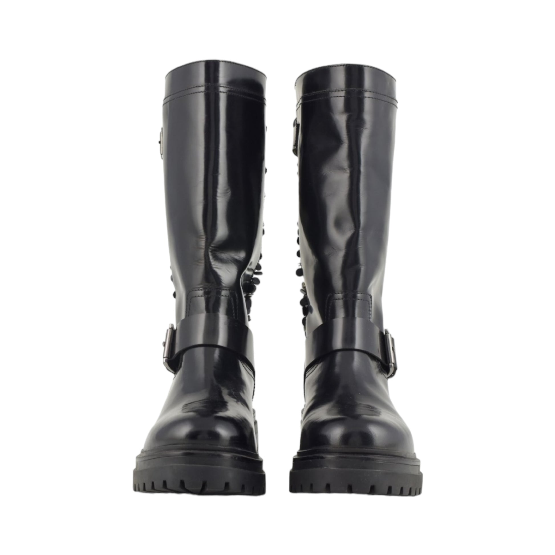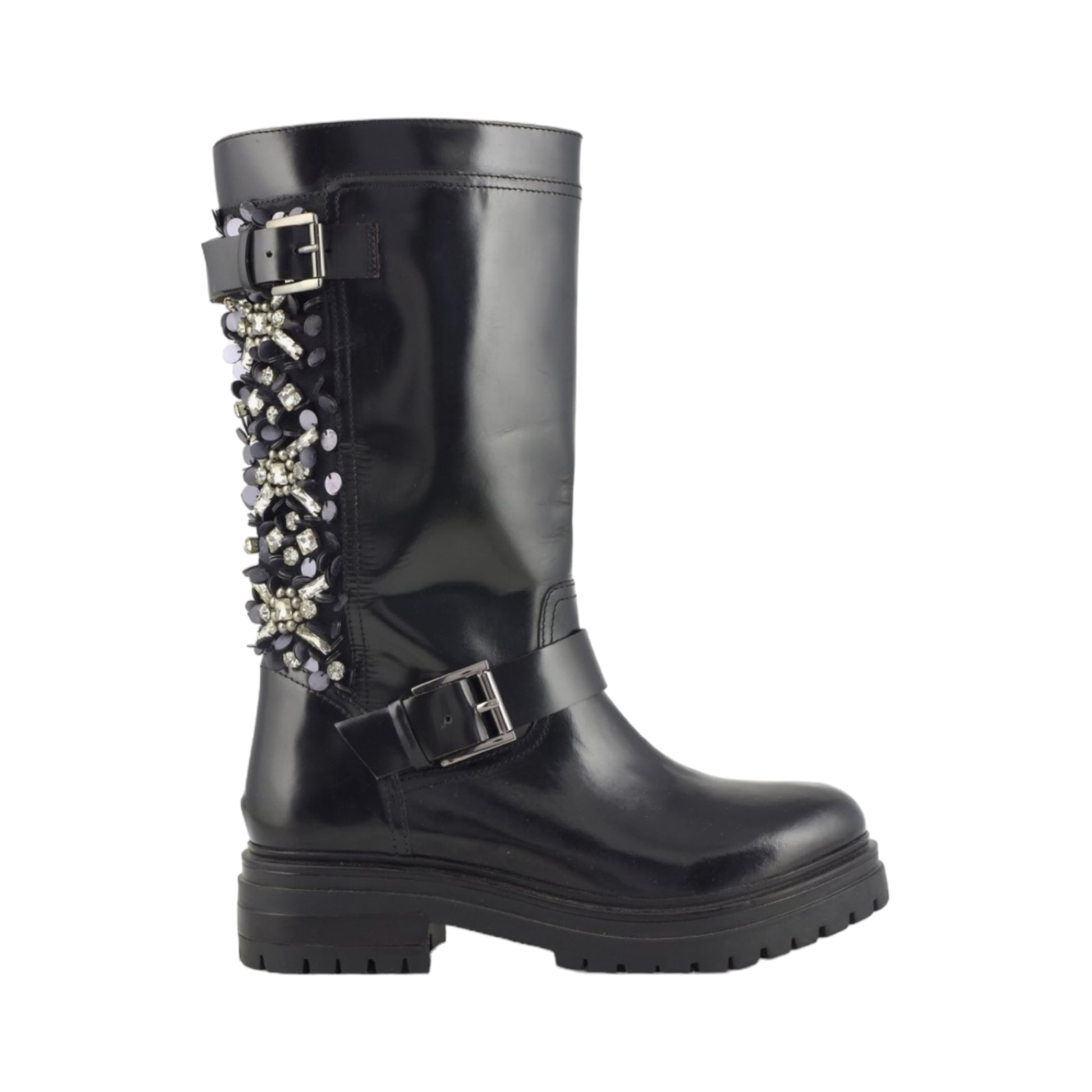Stivale realizzato al 100% in vera pelle, comprese fodera e suola, e con tacco di altezza media.