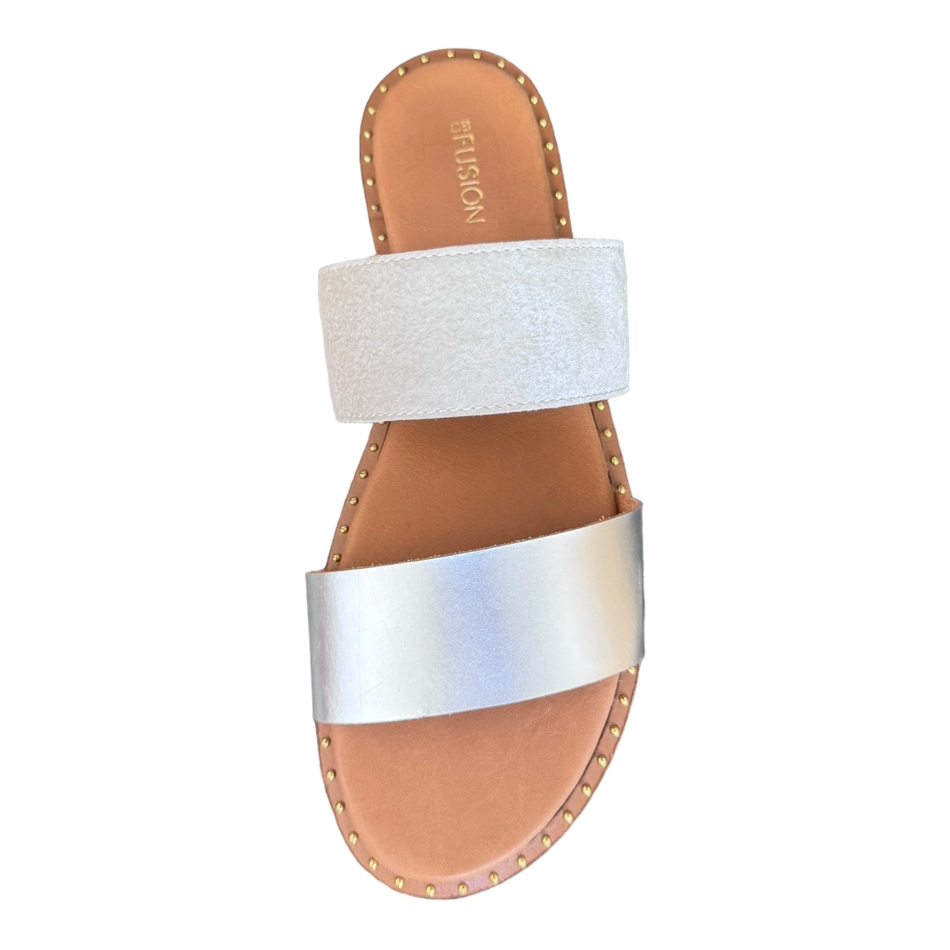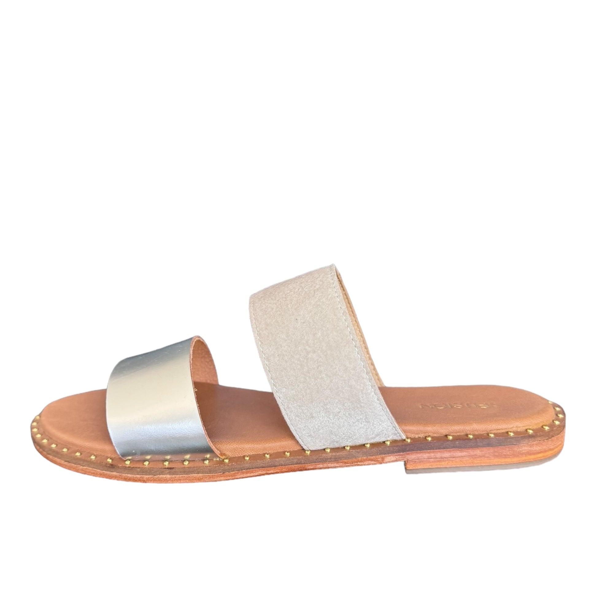 Ciabatta con suola in vero cuoio e fasce in tessuto argento
