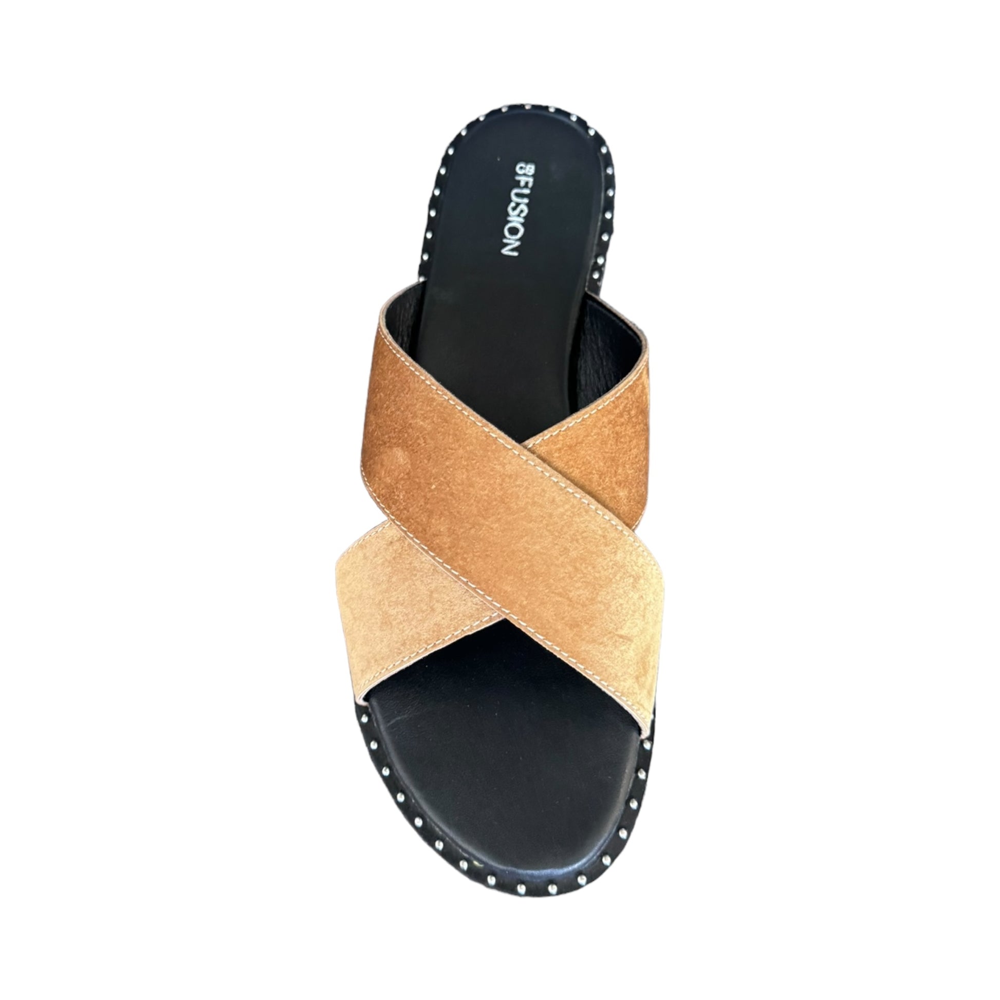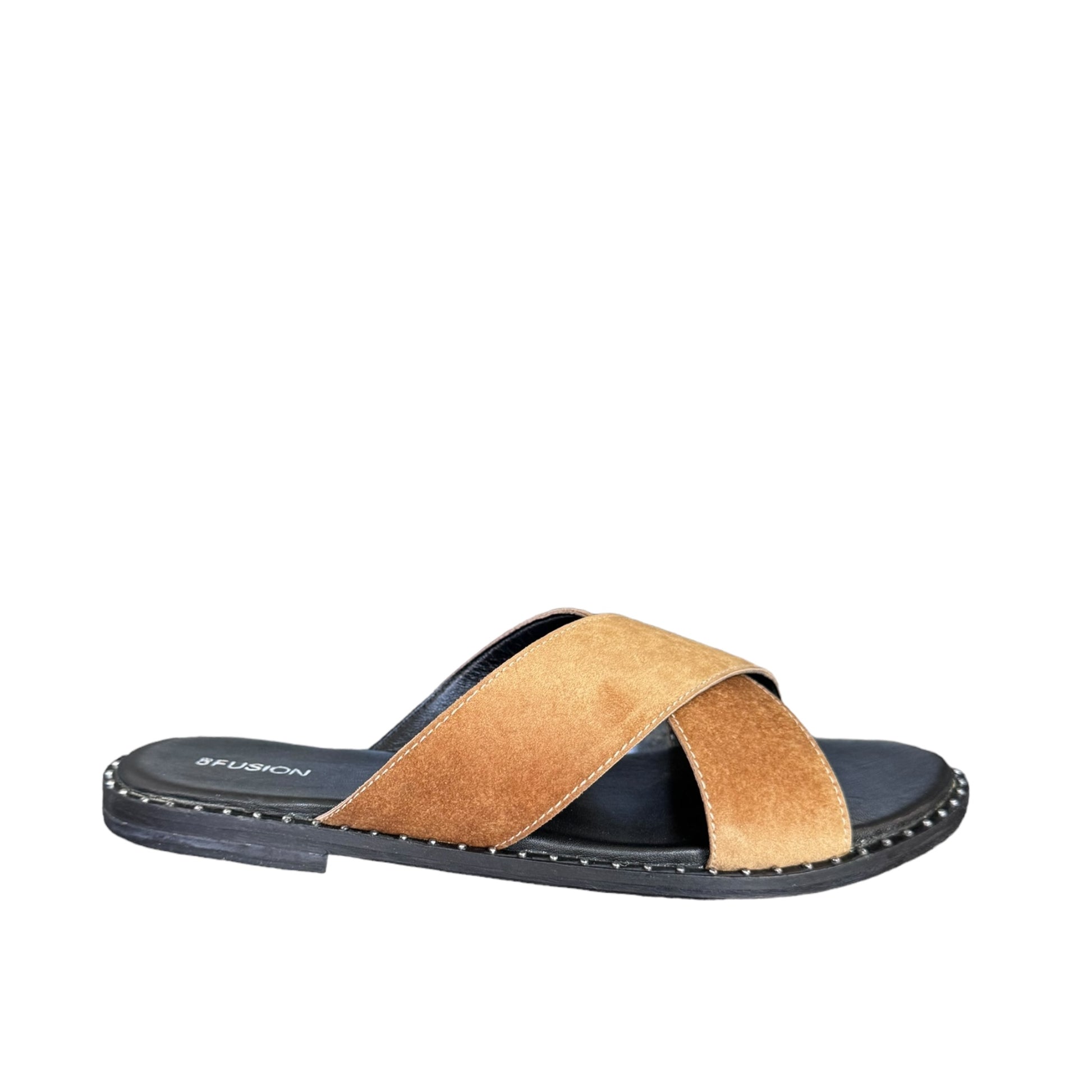 Ciabatta con suola in vero cuoio e fasce intrecciate in tessuto bronzo
