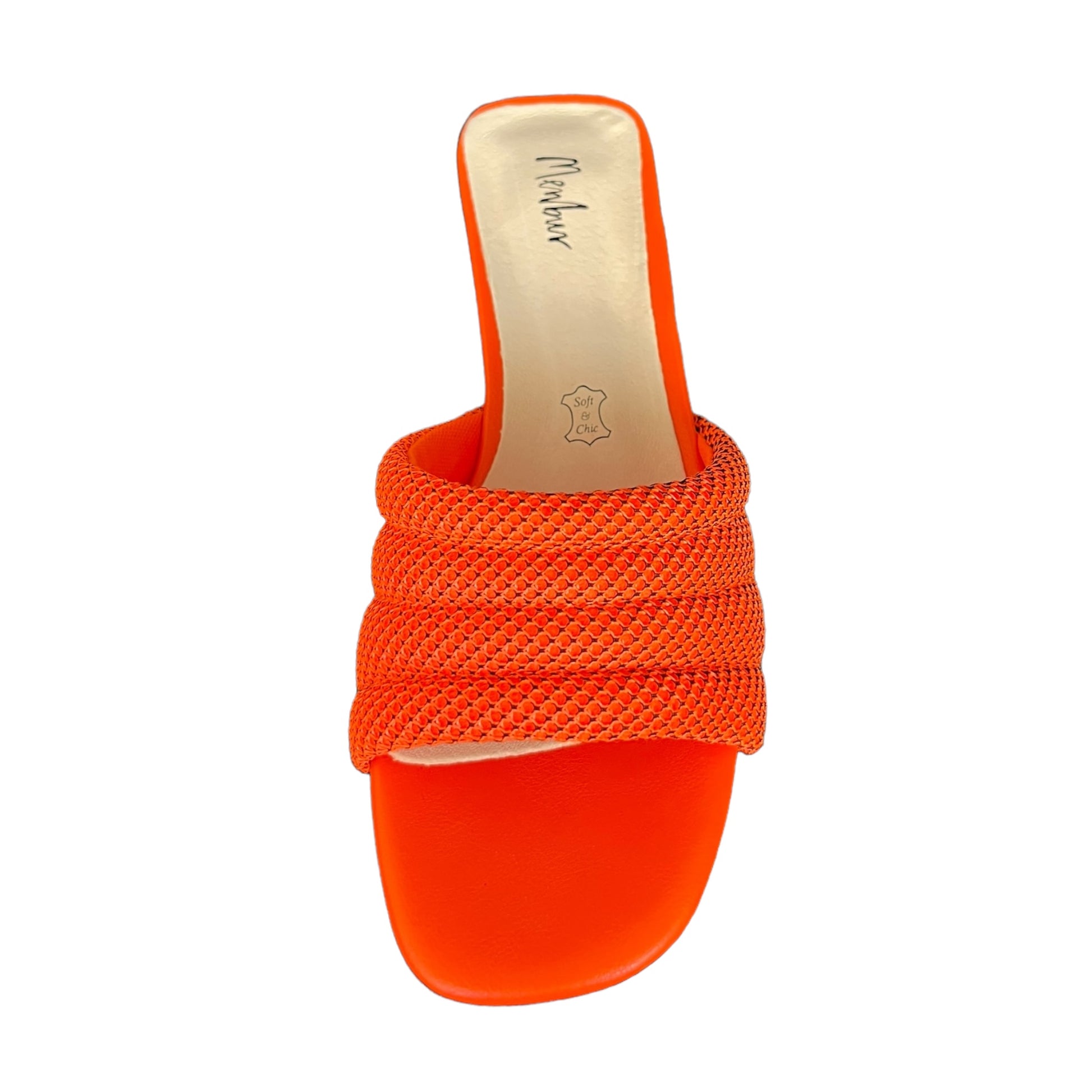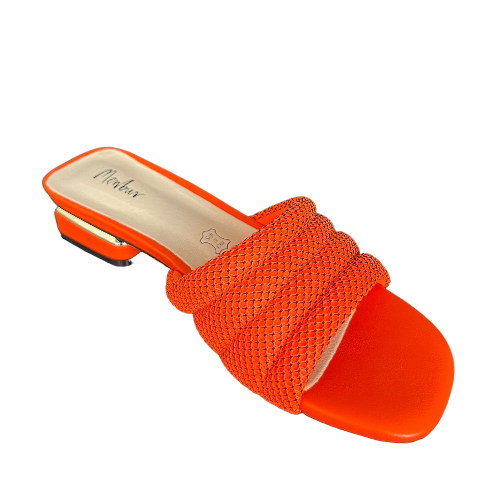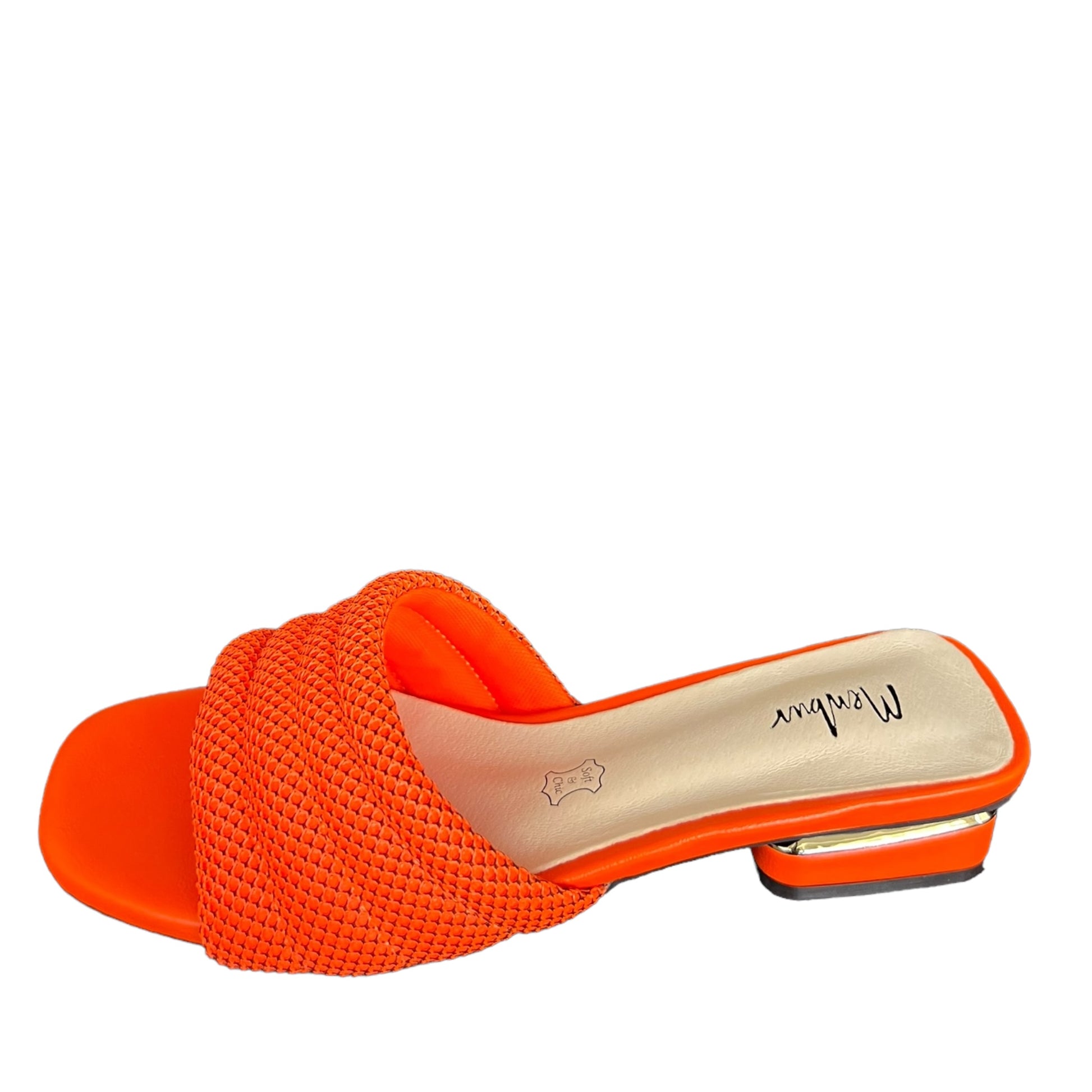 ciabatta in arancione fluo con fascia imbottita tacco 2 cm.