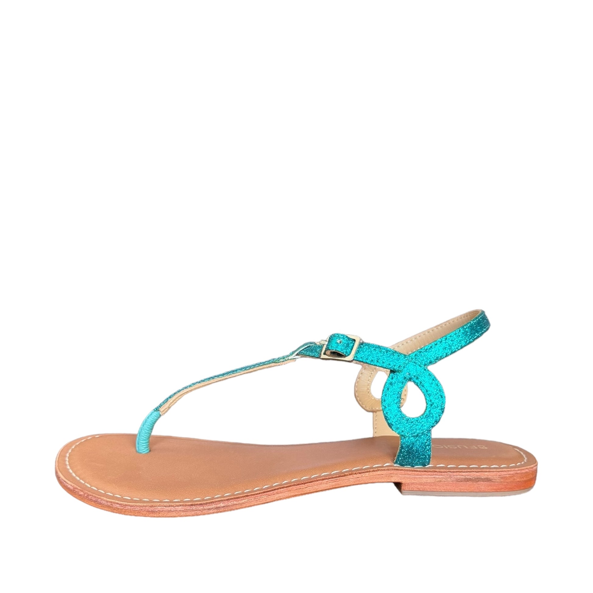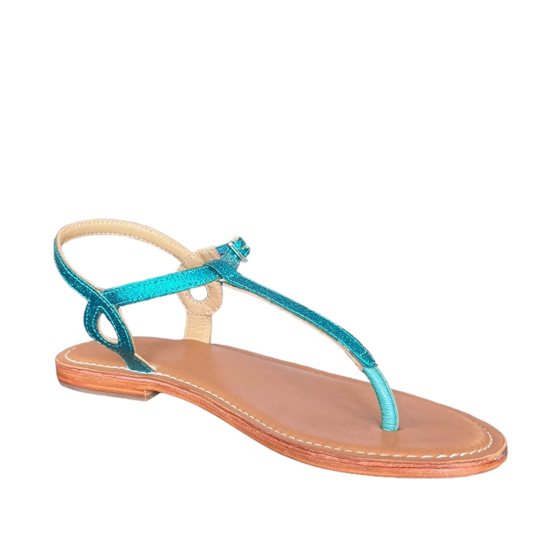 Sandalo basso con cinturini brillantinati turchesi