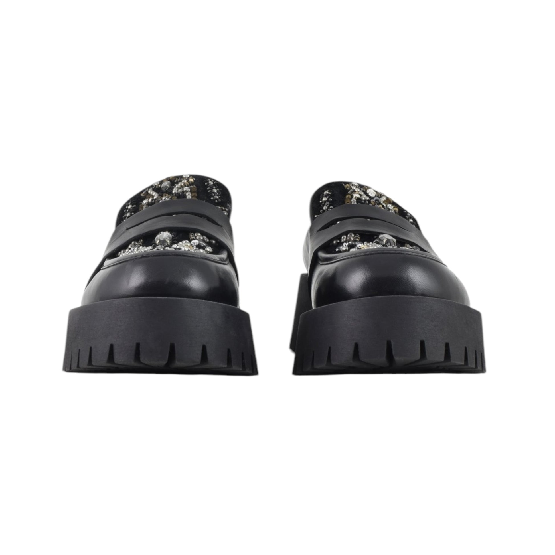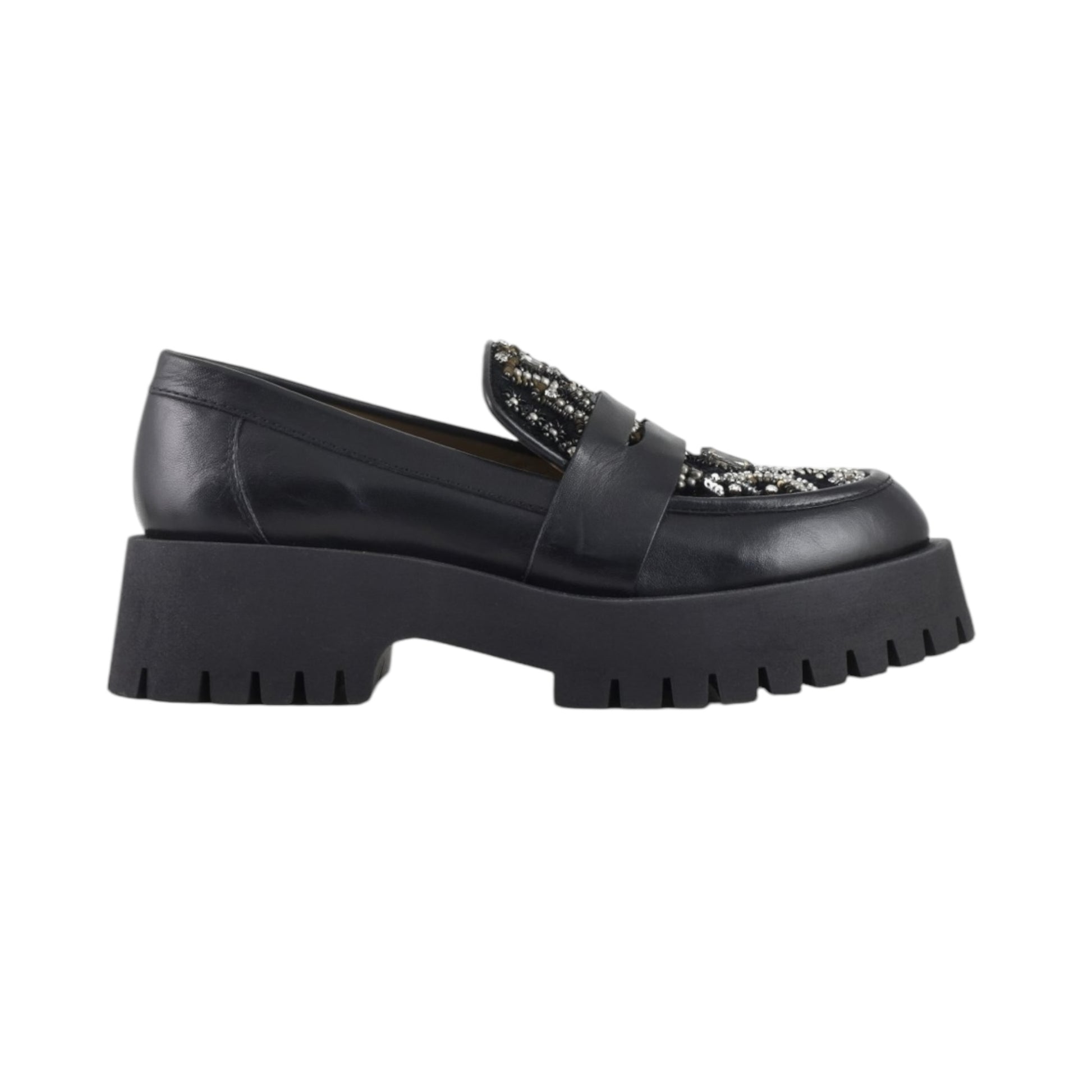 Il mocassino in pelle impreziositi da un romantico ricamo realizzato a mano.