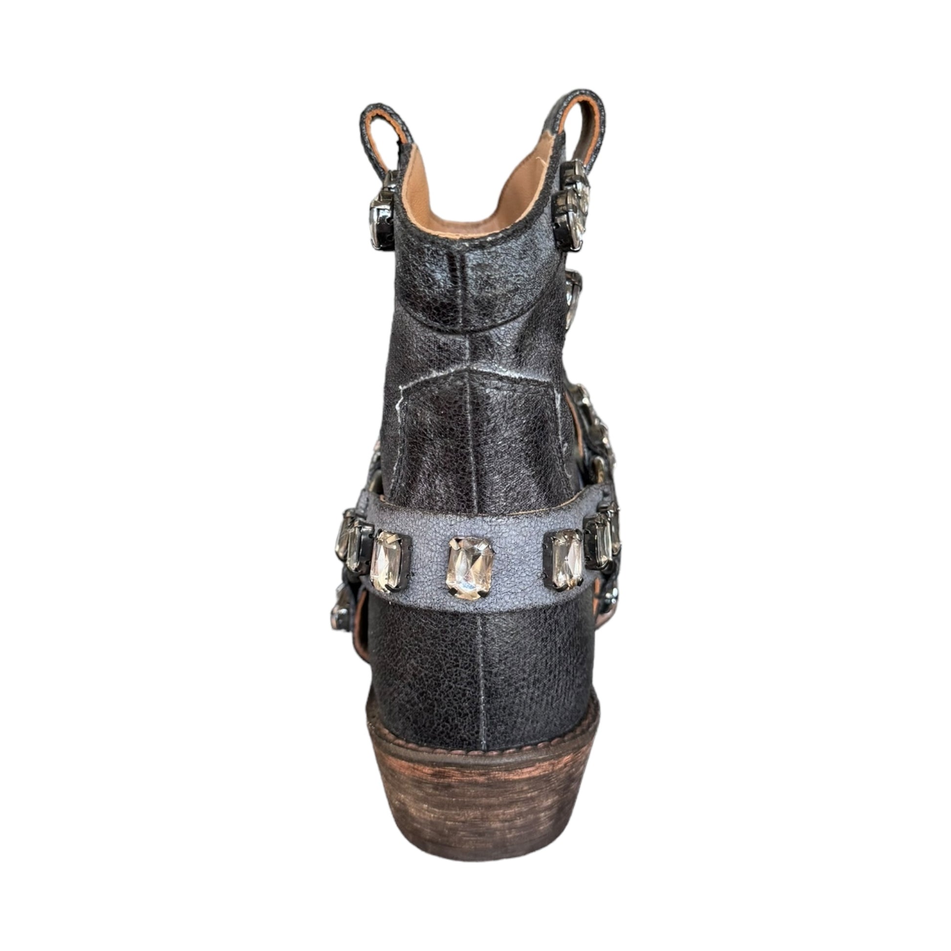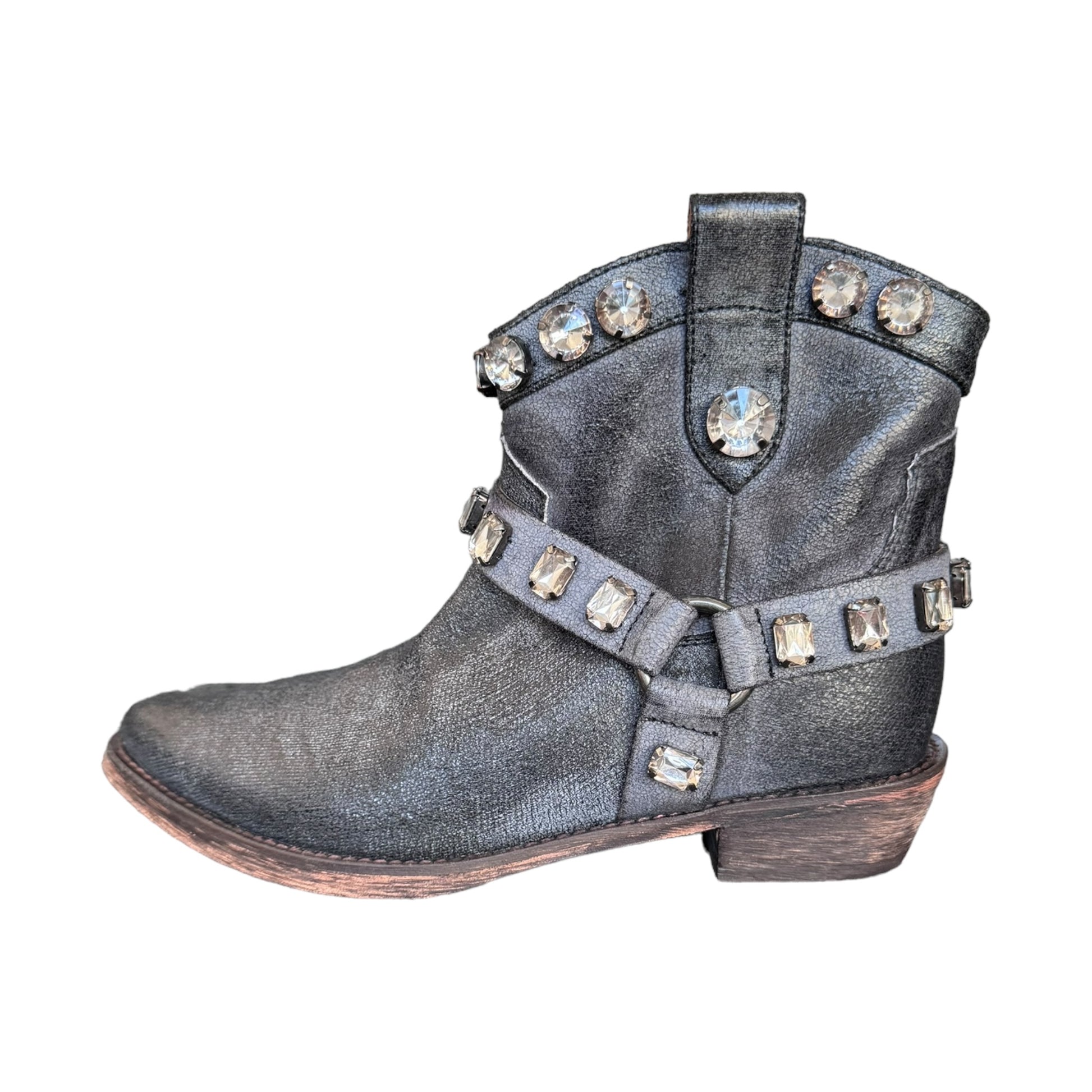 texano nero basso brillantanto con strass in vera pelle e vero cuoio