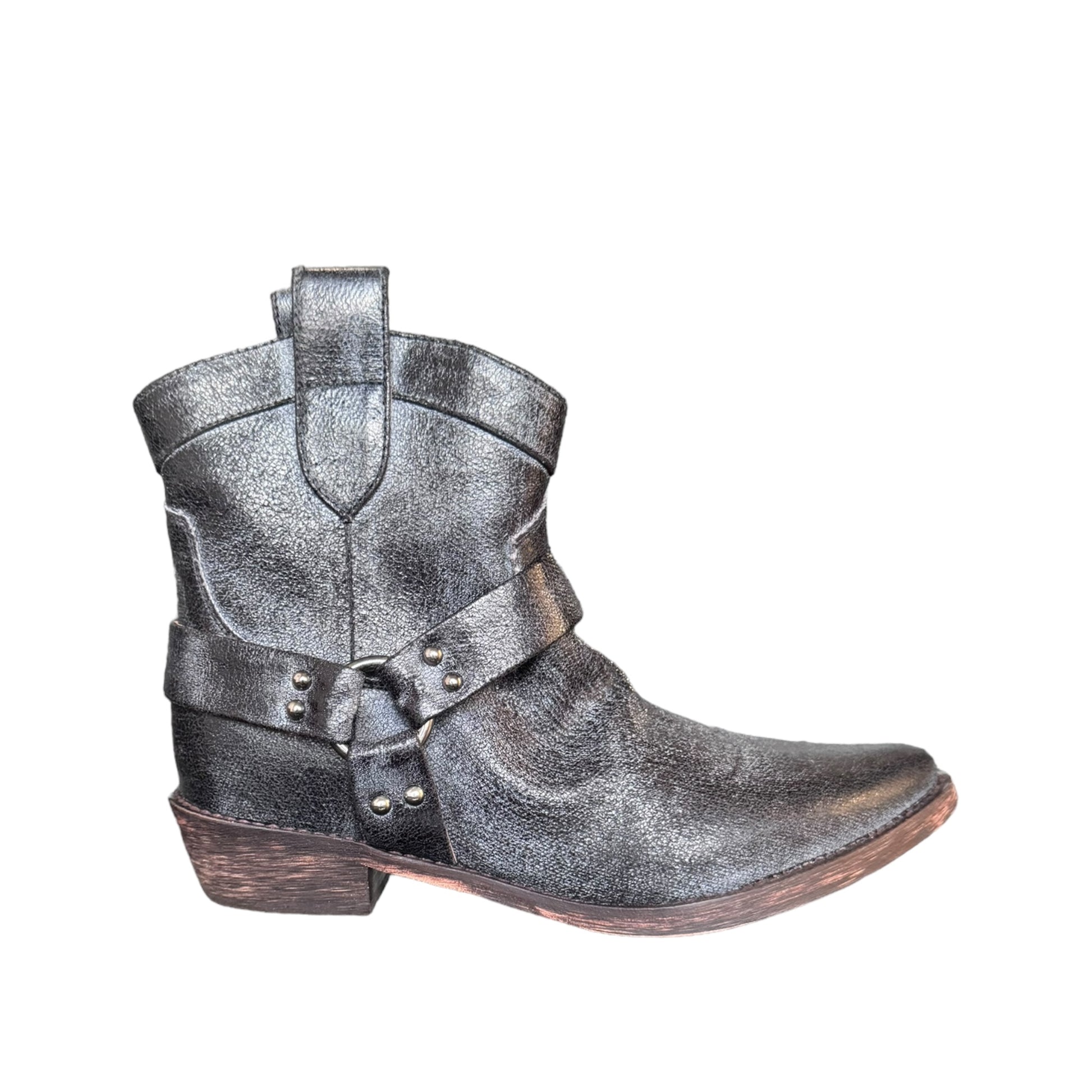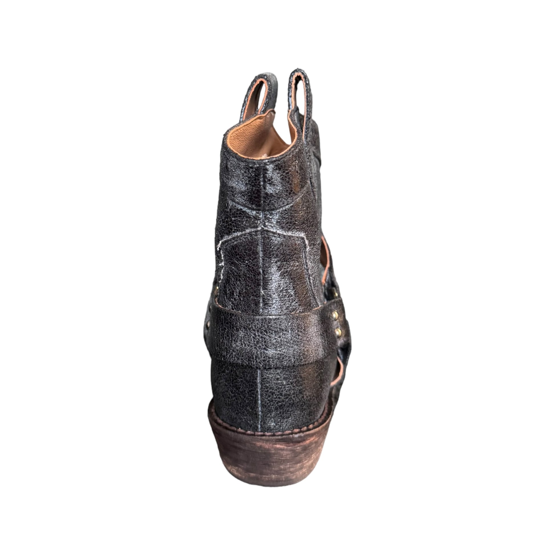texano basso Nero brillantinato in vera pelle e vero cuoio