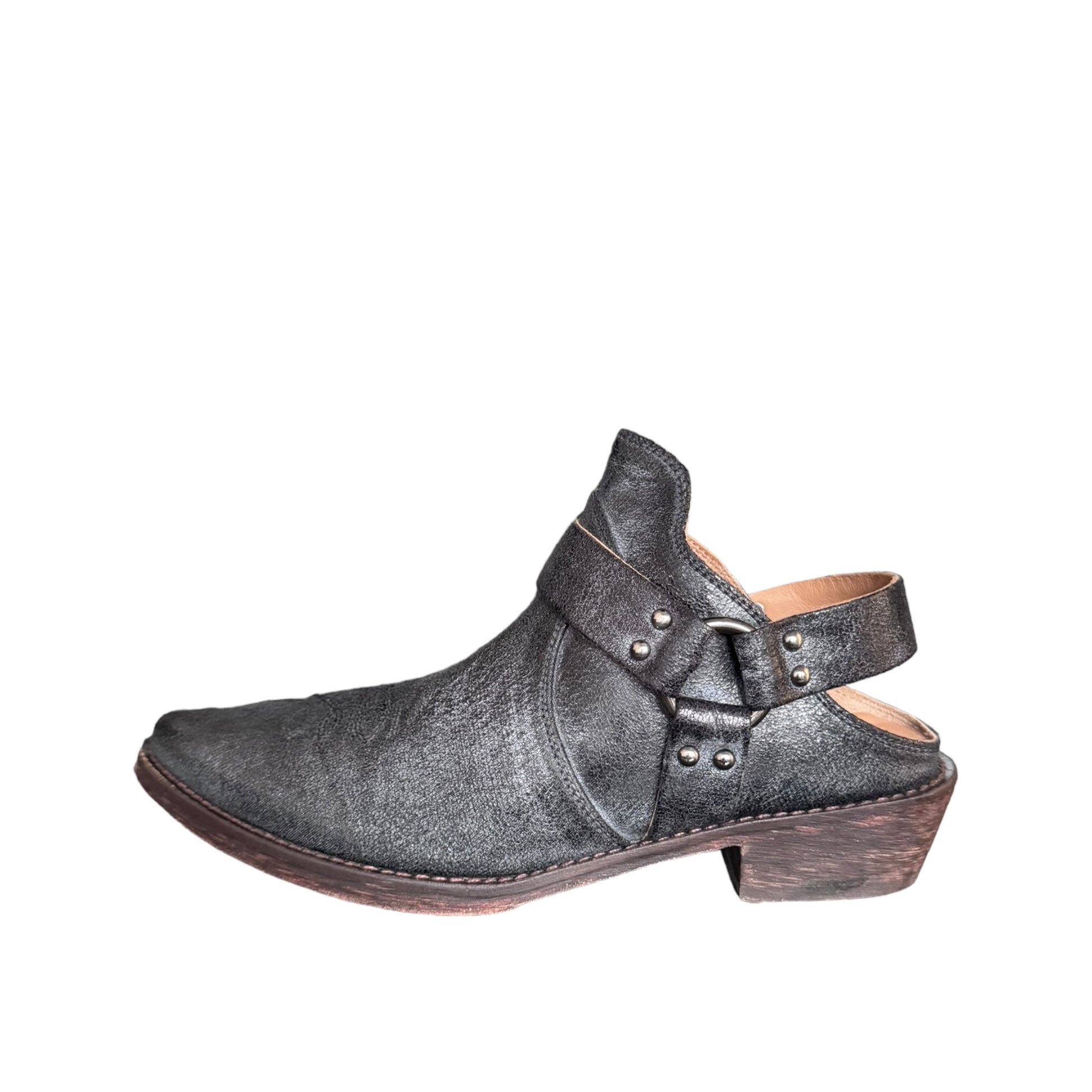 sabot nero brillantinato con cinturino in vera pelle e vero cuoio