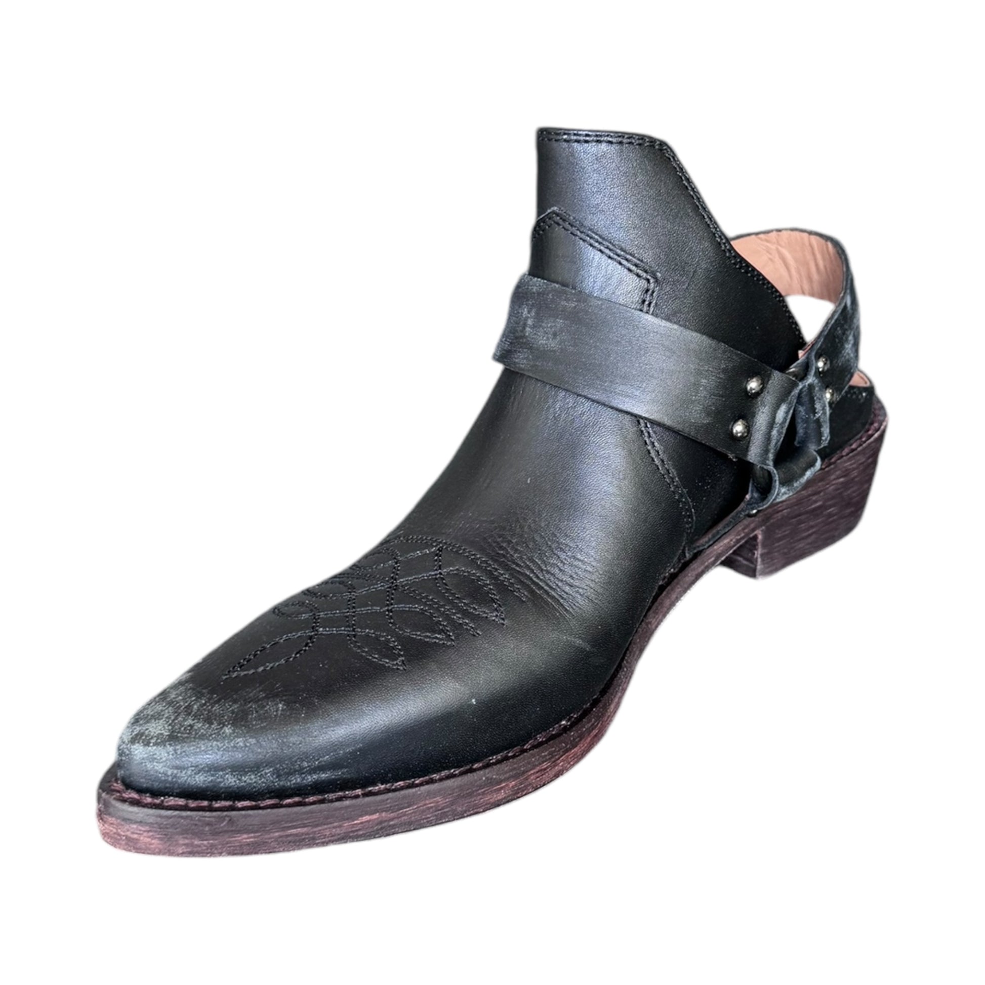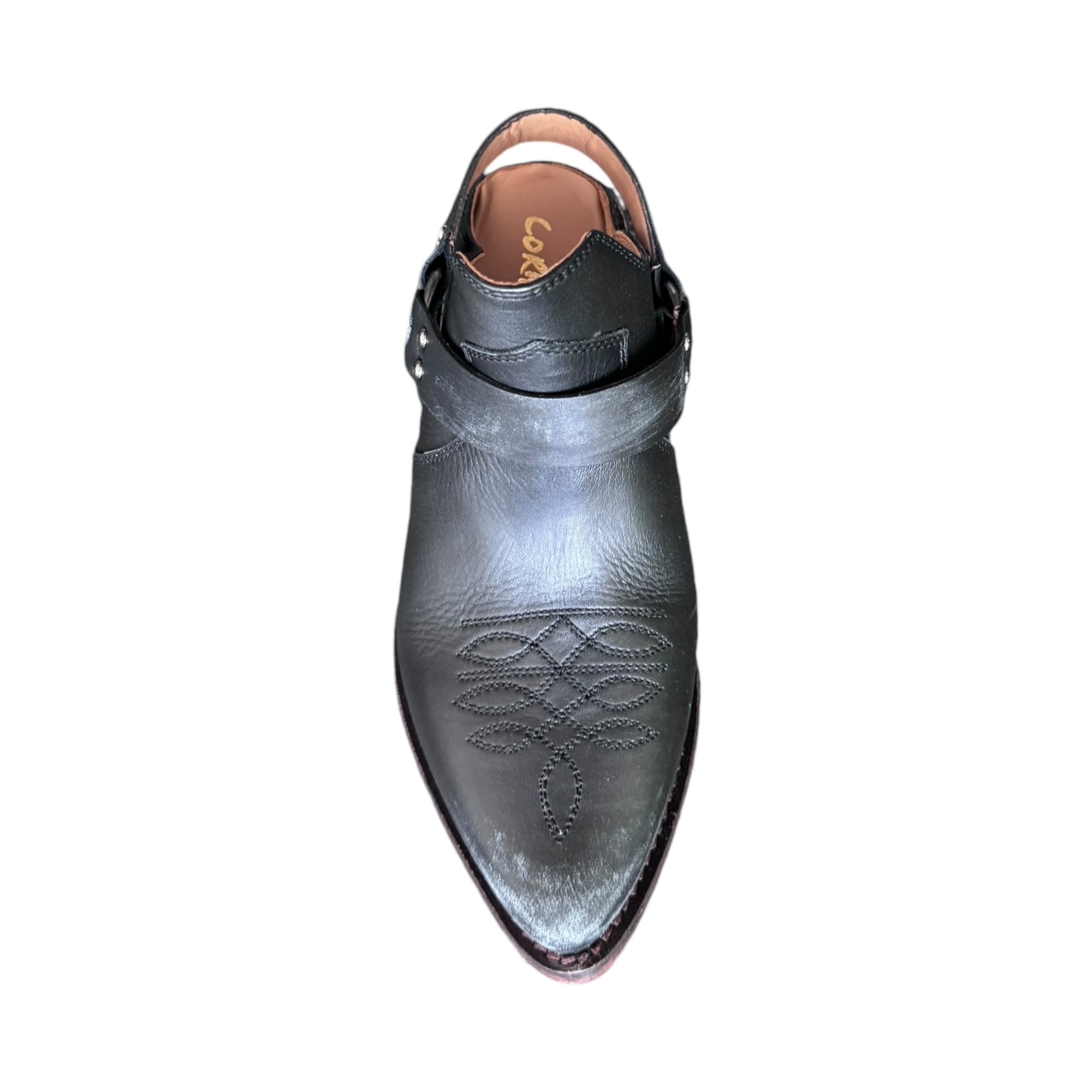 sabot nero con cinturino effetto consumato in vera pelle e vero cuoio
