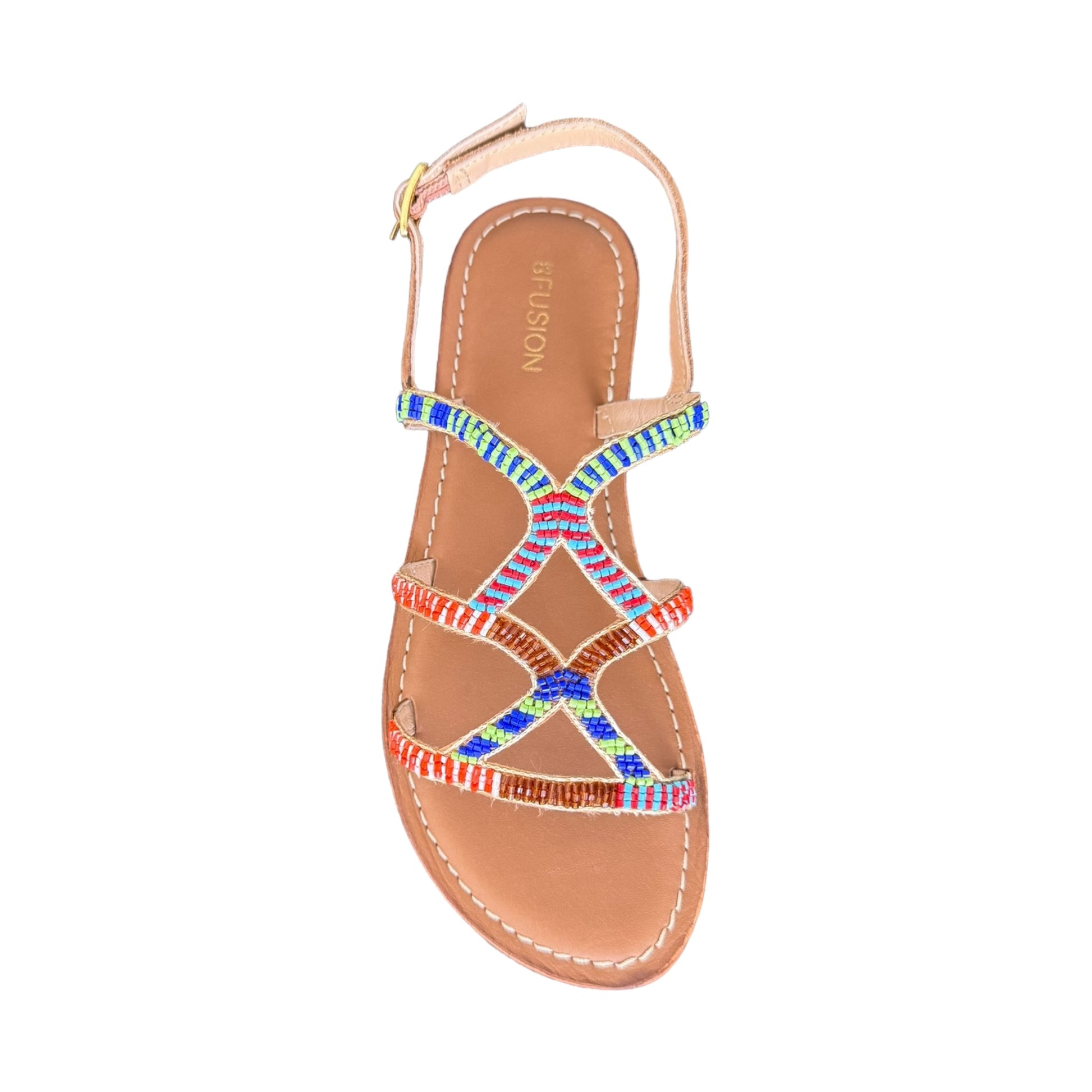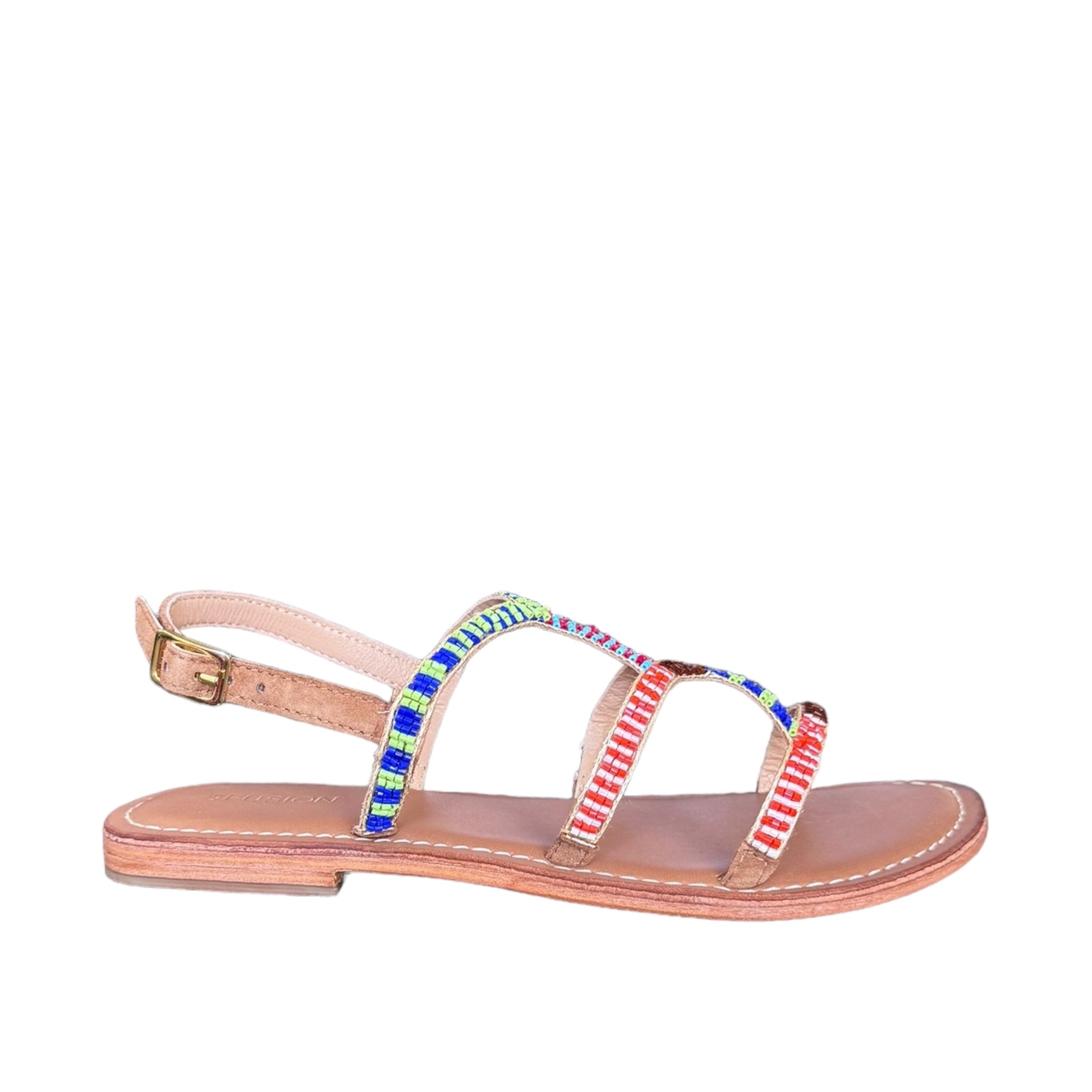 Sandalo Basso con cinturini intrecciati e perline Multicolor