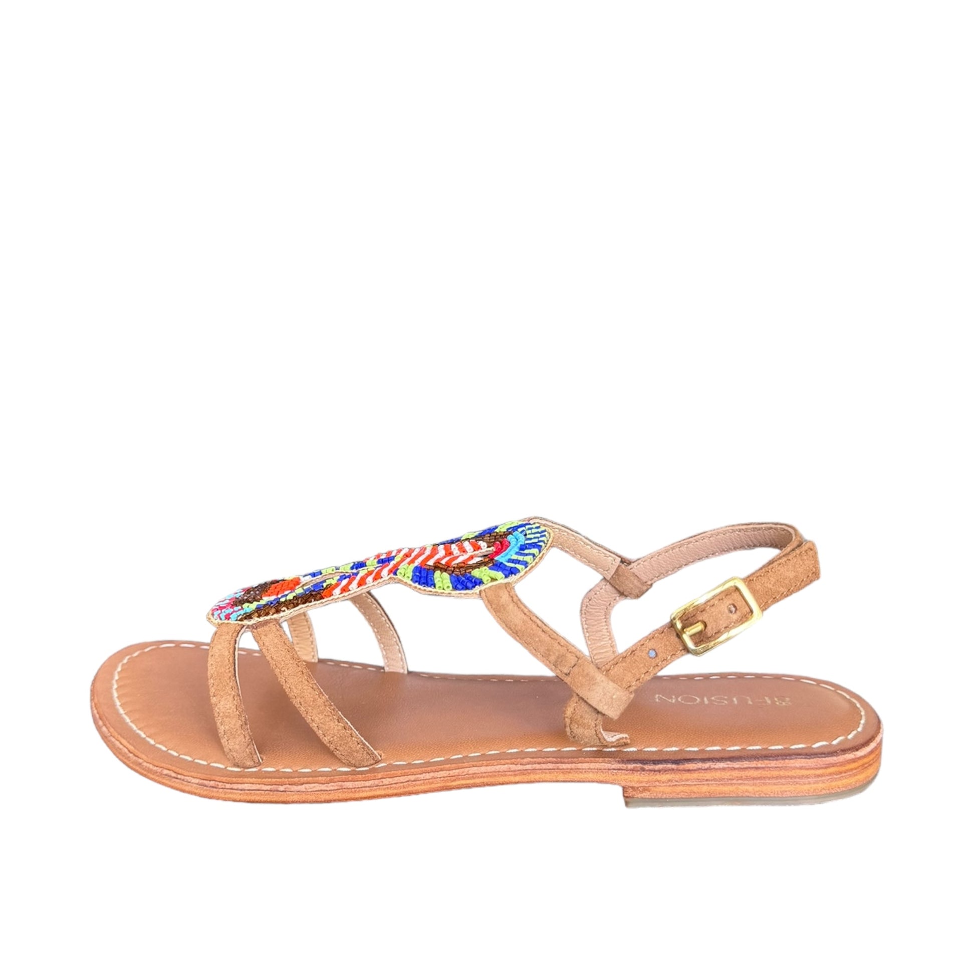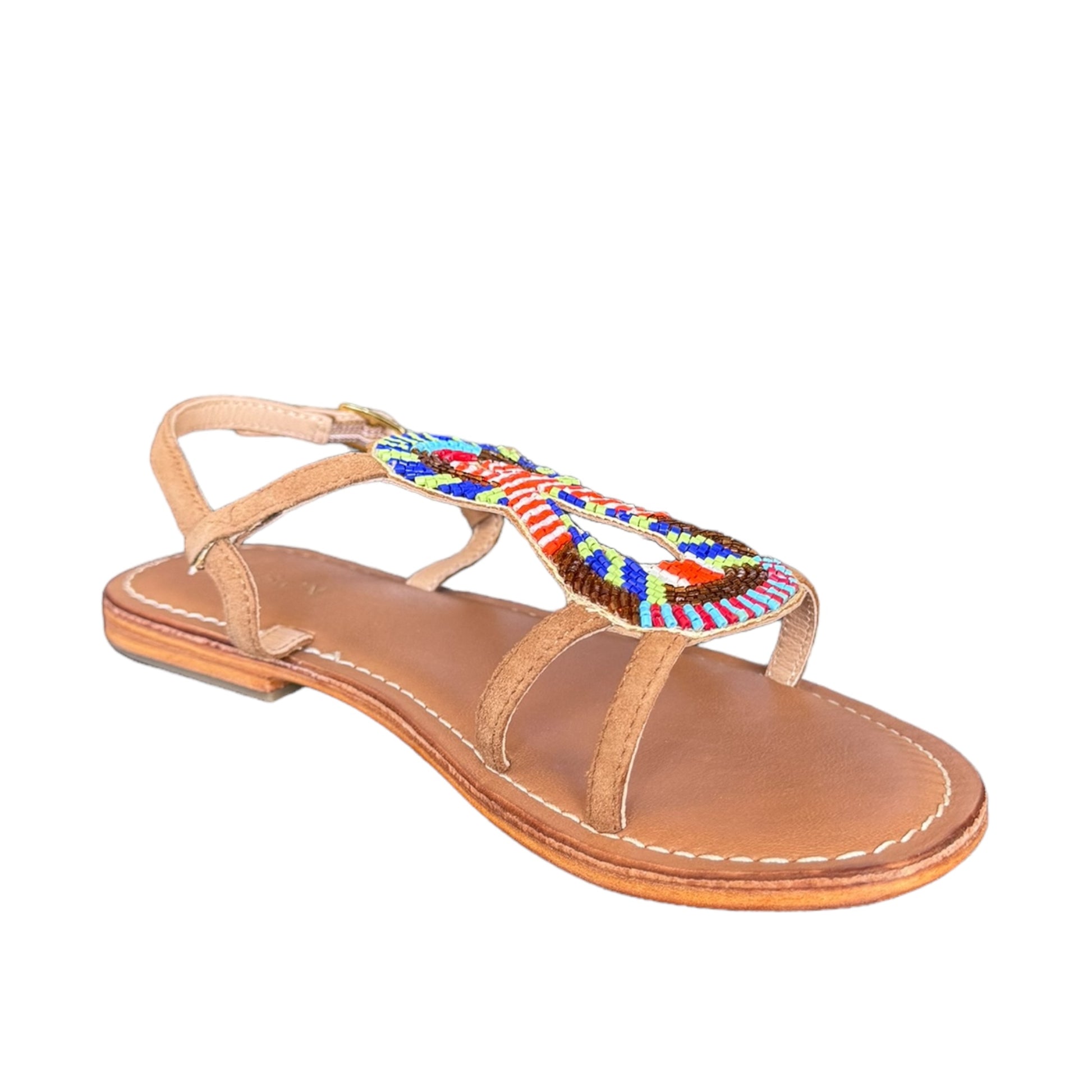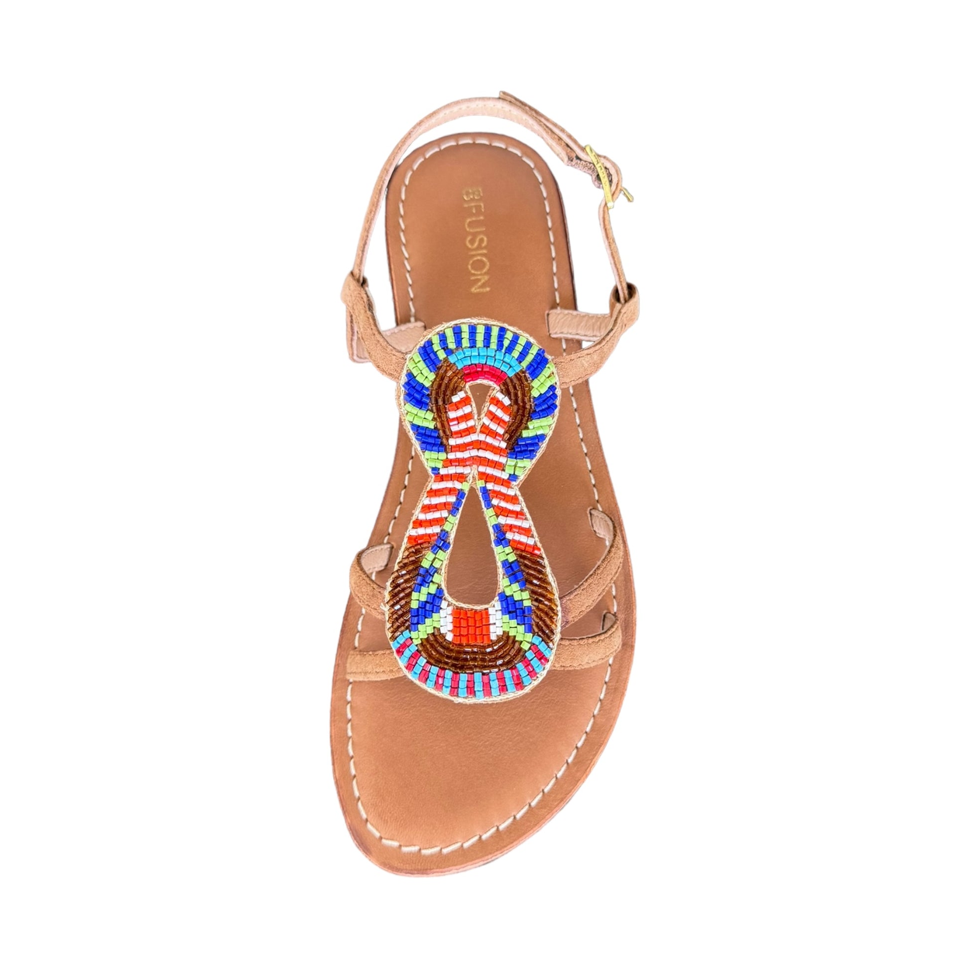 Sandalo basso con cinturini intrecciati e perline Multicolor