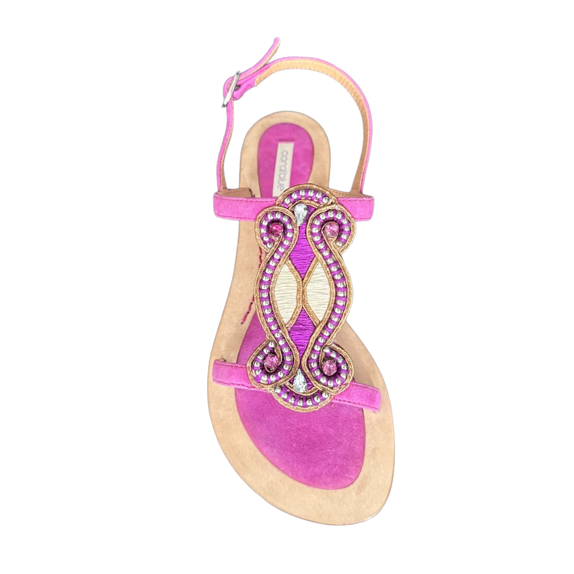 Sandalo fucsia in tessuto cinturino in tessuto decorazione sul davanti