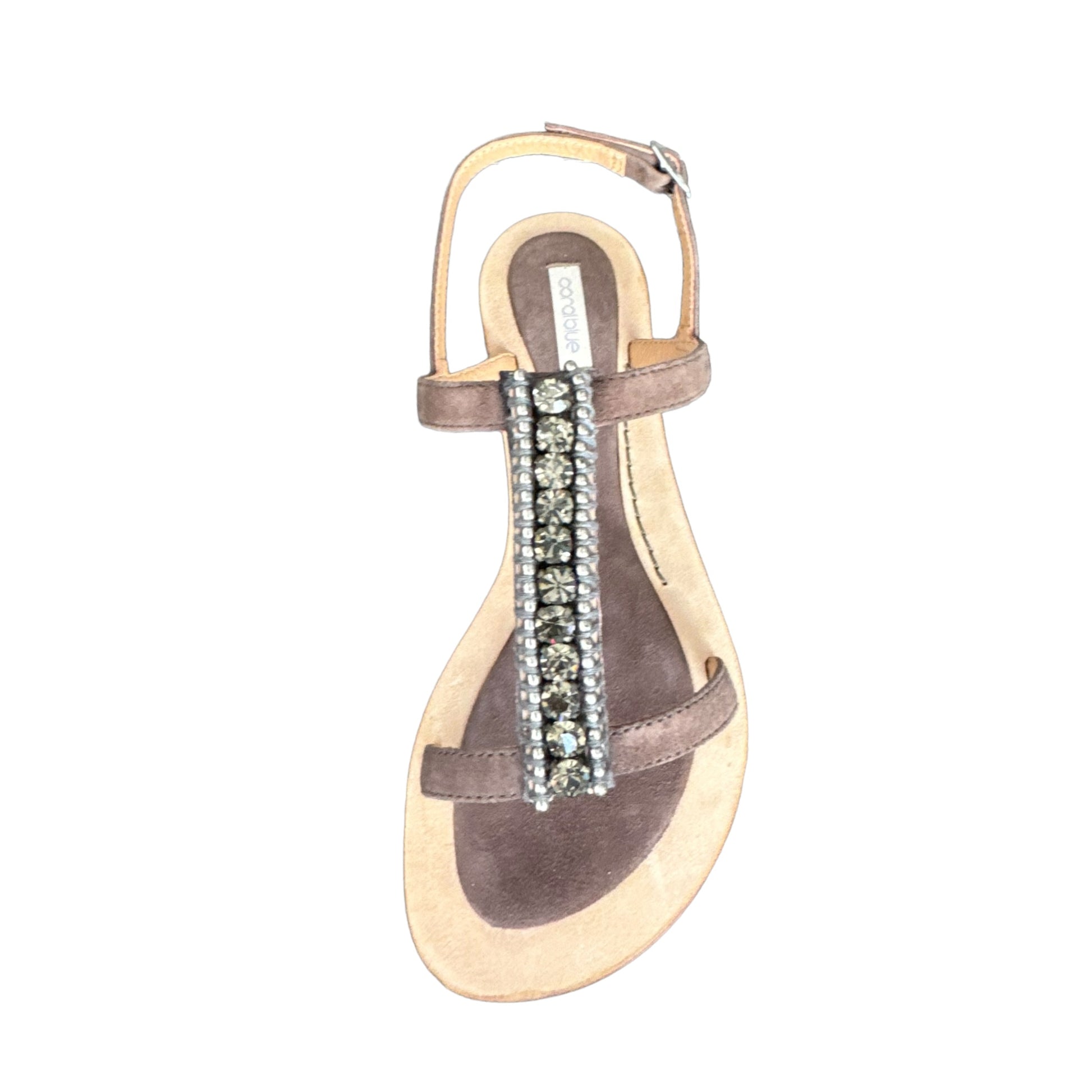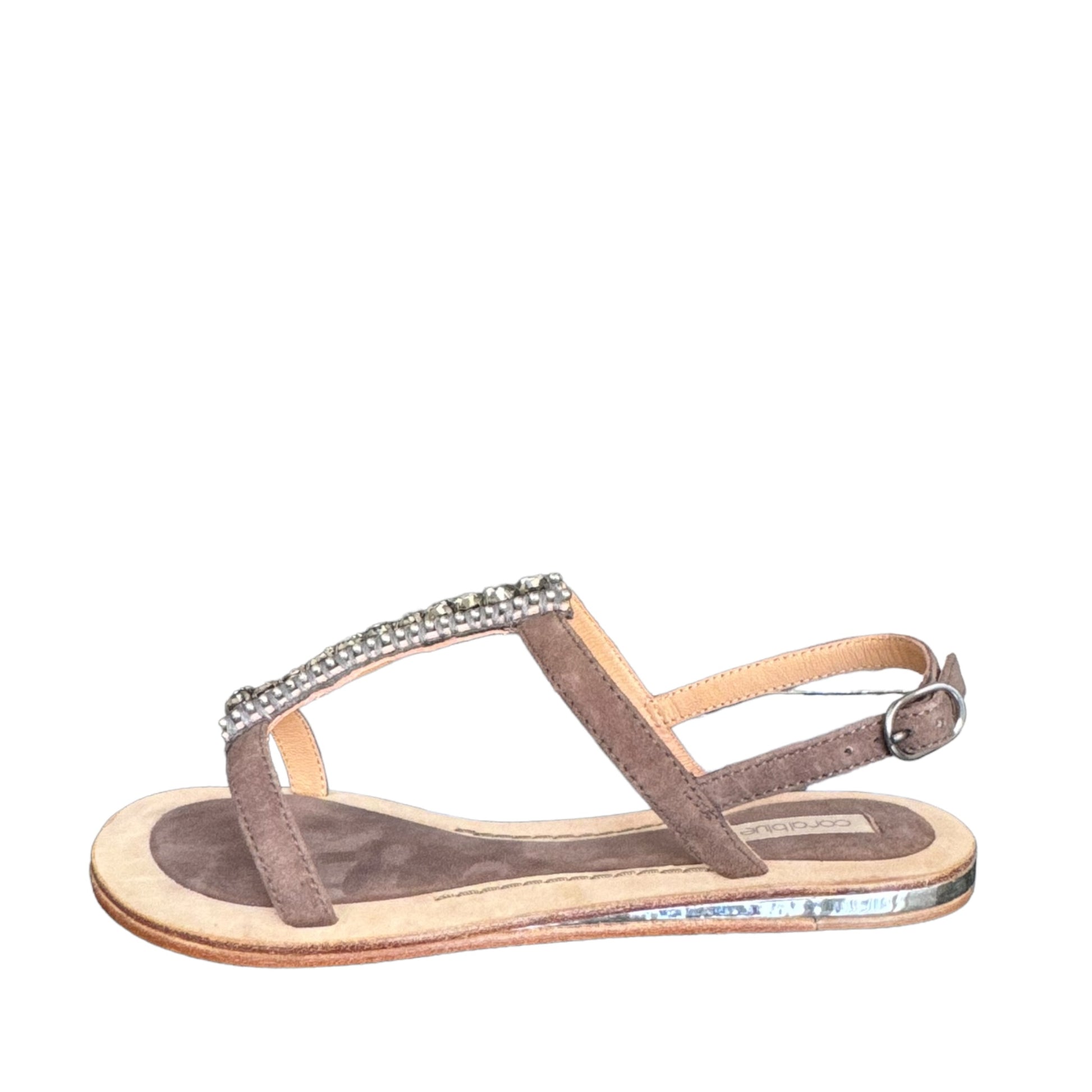 Sandalo fango in tessuto cinturino in tessuto decorazione sul davanti