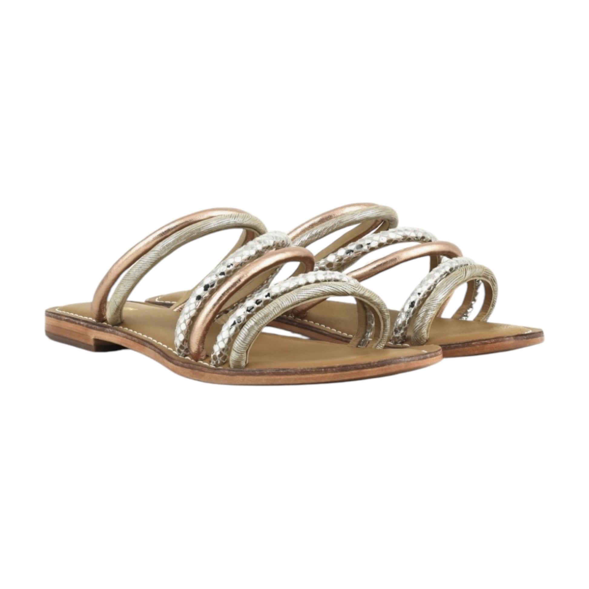 slipper fasce di pelle intrecciata e suola ultra flat di cuoio.