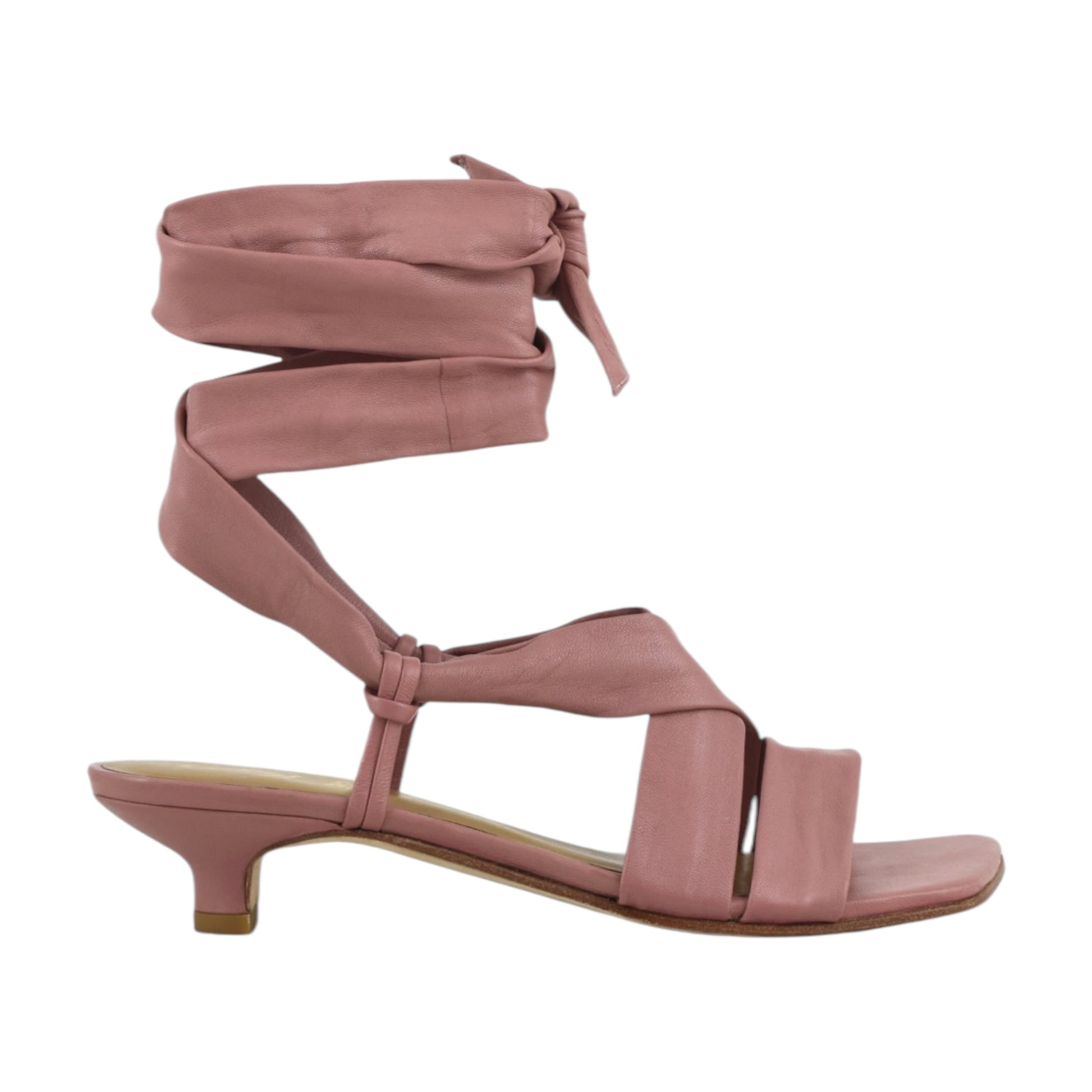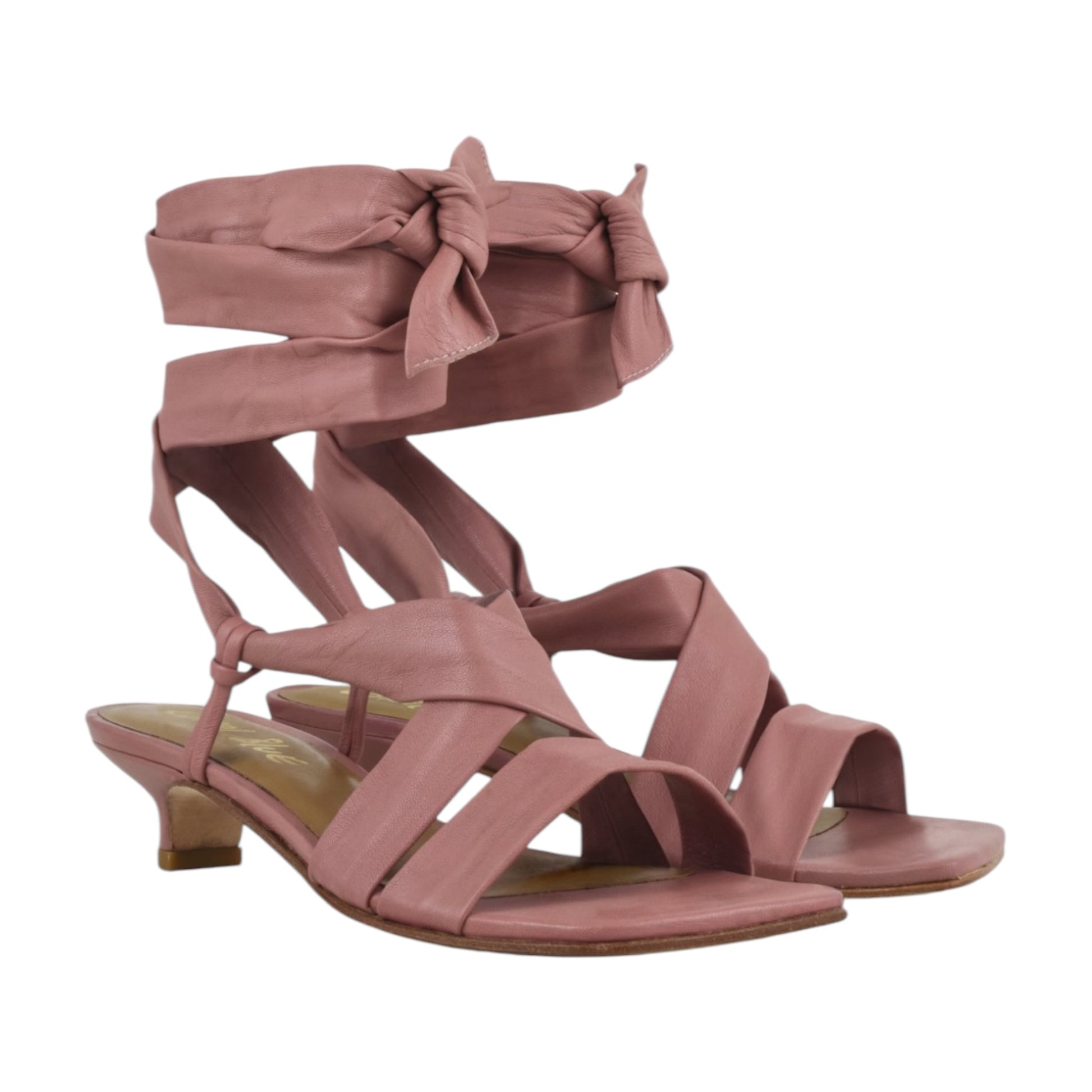 sandali di pelle con lunghi lacci da annodare alla caviglia e kitten heel sono estremamente eleganti e femminili.