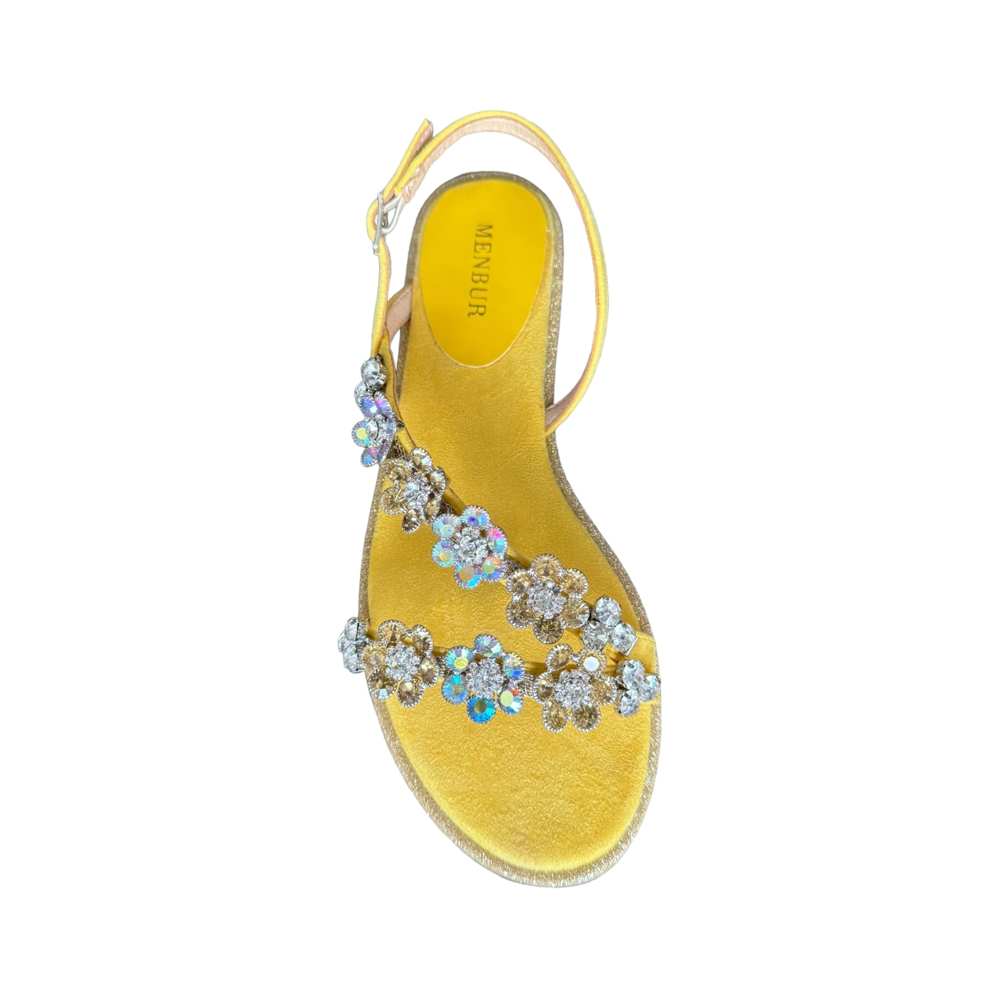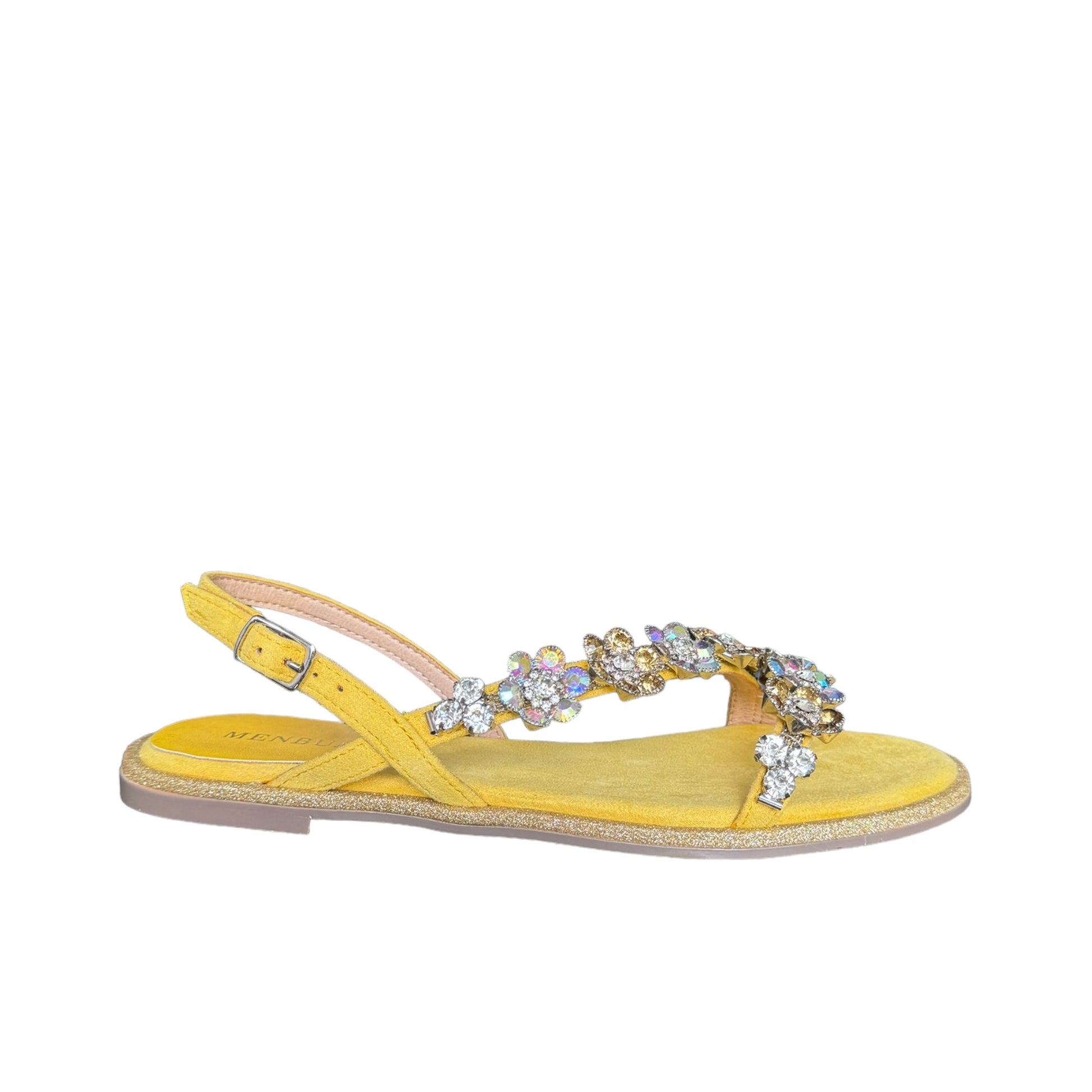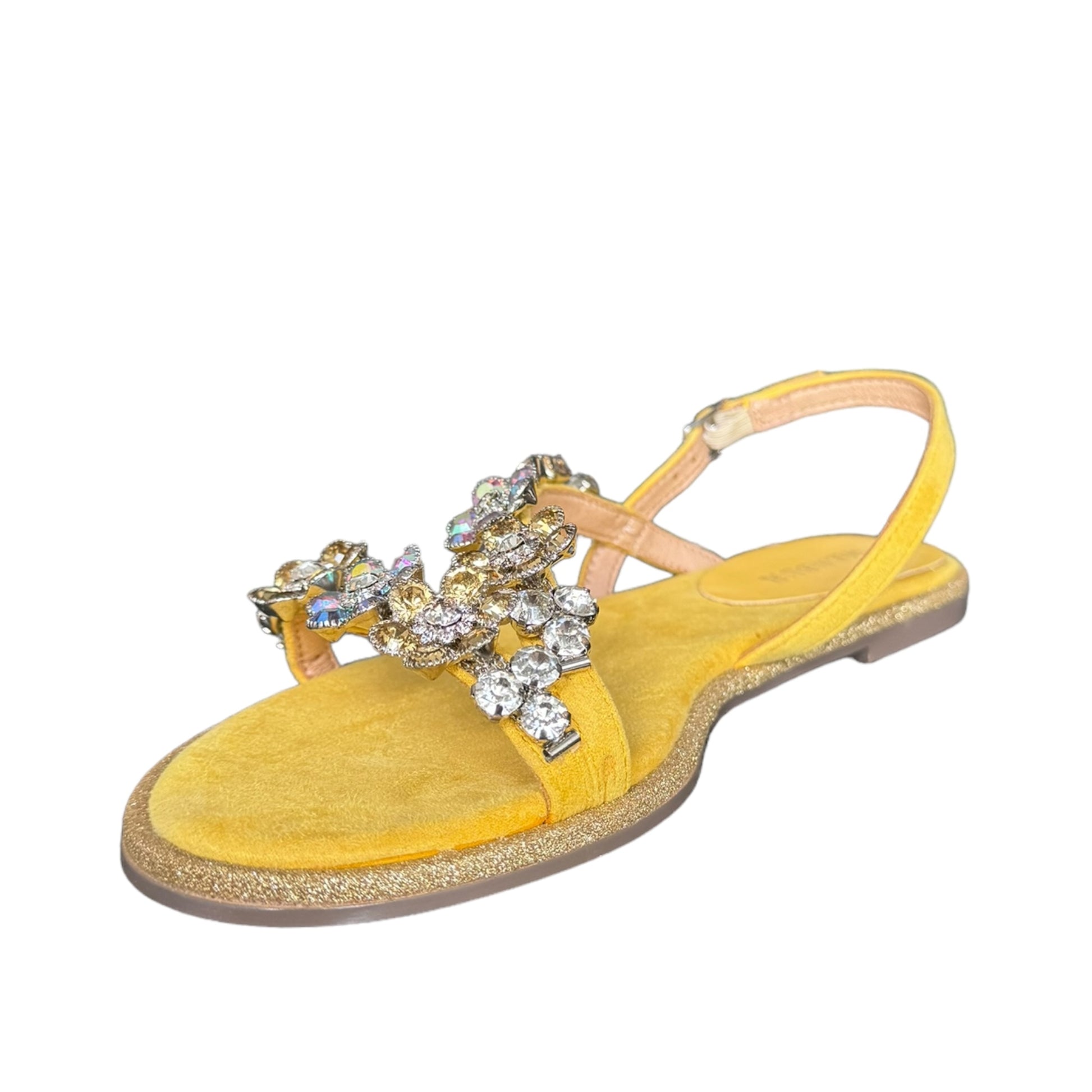 Sandalo basso giallo con fiorellini e brillantini sulle fasce
