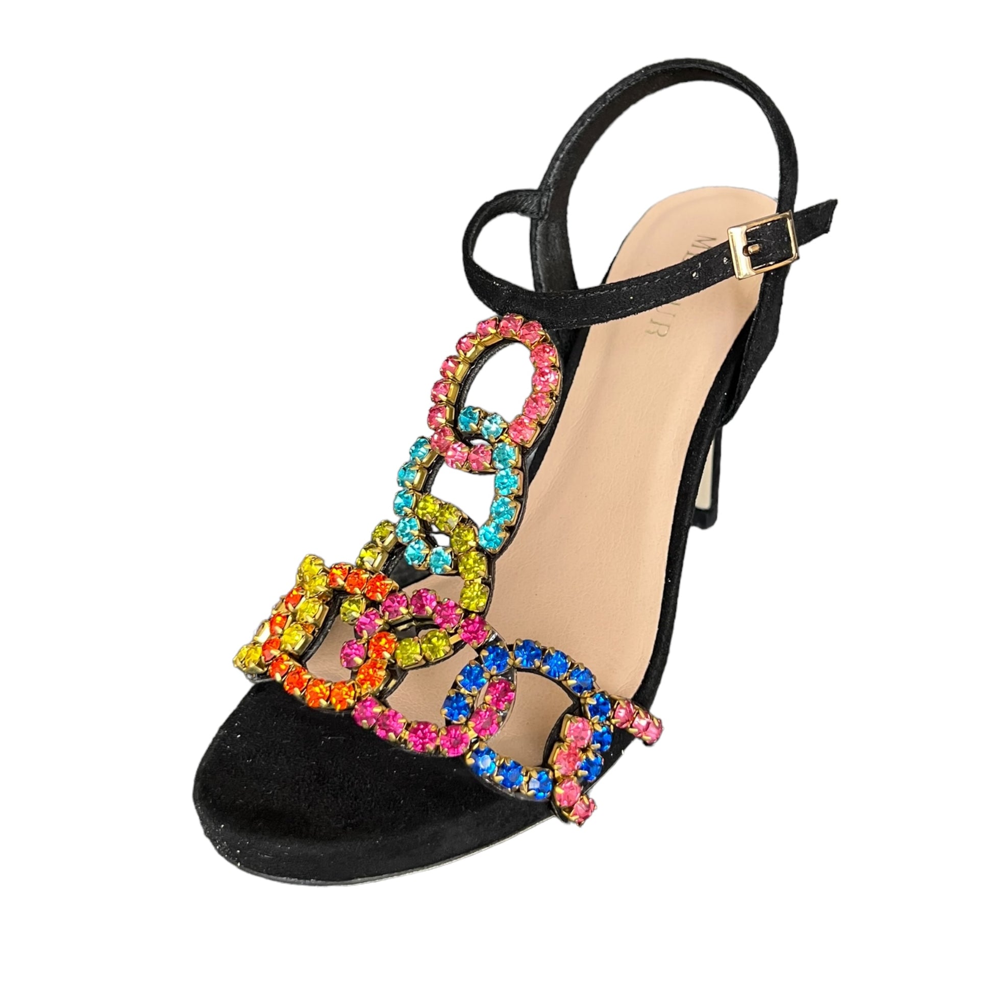 Sandalo in tessuto nero con gioiello sul davanti Multi color