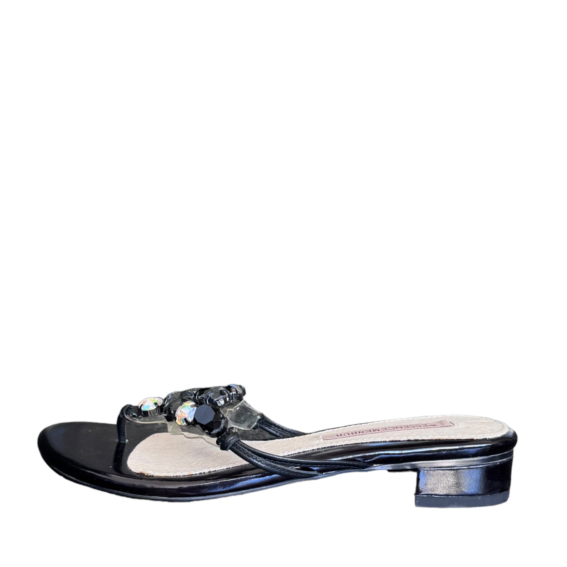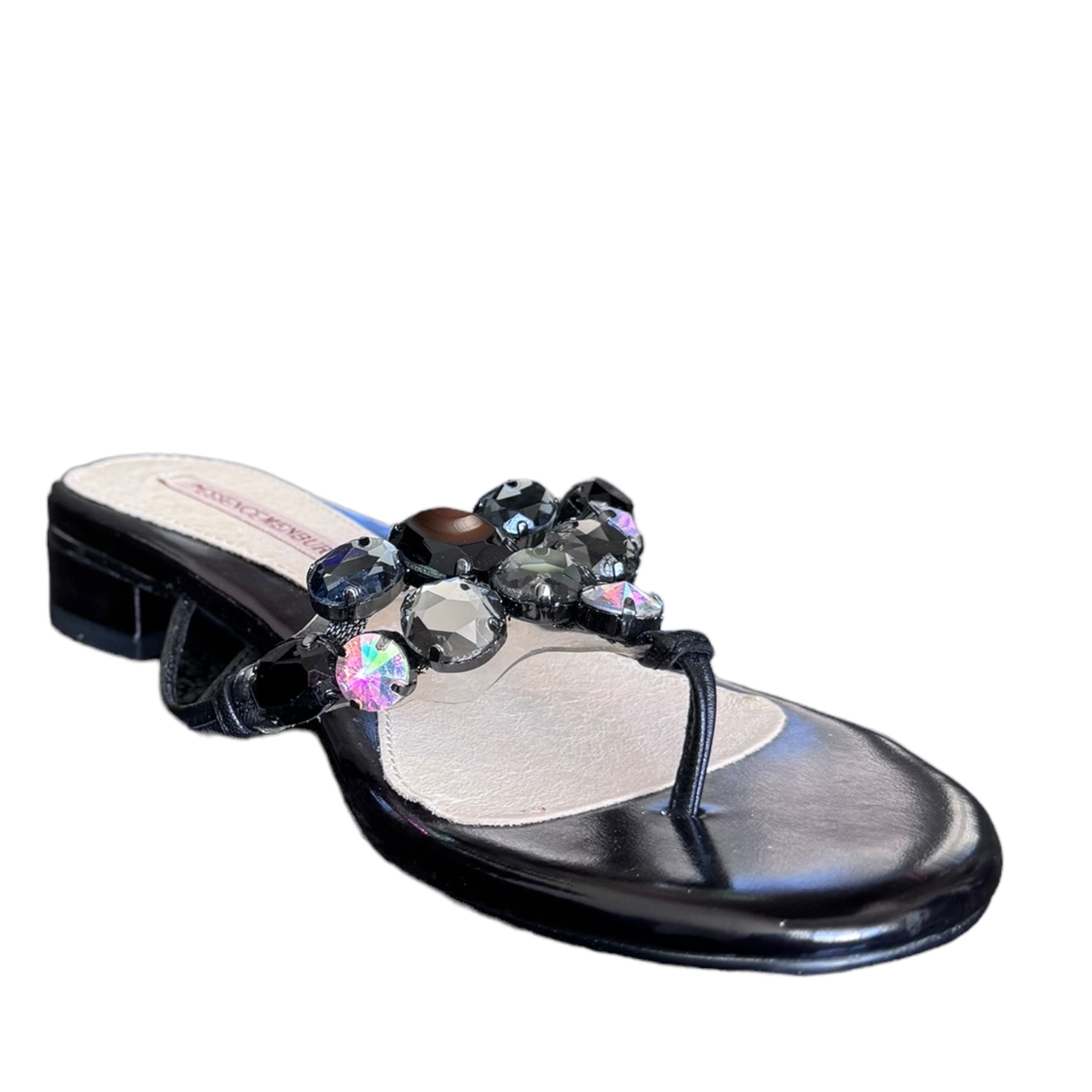 Sandalo basso infradito Nero in simil pelle lucida con strass