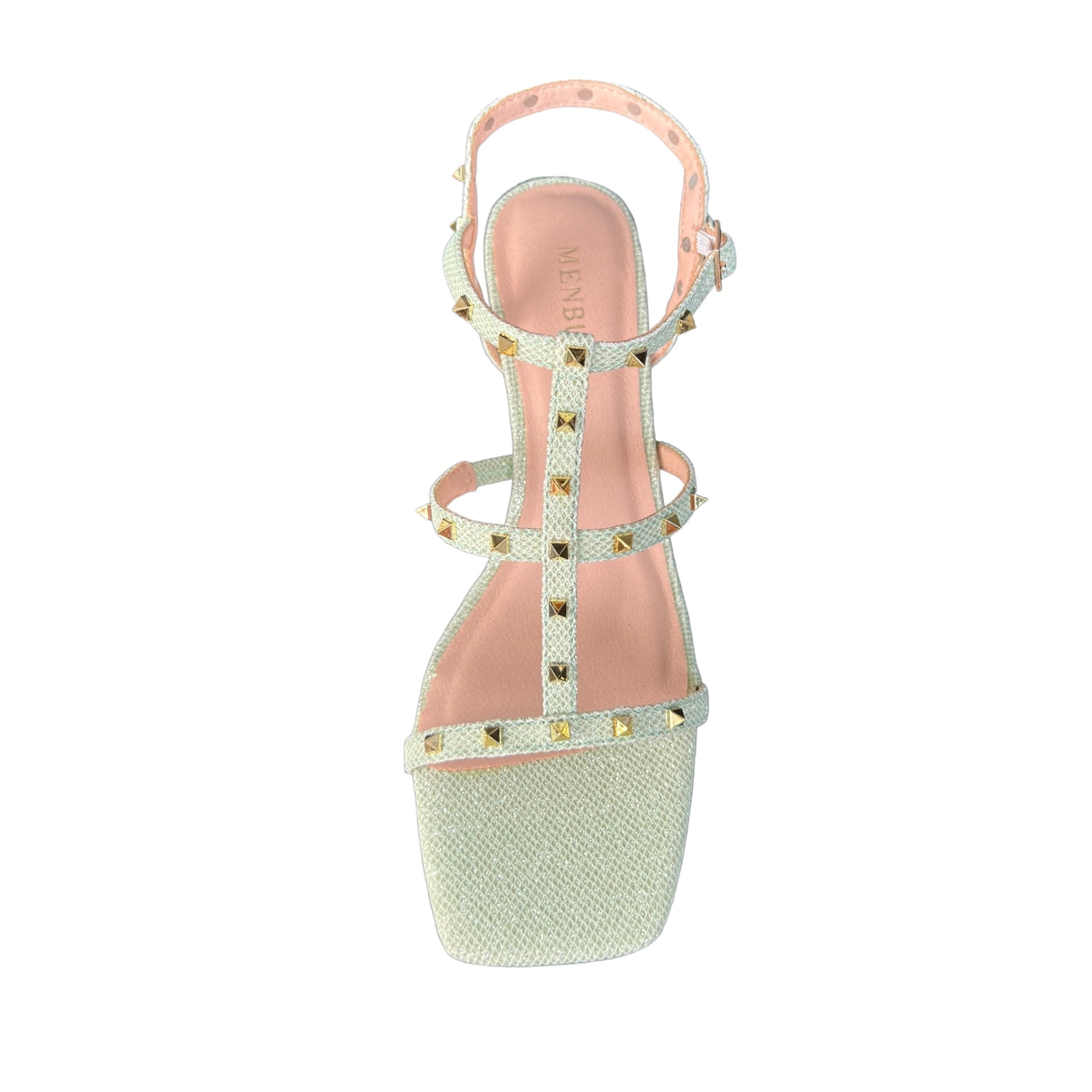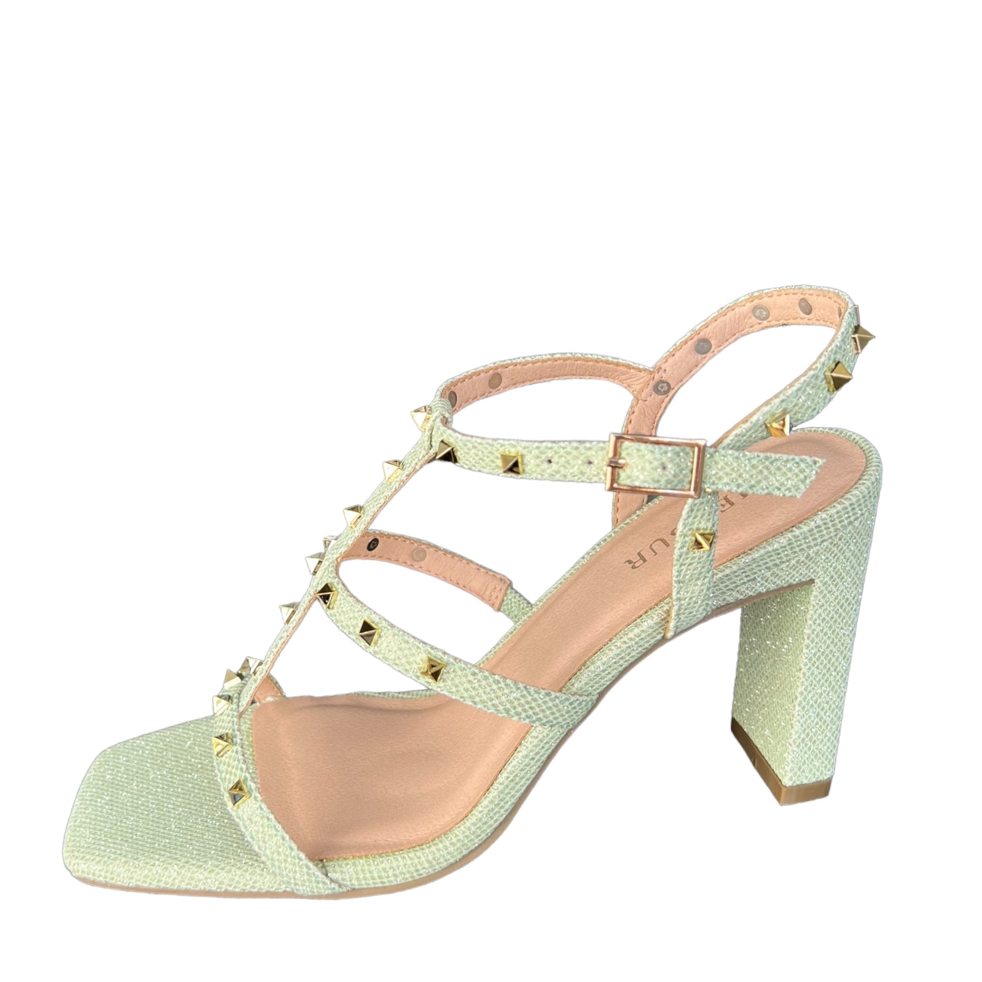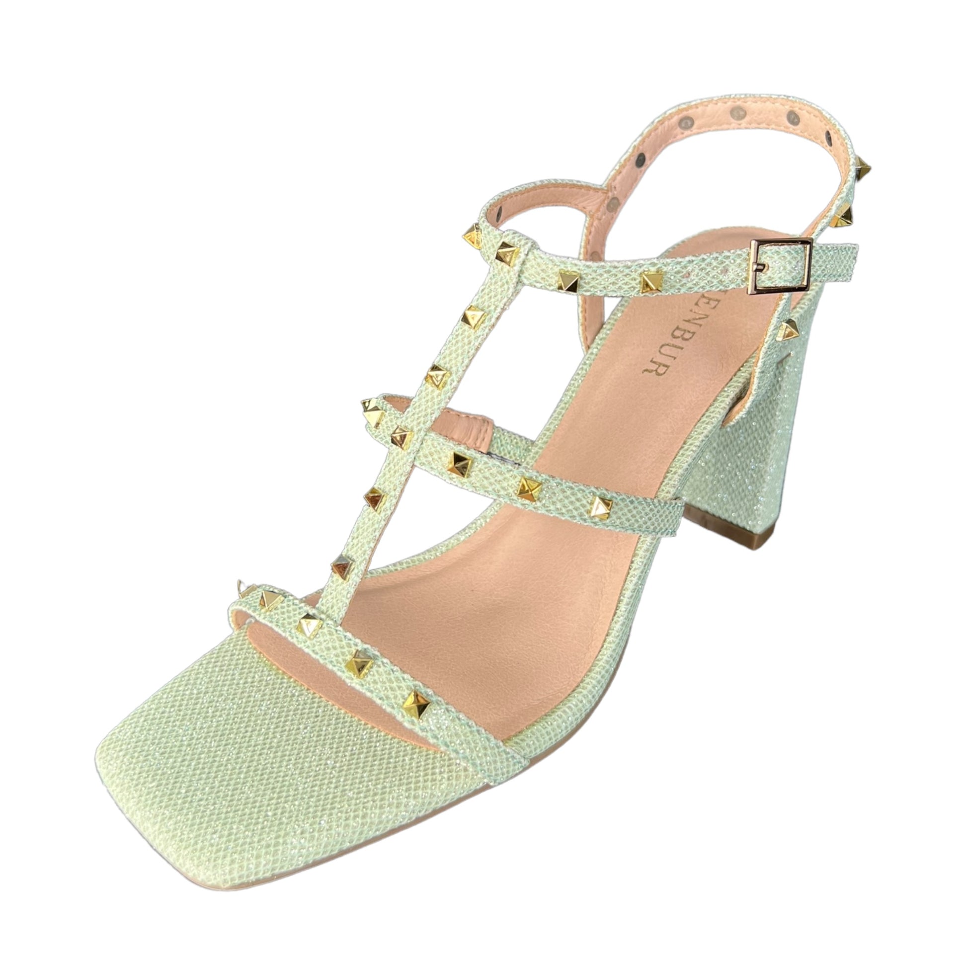 Sandalo modello Valentino simil pelle verde con borchie sul cinturino