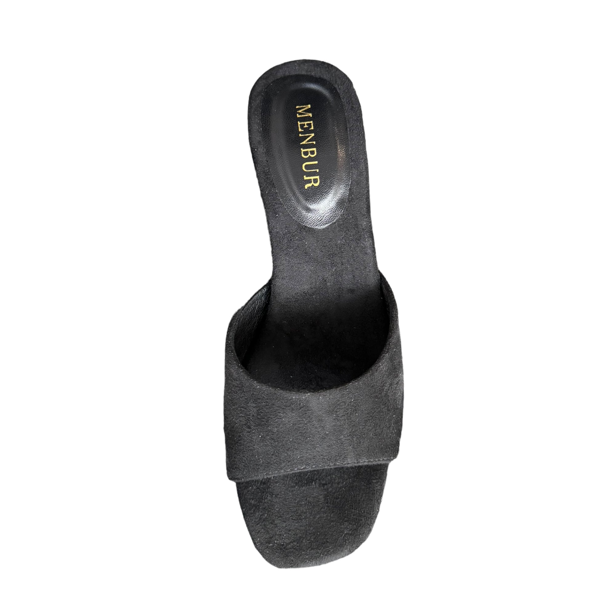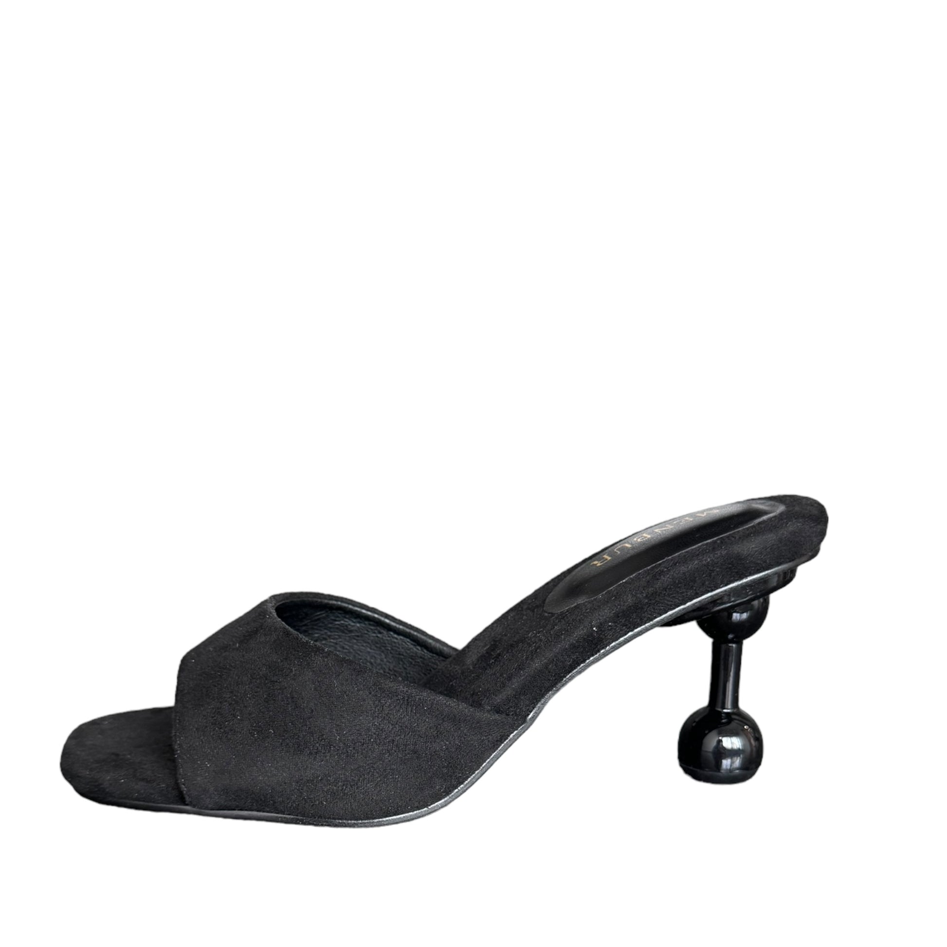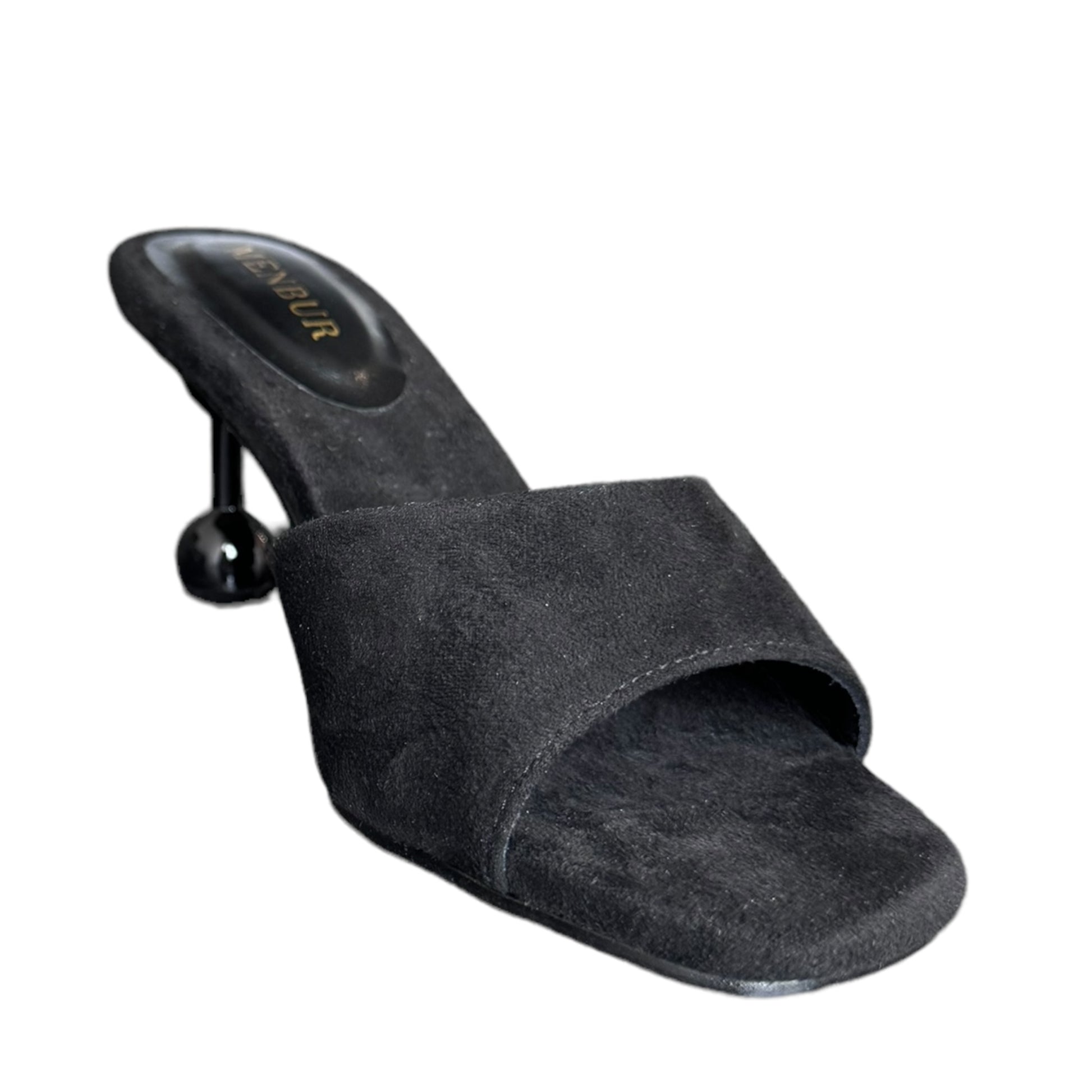 Sandalo nero in tessuto con fascia e tacco cerchio lucido