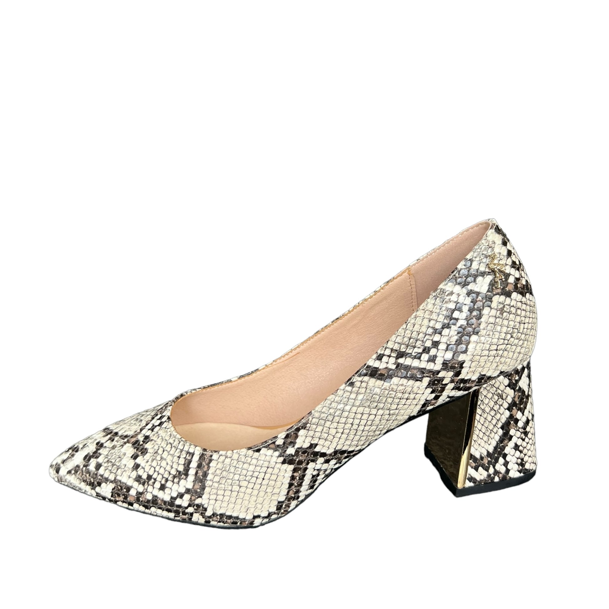 sandalo a punta con tacco quadrato in simil pelle pitonato