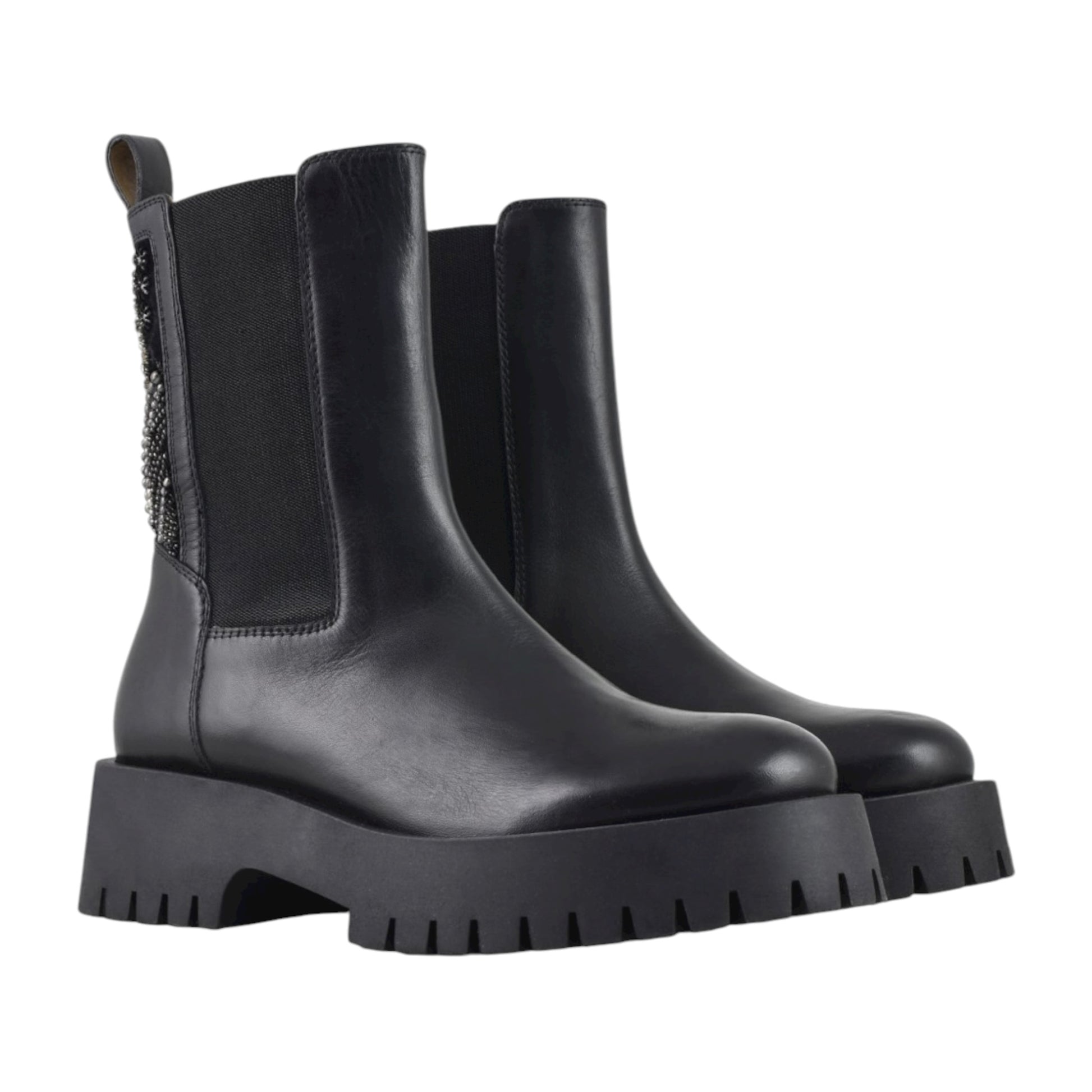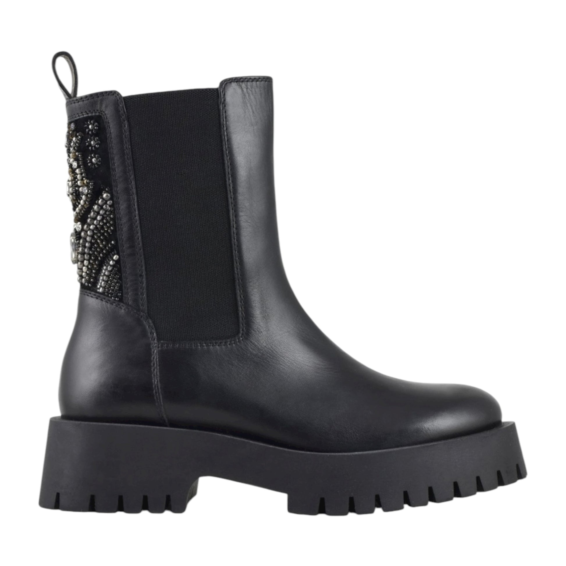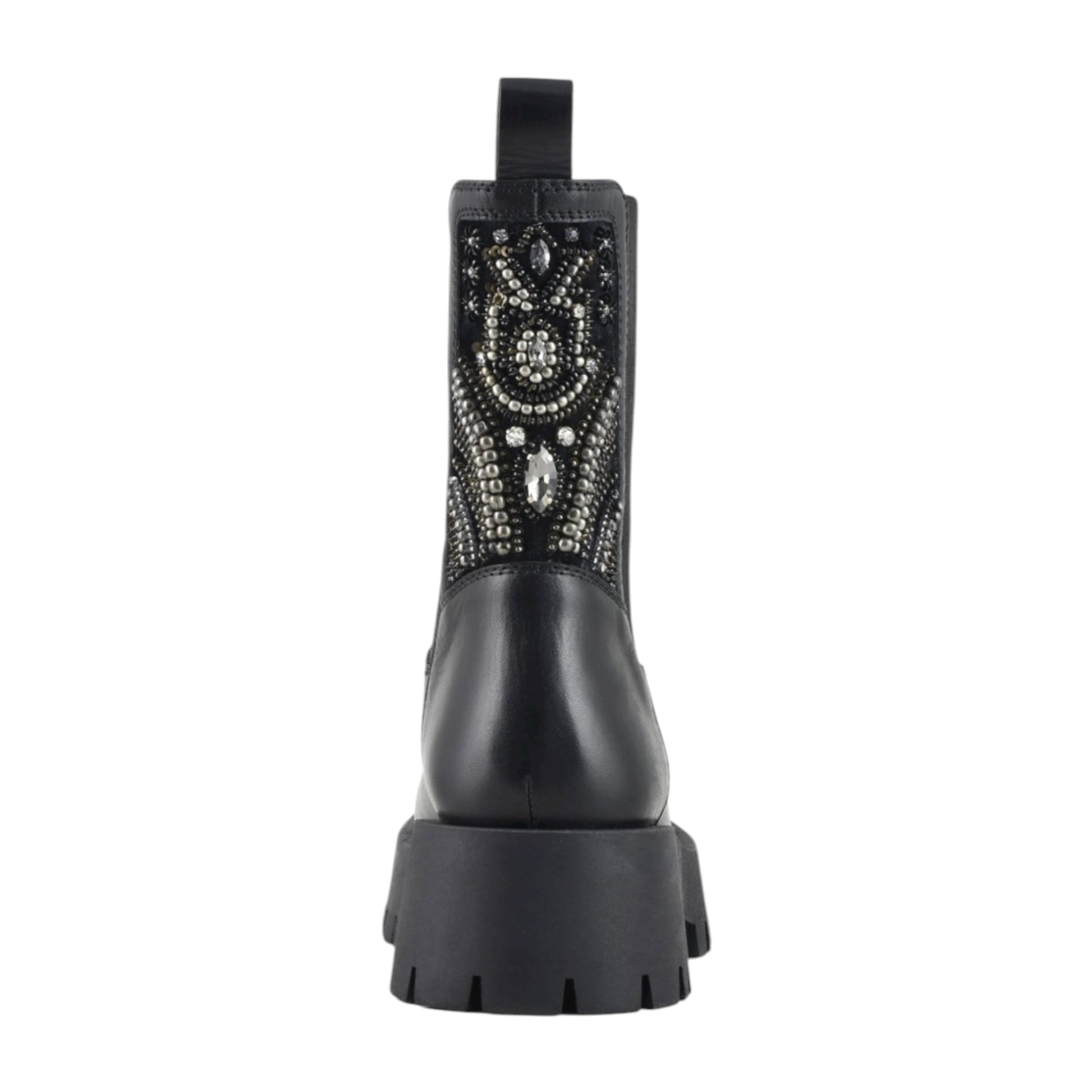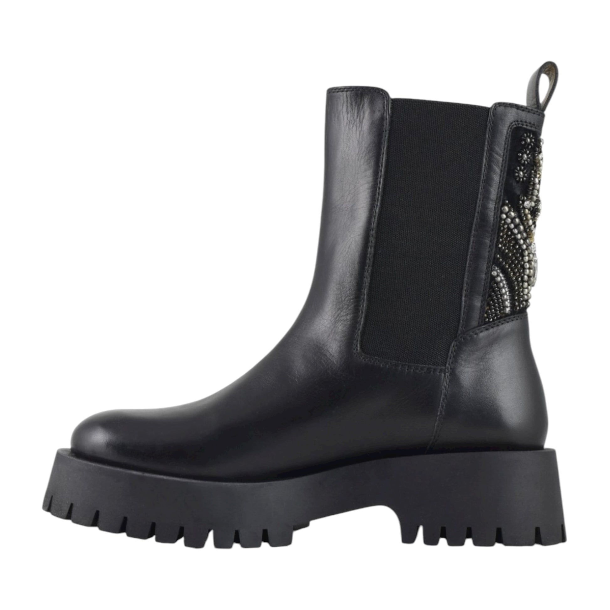 stivale con tomaia in pelle e ricamo romantico impreziosito di perline
