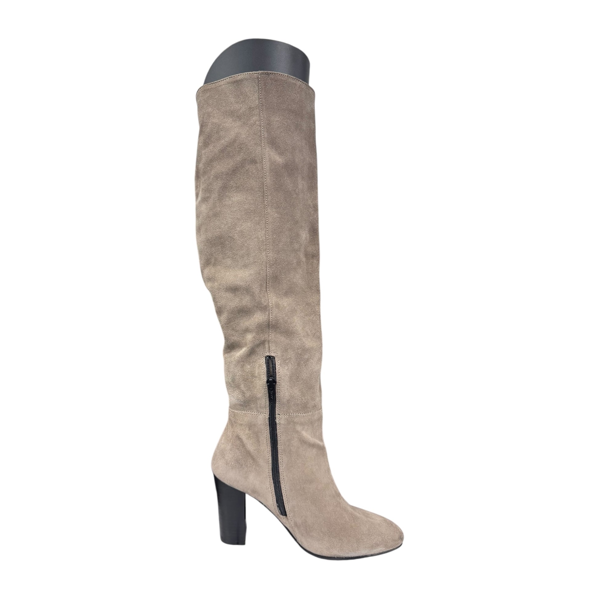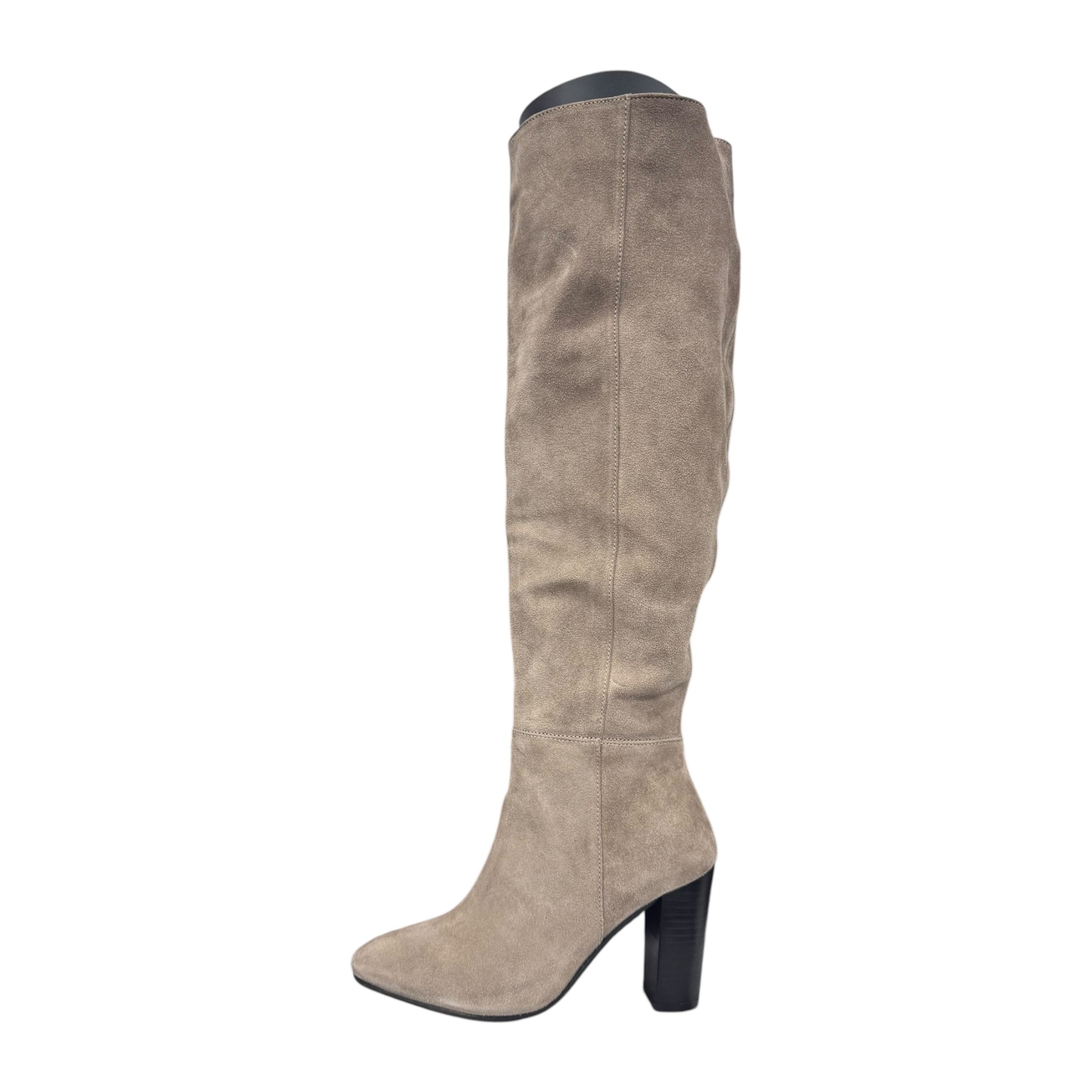 stivale alto beige in tessuto con tacco doppio