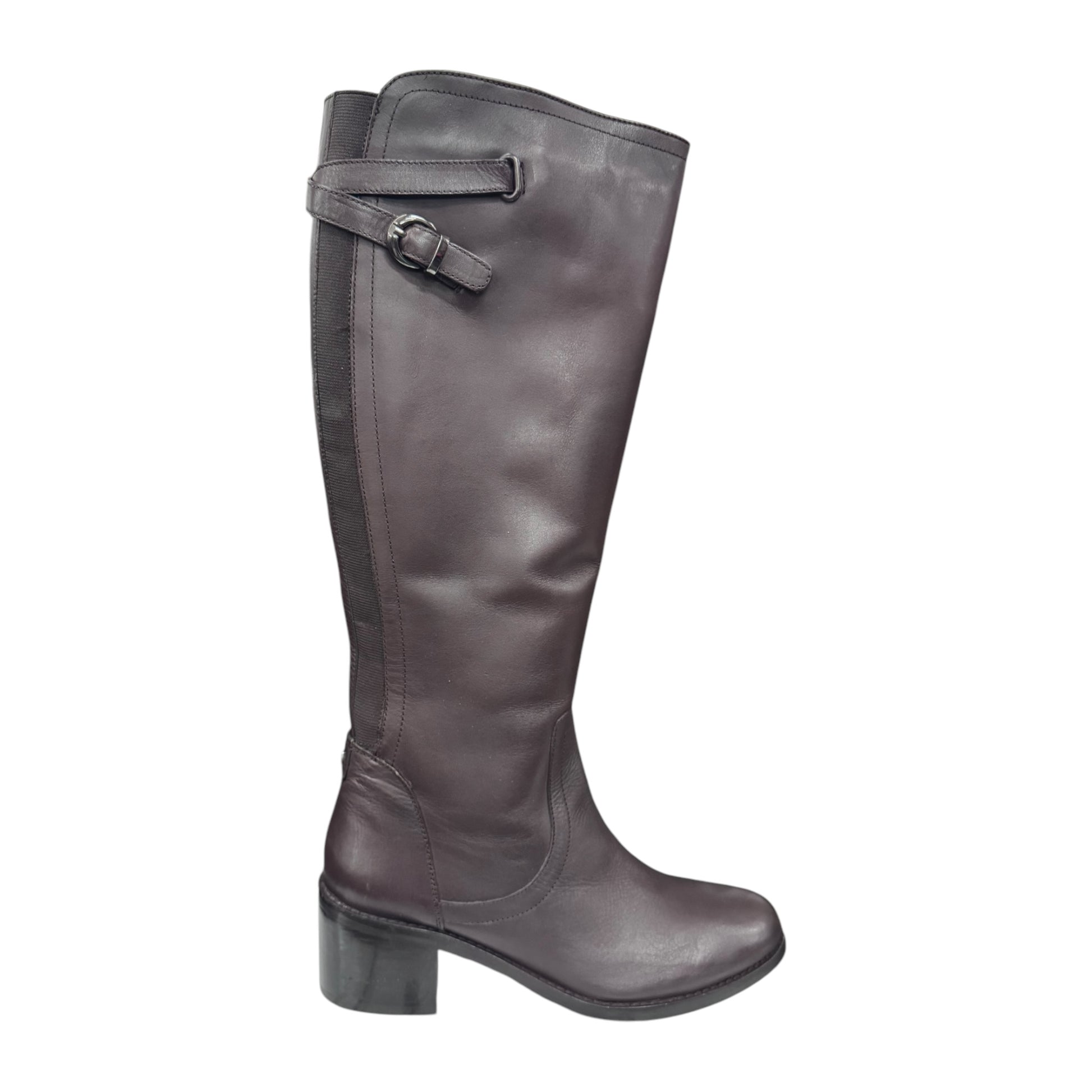 stivale alto bordeaux in pelle co tacco basso doppio