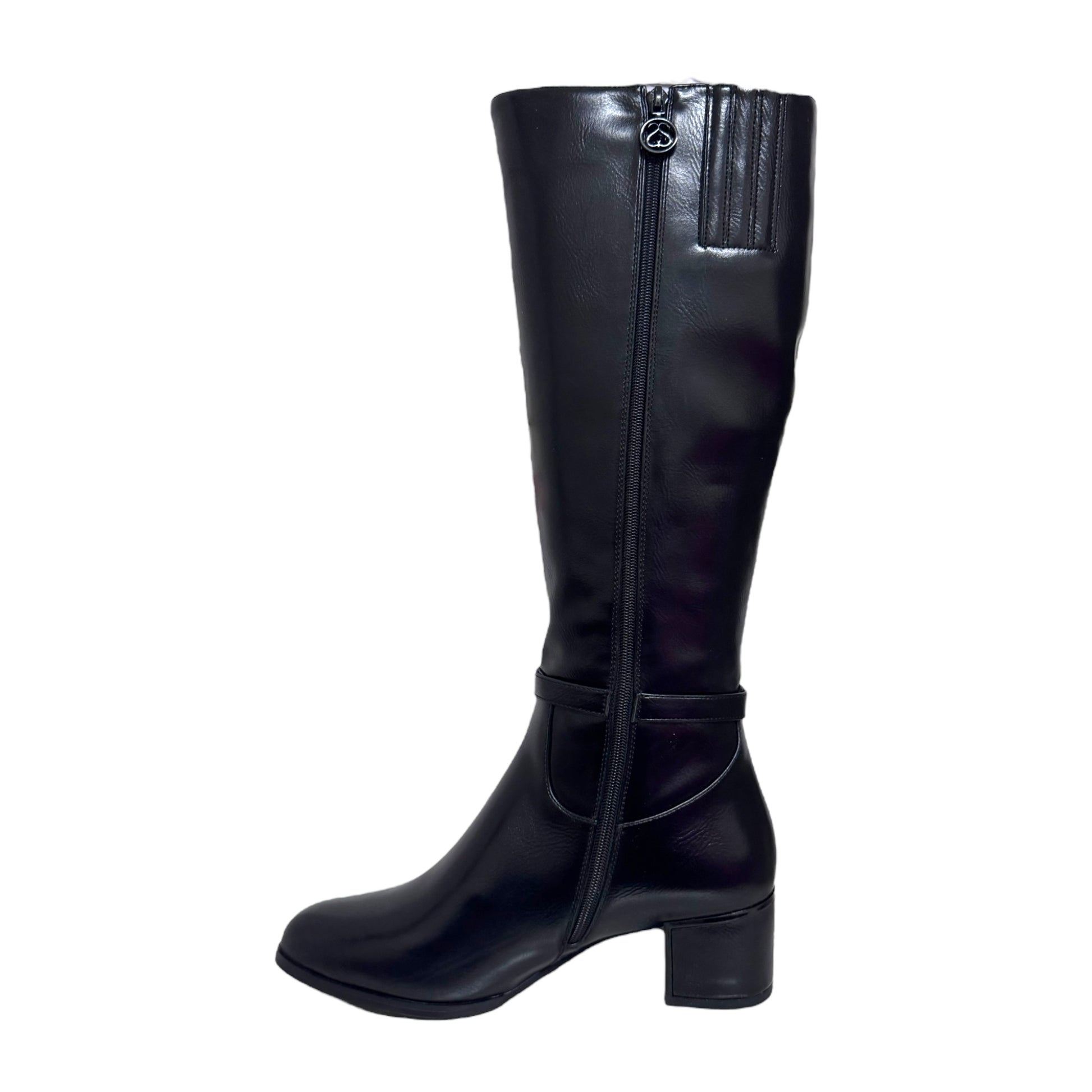 stivale alto in pelle nero con tacco doppio