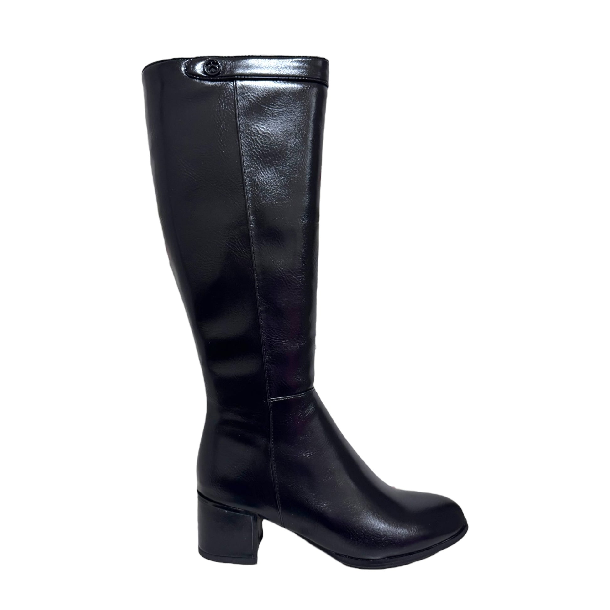 stivale alto in pelle nero con tacco doppio
