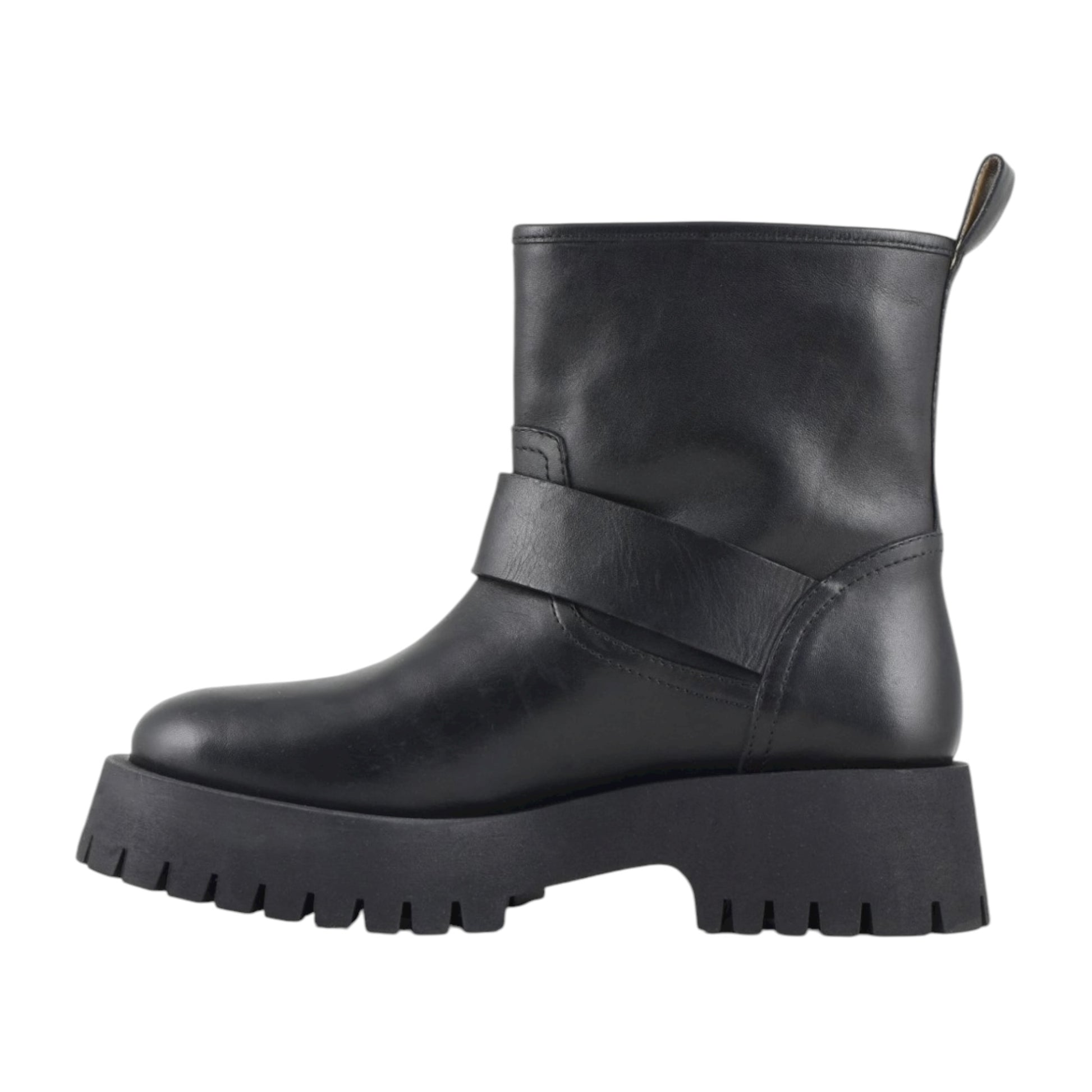 pelle, applicazioni a contrasto, tinta unita, interno in pelle e punta tonda.