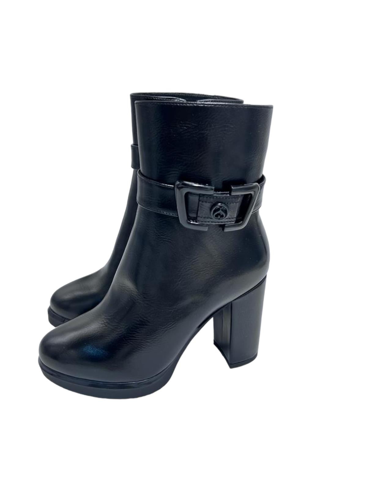 stivaletto in pelle nero lucido con tacco doppio 9 CM E PLATEAU