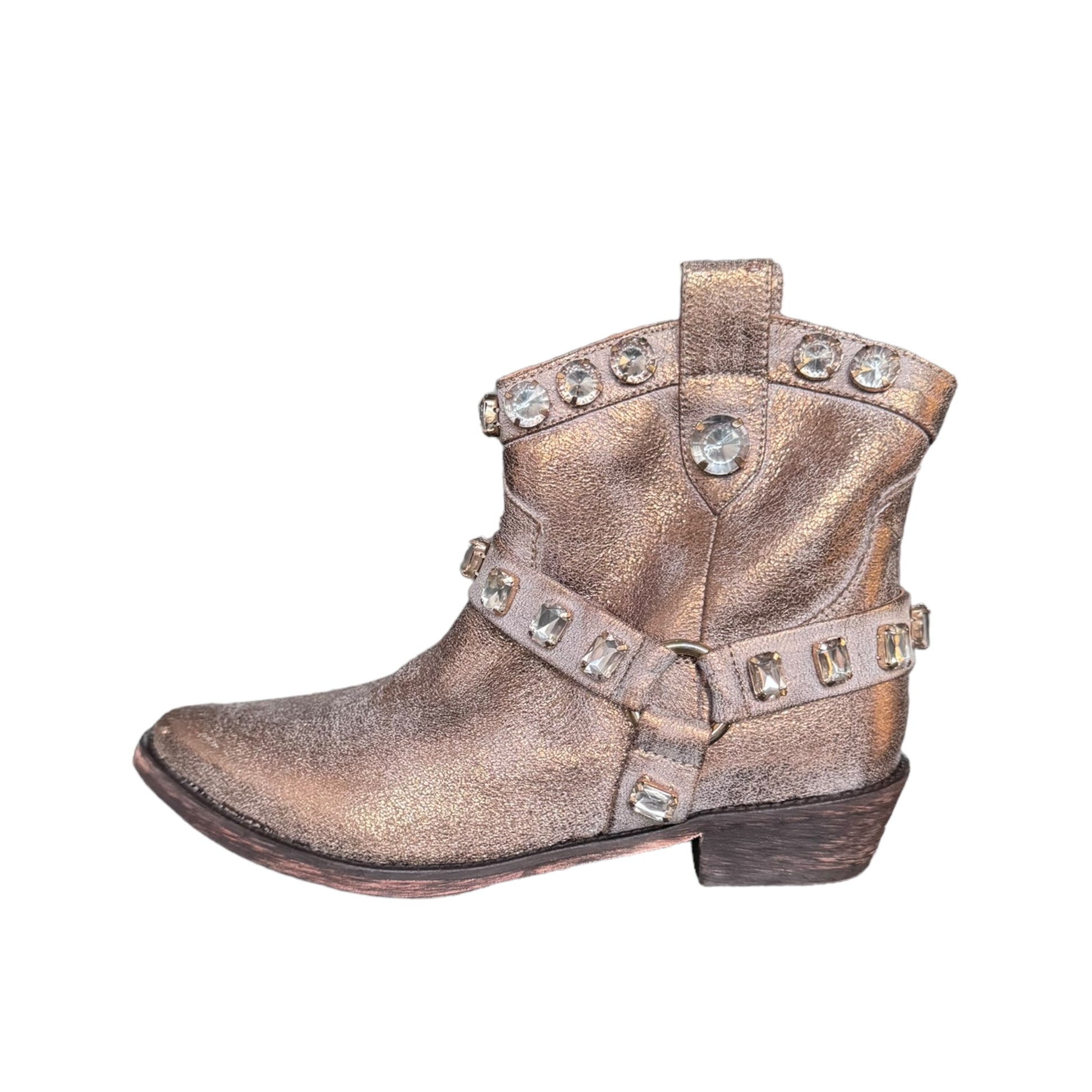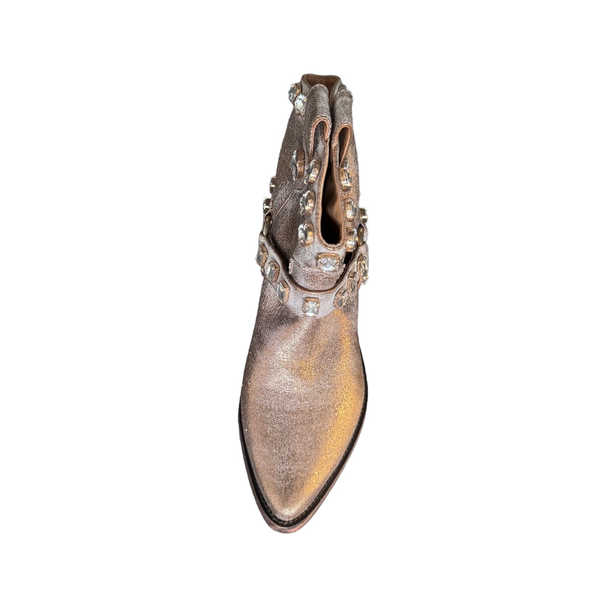 Texano basso bronzo brillantinato con strass in vera pelle e vero cuoio